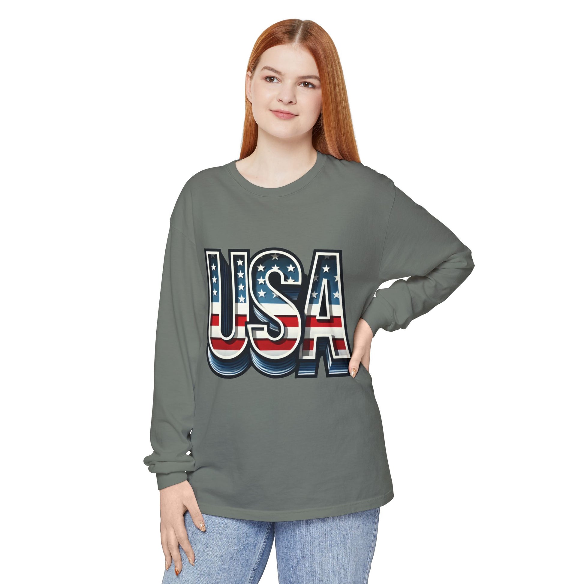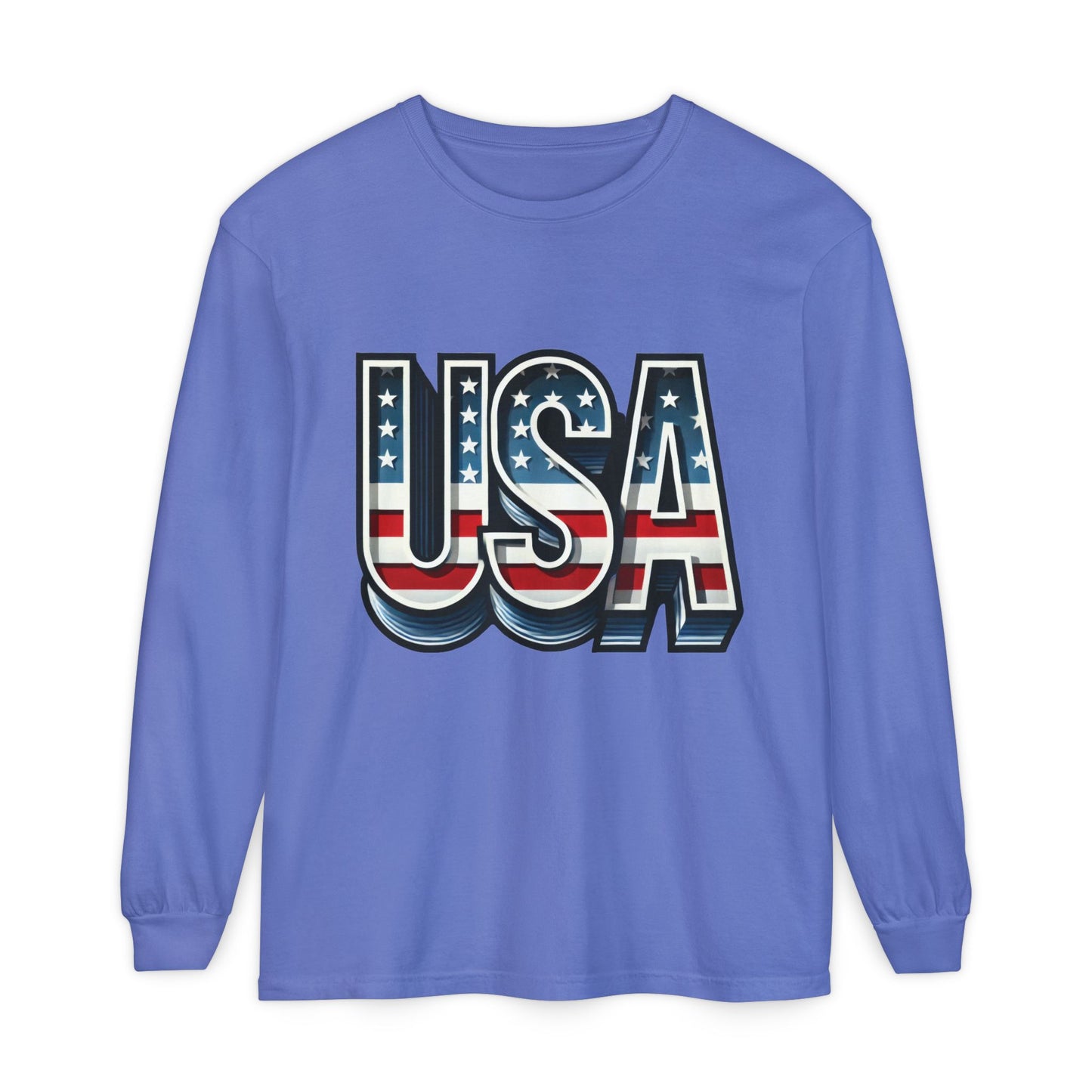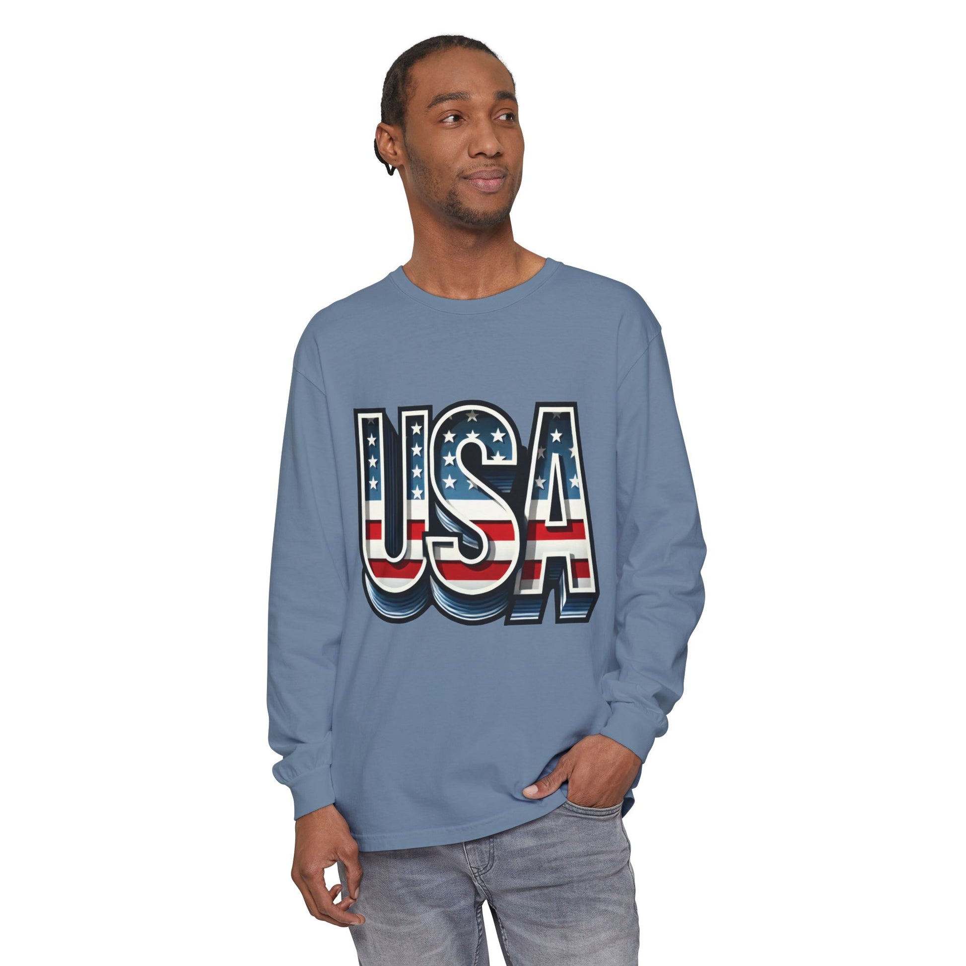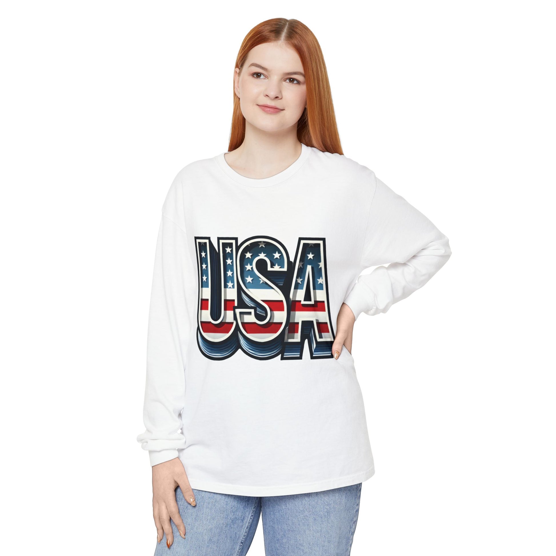 Patriotic Long Sleeve Unisex T-Shirt, USA Design, Unisex Tee for Independence Day, Memorial Day, Family Celebrations, Casual Wear