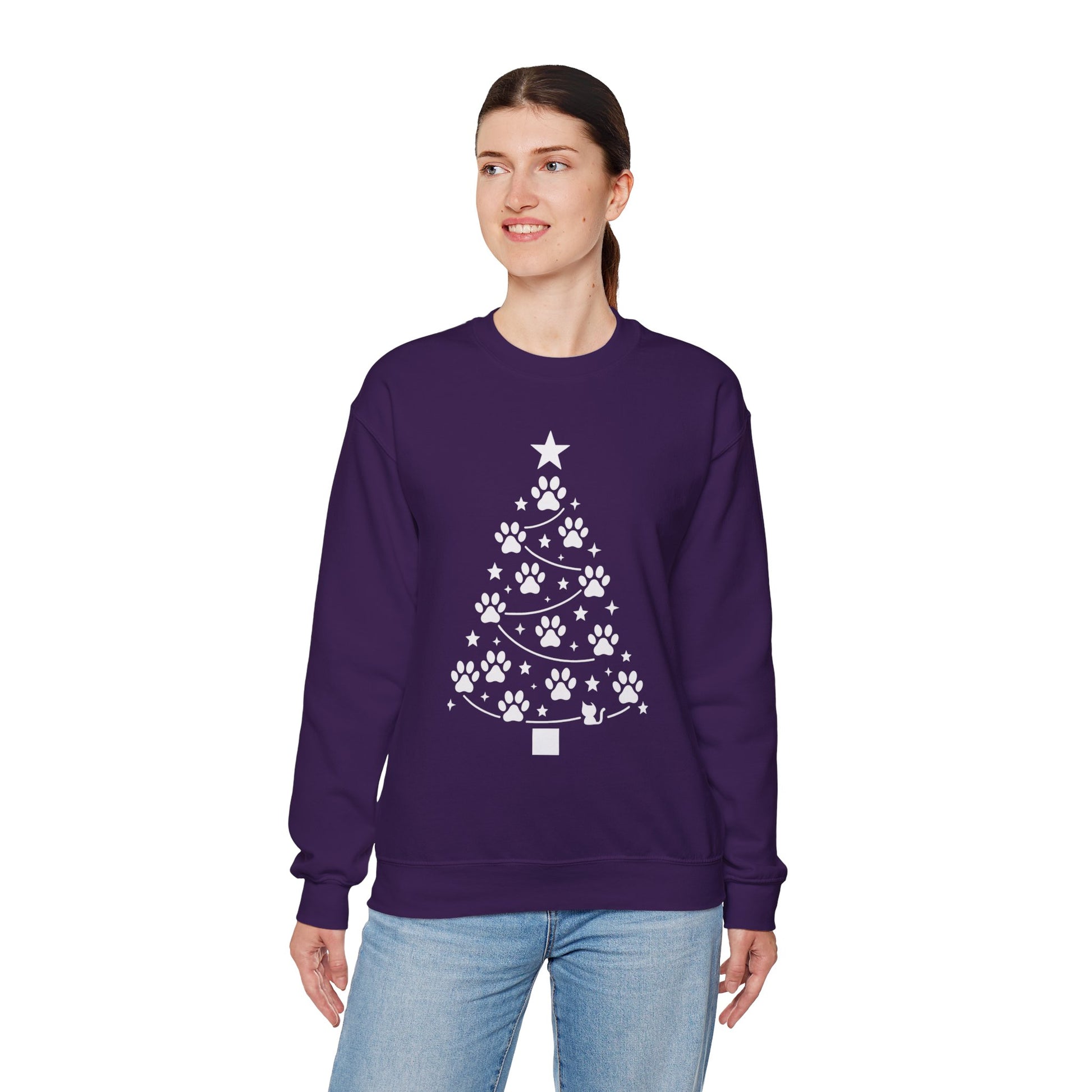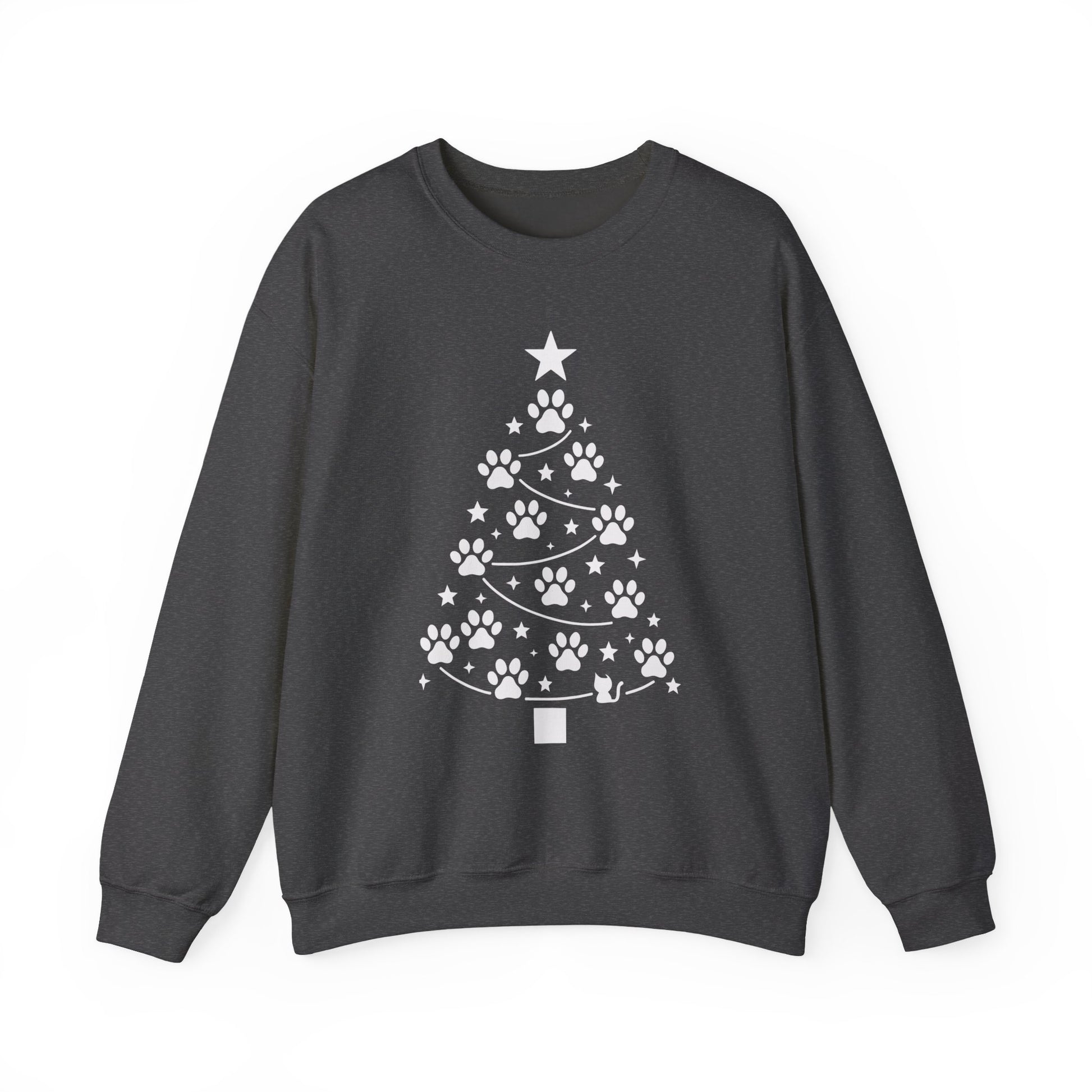Soft, cozy, and festive — this women’s Christmas sweatshirt with a paw-shaped Christmas tree is perfect for pet moms, cat lovers, and dog owners. Ideal for winter mornings, cozy nights, and thoughtful gifts. The Gildan 18000 sweatshirt is a unisex heavy blend crewneck made from a 50/50 cotton-polyester fabric, combining softness with lasting durability. Its smooth surface supports crisp, vibrant prints and embroidery, while the ribbed-knit collar and reinforced cuffs help it keep its shape over time. A seamless body design reduces irritation and adds to overall comfort. Practical, sturdy, and print-friendly, the Gildan 18000 sweatshirt remains a top choice for custom apparel. Disclaimers:- Due to the fabric properties, the White color variant may appear off-white rather than bright white. - Subtle orange hue shifts with lighting in the Orange color variant. .: The Gildan 18000 sweatshirt is built for comfort and durability, made from a medium-heavy (8.0 oz/yd² (271 g/m²)) 50/50 cotton-polyester blend. .: The classic fit along with the crew neckline deliver a comfy wearing experience with a clean-cut style. Meanwhile, the double-needle stitching at the shoulder, armhole, neck, waistband, and cuff seams add top-tier durability. .: Say goodbye to itchiness thanks to the gray, pearlized tear-away label. .: The Gildan 18000 sweatshirt is crafted from ethically grown US cotton and backed by the US Cotton Trust Protocol, with OEKO-TEX certified dyes that meet safety and environmental standards. .: Fabric blends: Heather Sport colors - 60% polyester, 40% cotton .: Embroidery decoration method available on either left chest, center chest, or large center chest, as well as right + left wrists
