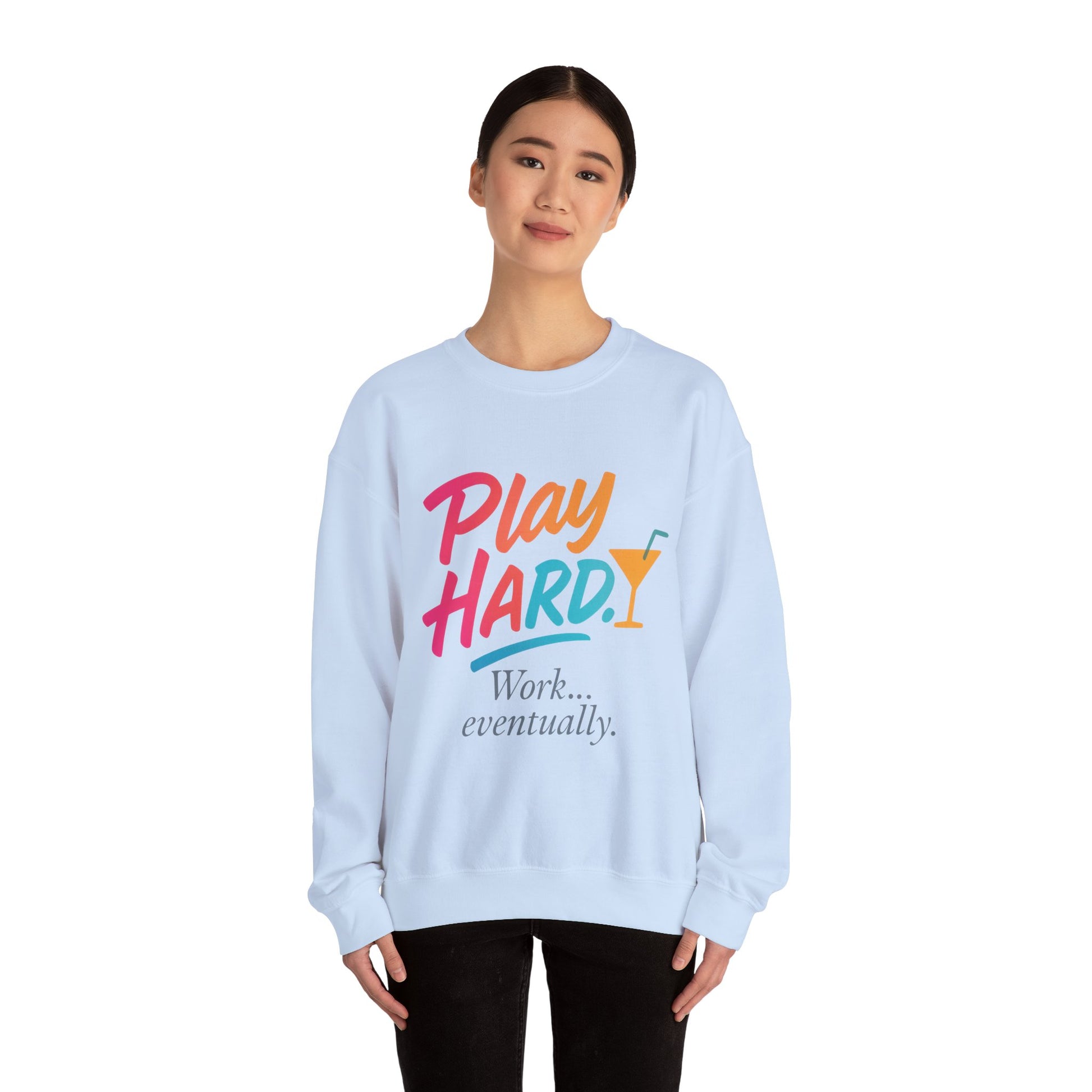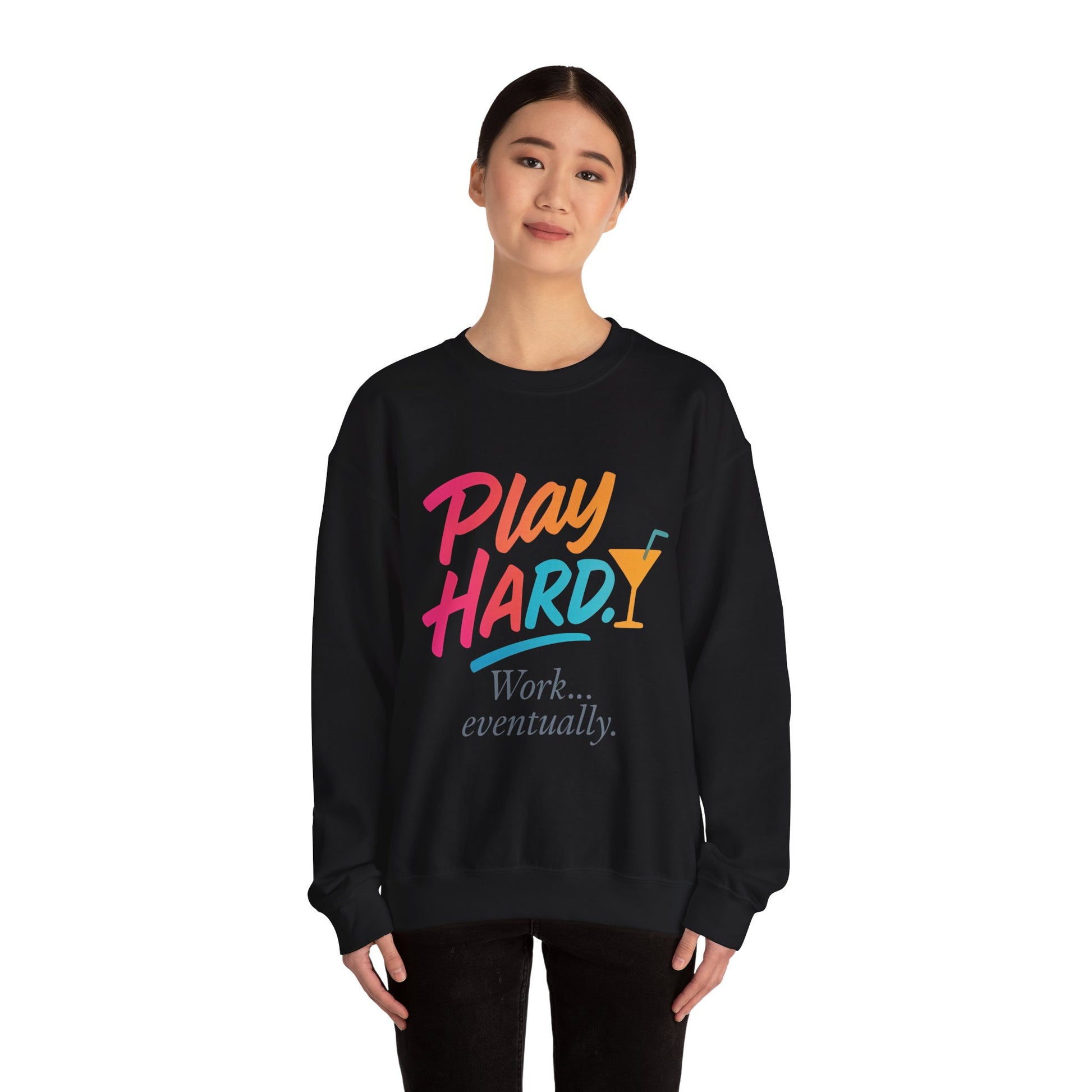 Play Hard Work Eventually Sweatshirt, Funny Cocktail Graphic Tee, Womens Party Sweatshirt, Relaxed Vacation Top, Cozy Style