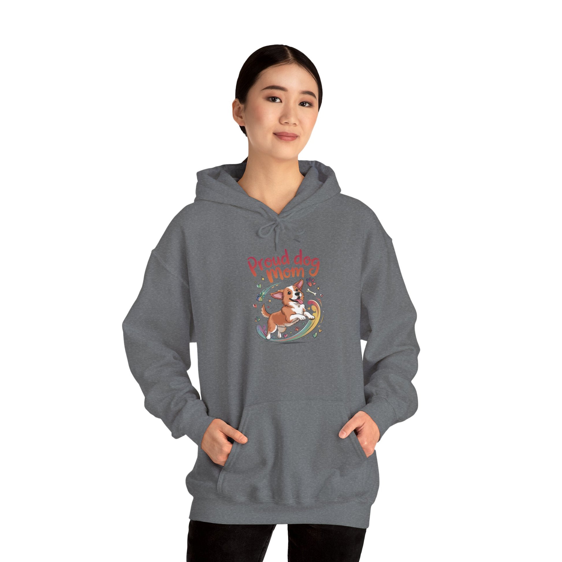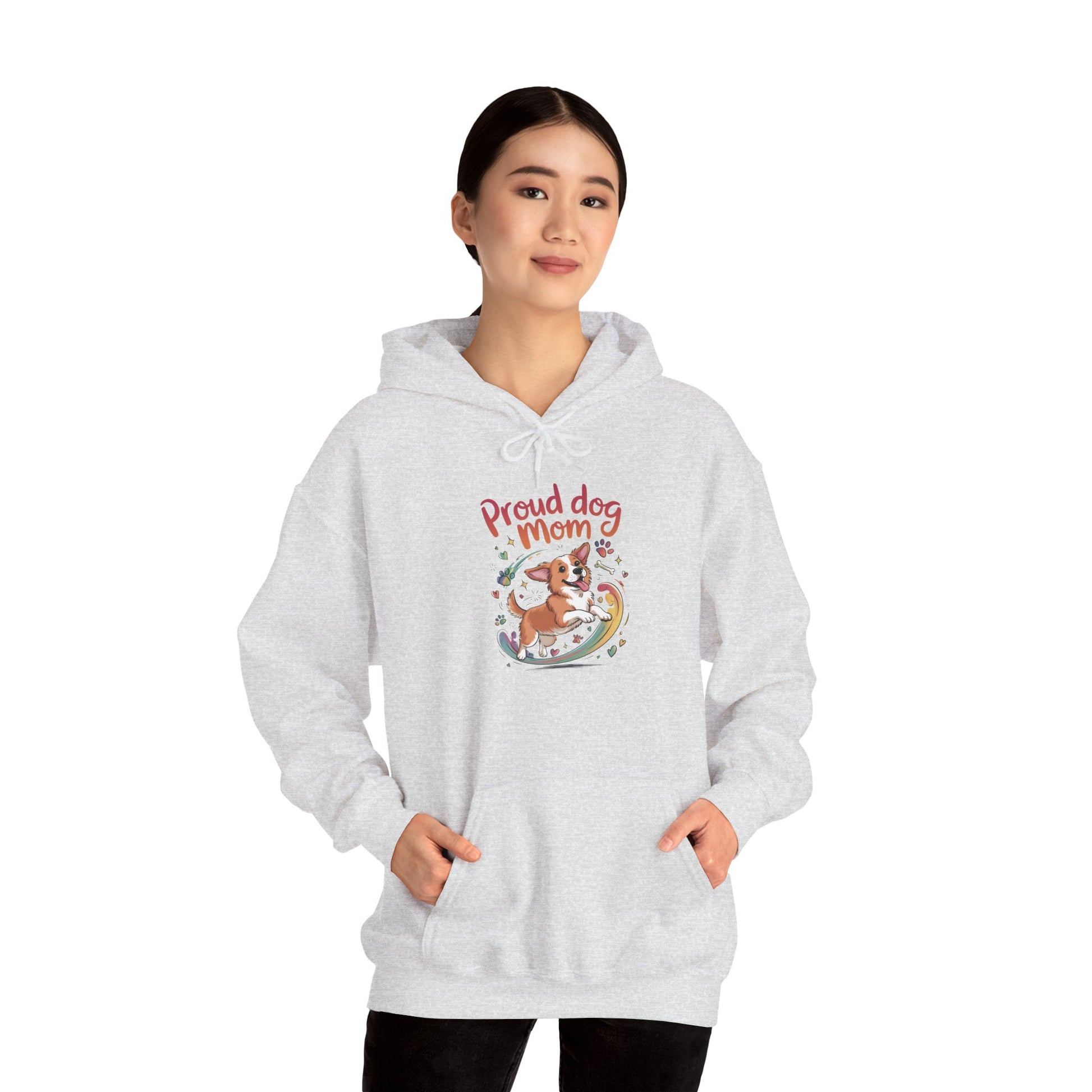Proud Dog Mom Hoodie, Gift for Dog Owners, Dog Lover Apparel, Mother's Day Gift, Unisex Hooded Sweatshirt, Corgi Rainbow Print