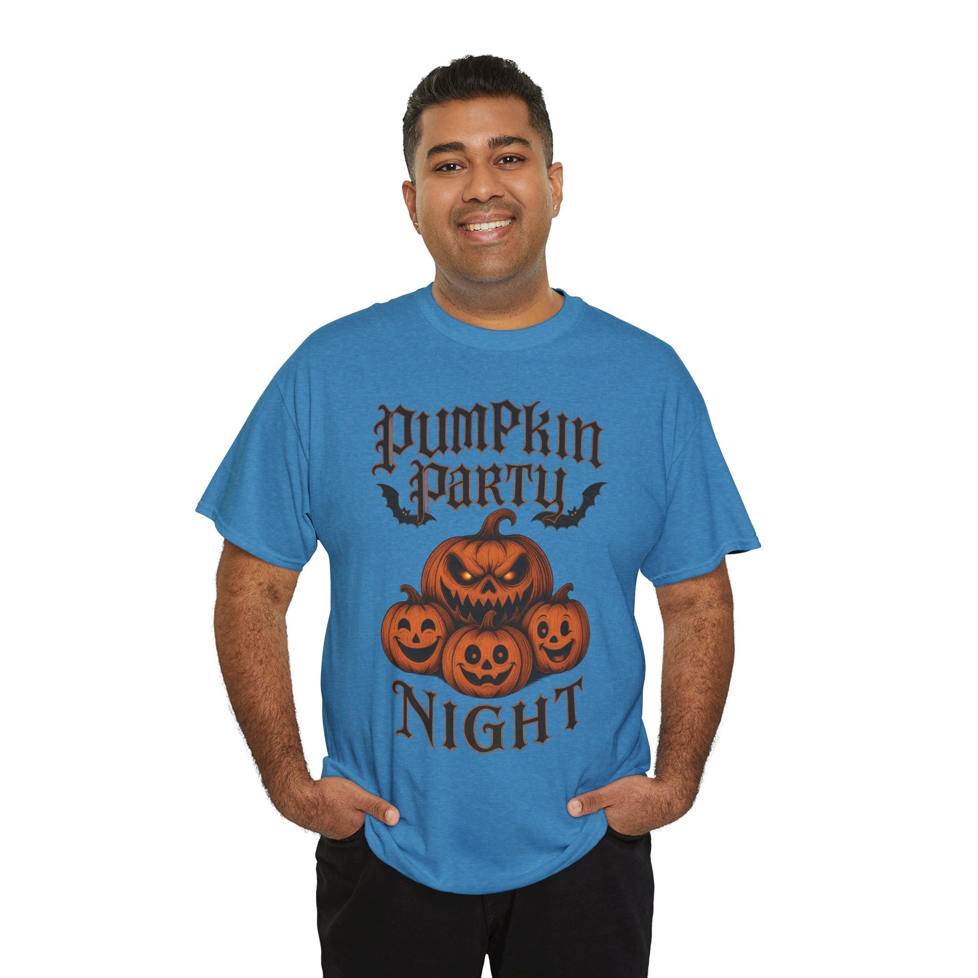 Pumpkin Party Night Men's Halloween T-Shirt, Scary Jack-O-Lantern Pumpkin Graphic Tee for Him