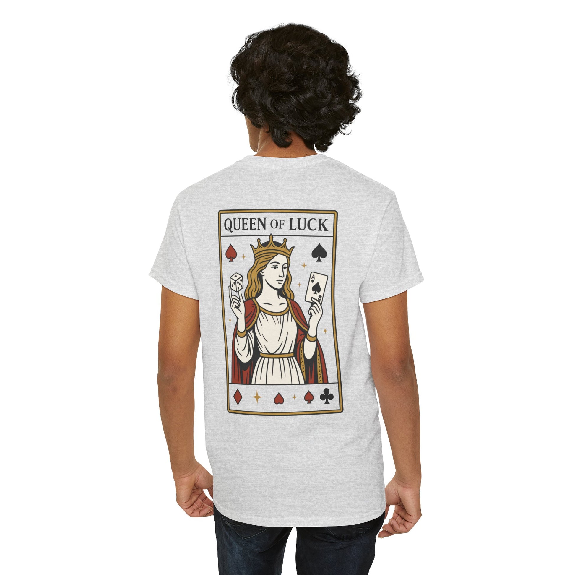 Queen of Luck Front & Back Print unisex T-Shirt, Roll the Dice Tee for Men, Vintage Gambling Shirt, Casino Gift, Poker Gift, Card Games Gift