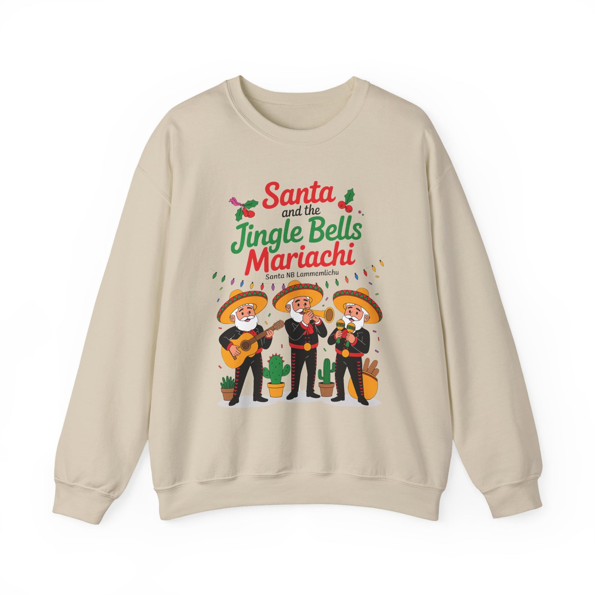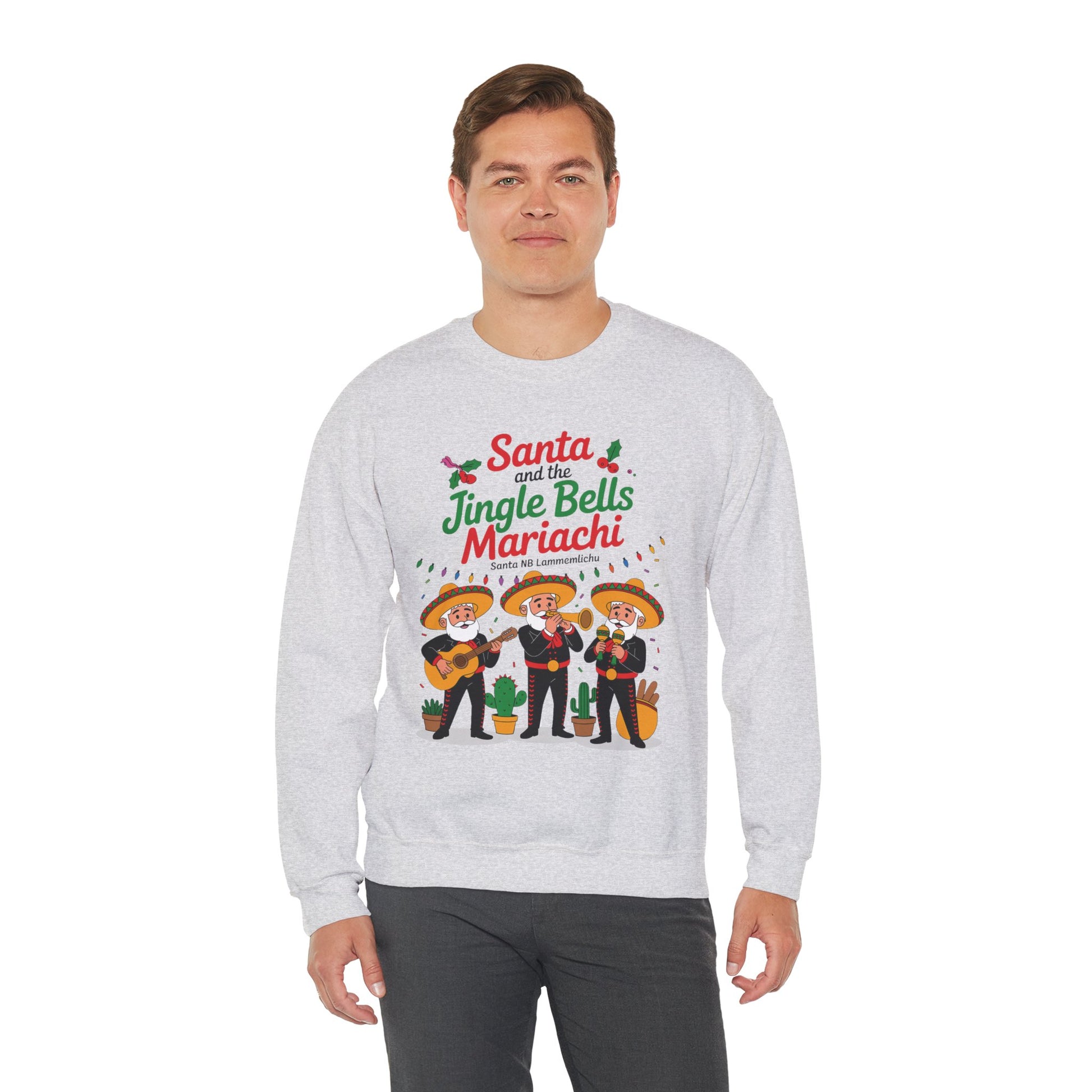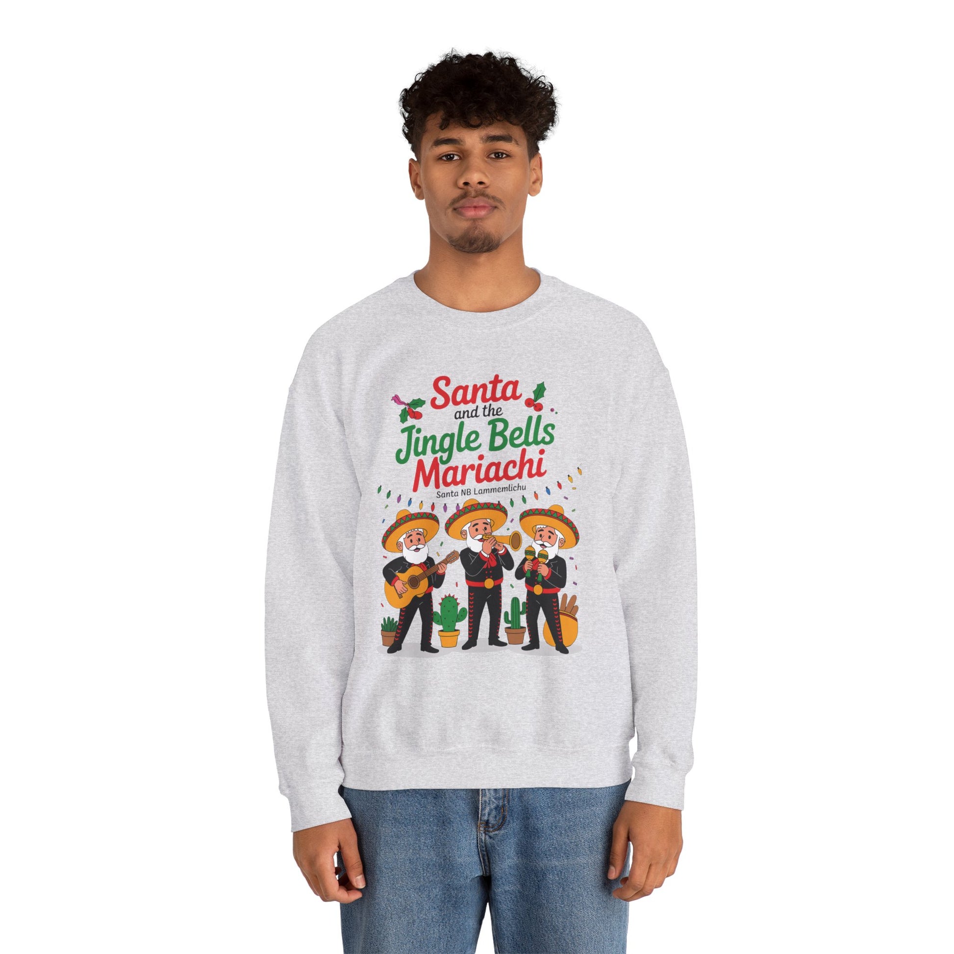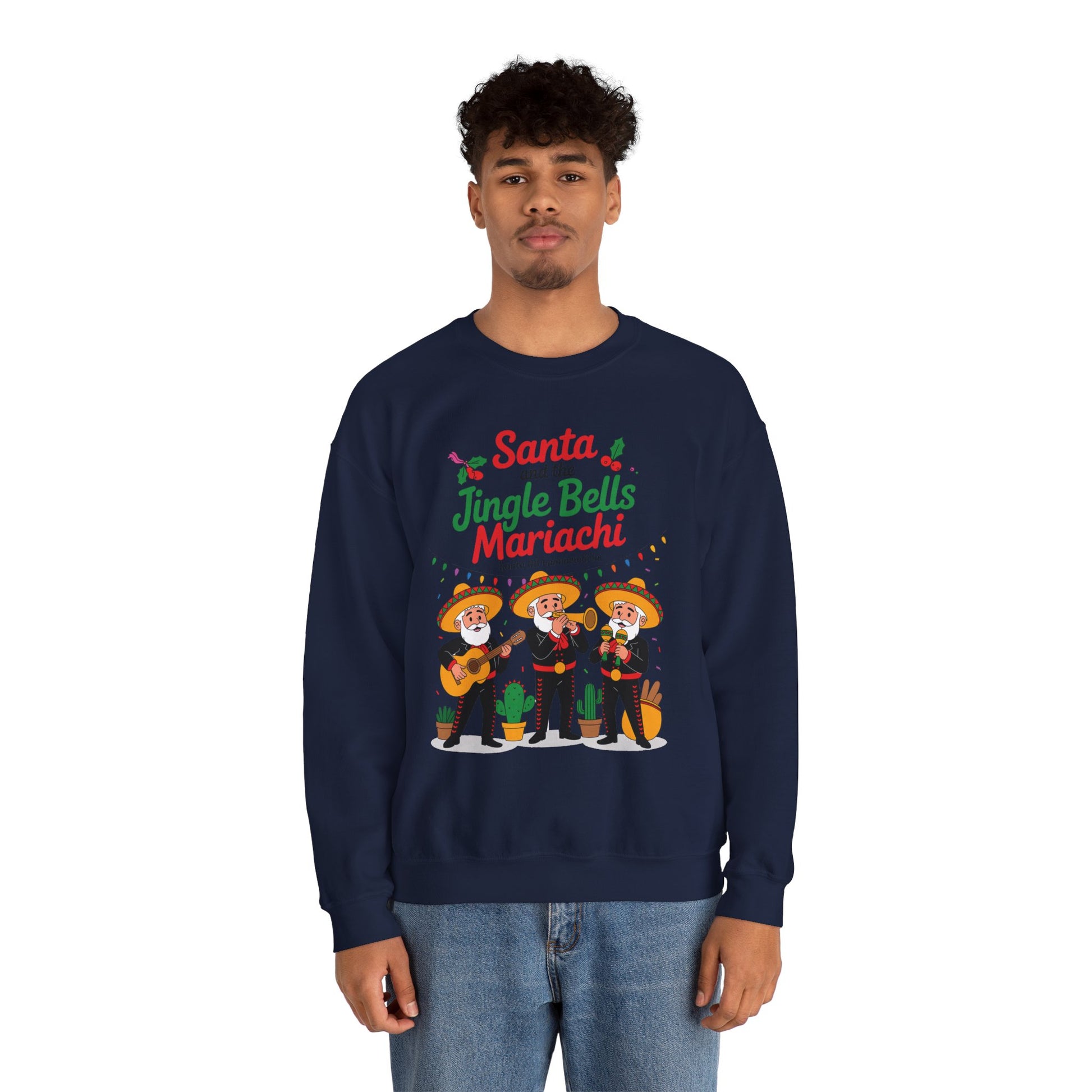 Santa and the Jingle Bells Mariachi Sweatshirt, Funny Mexican Christmas Jumper, Latin Holiday Fiesta Pullover