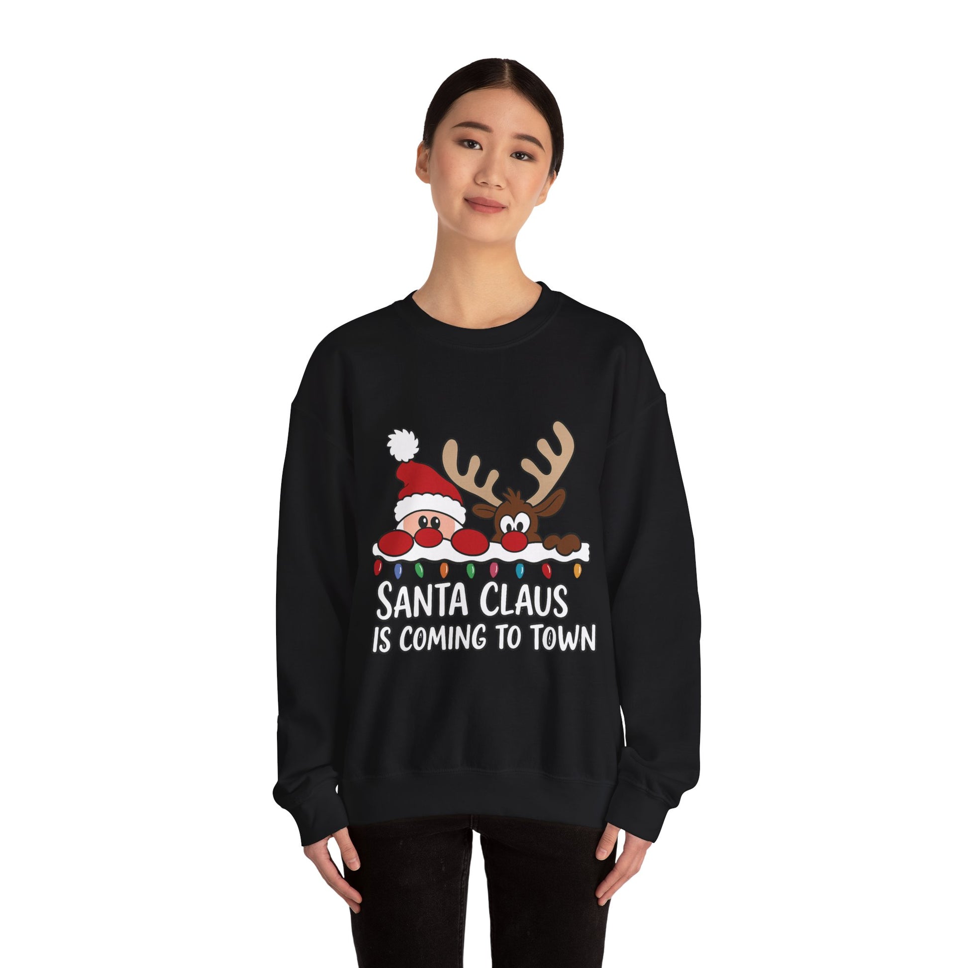 Santa Claus Is Coming to Town Women's Christmas Sweatshirt, Cute Santa - Reindeer Holiday Jumper
