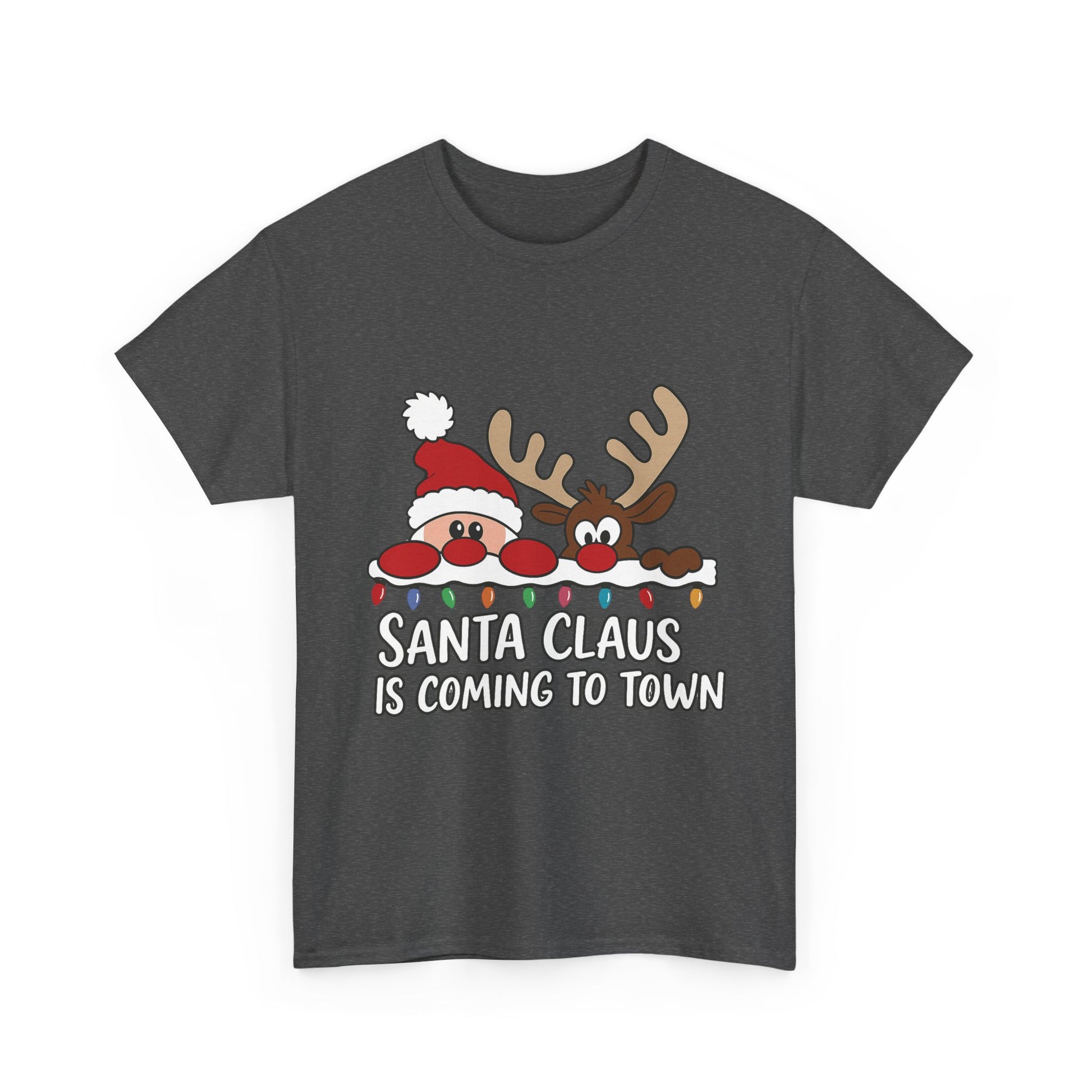 Santa Claus Is Coming to Town Women's Christmas T-Shirt, Cute Santa - Reindeer Holiday Tee