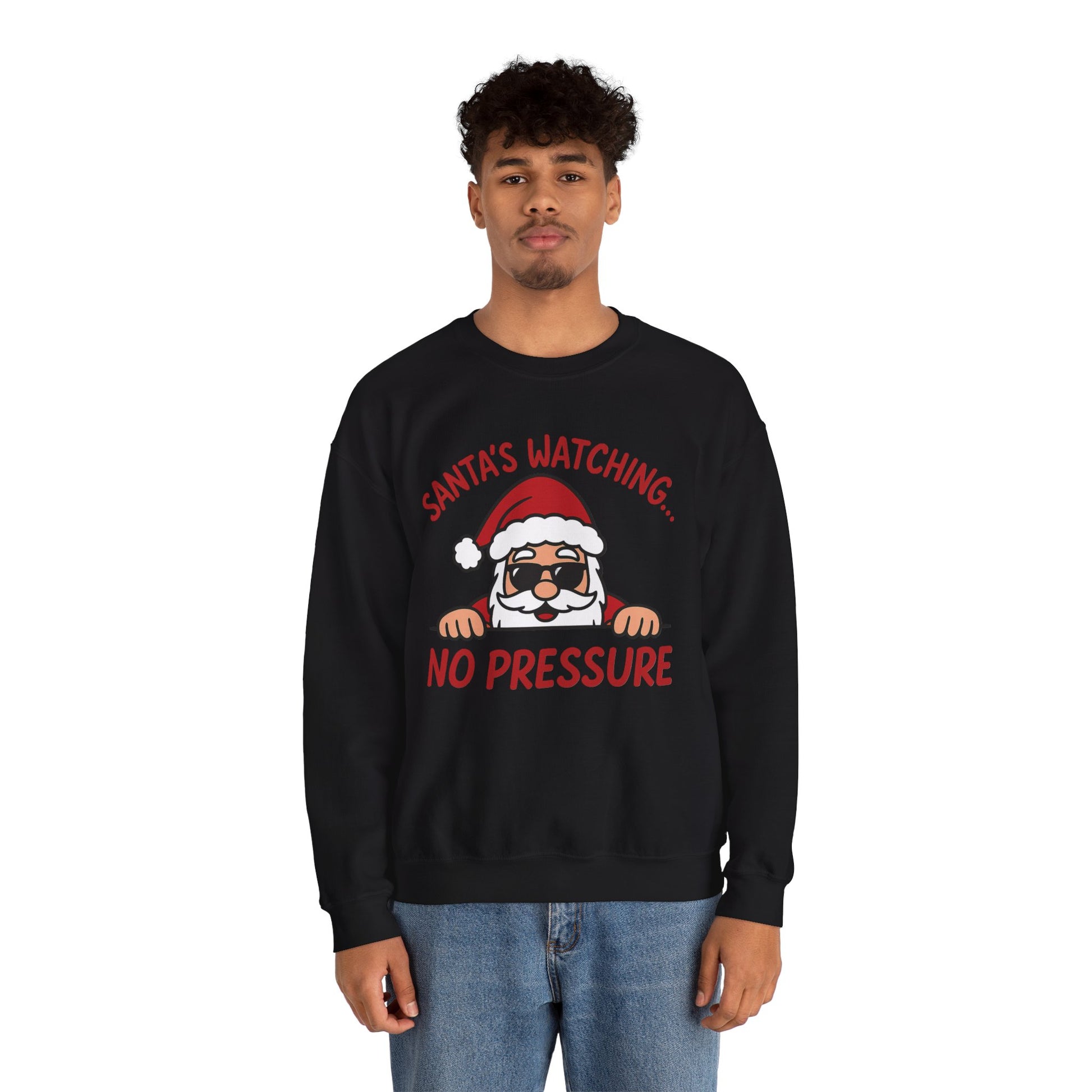 Santa's Watching No Pressure Men's Christmas Sweatshirt, Funny Holiday Jumper