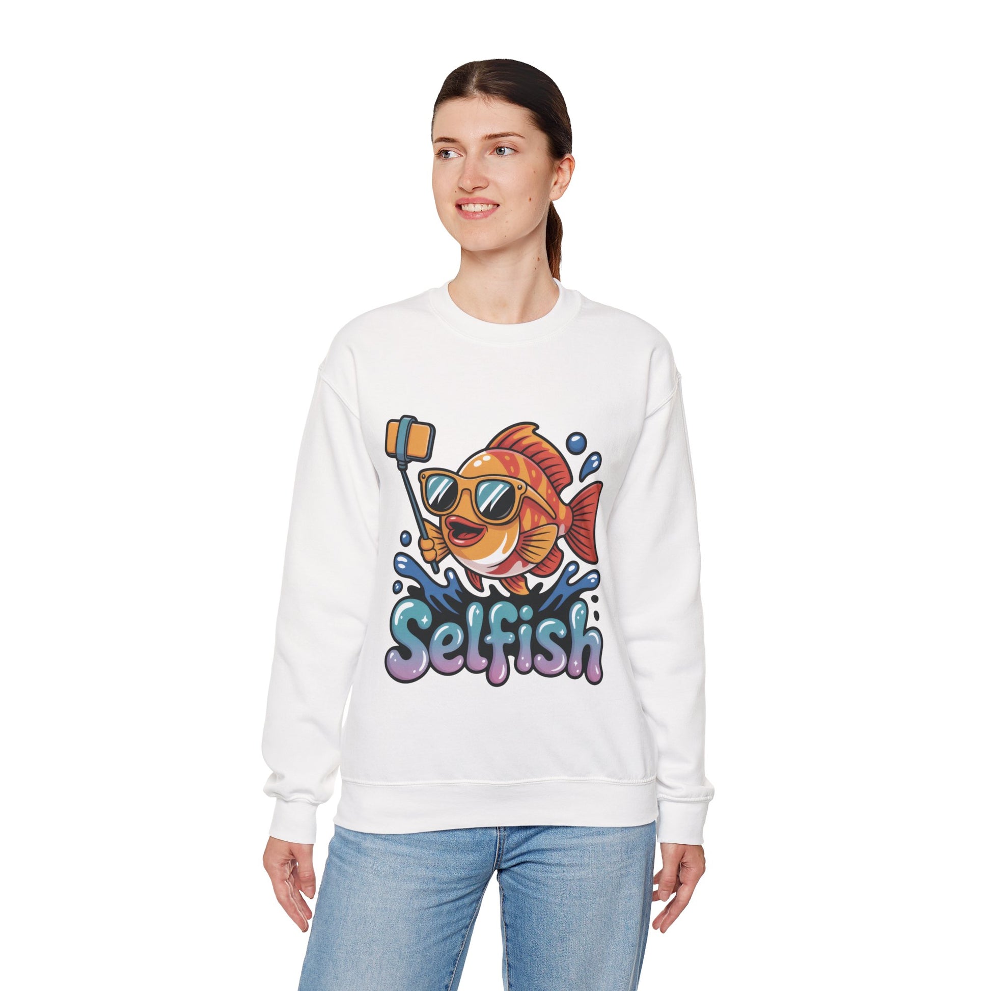 Selfish Womens Sweatshirt, Funny Selfie Pullover, Cute Ocean Pun Sweater, Playful Sea Life Gift, Fun Gift for Fish Lovers, Fishing Apparel