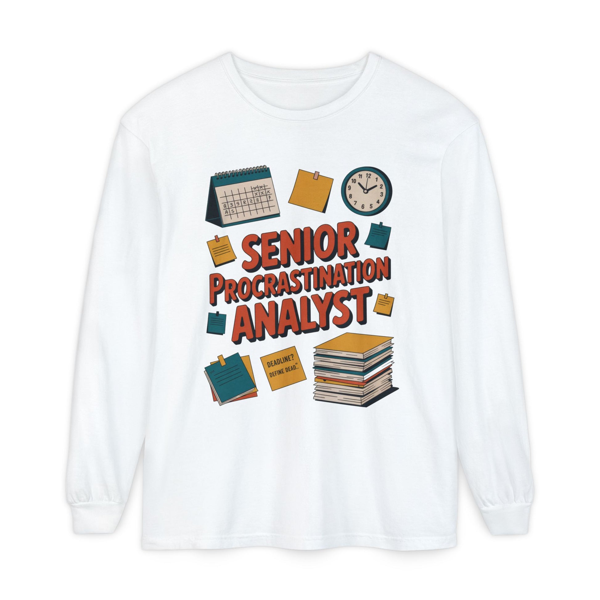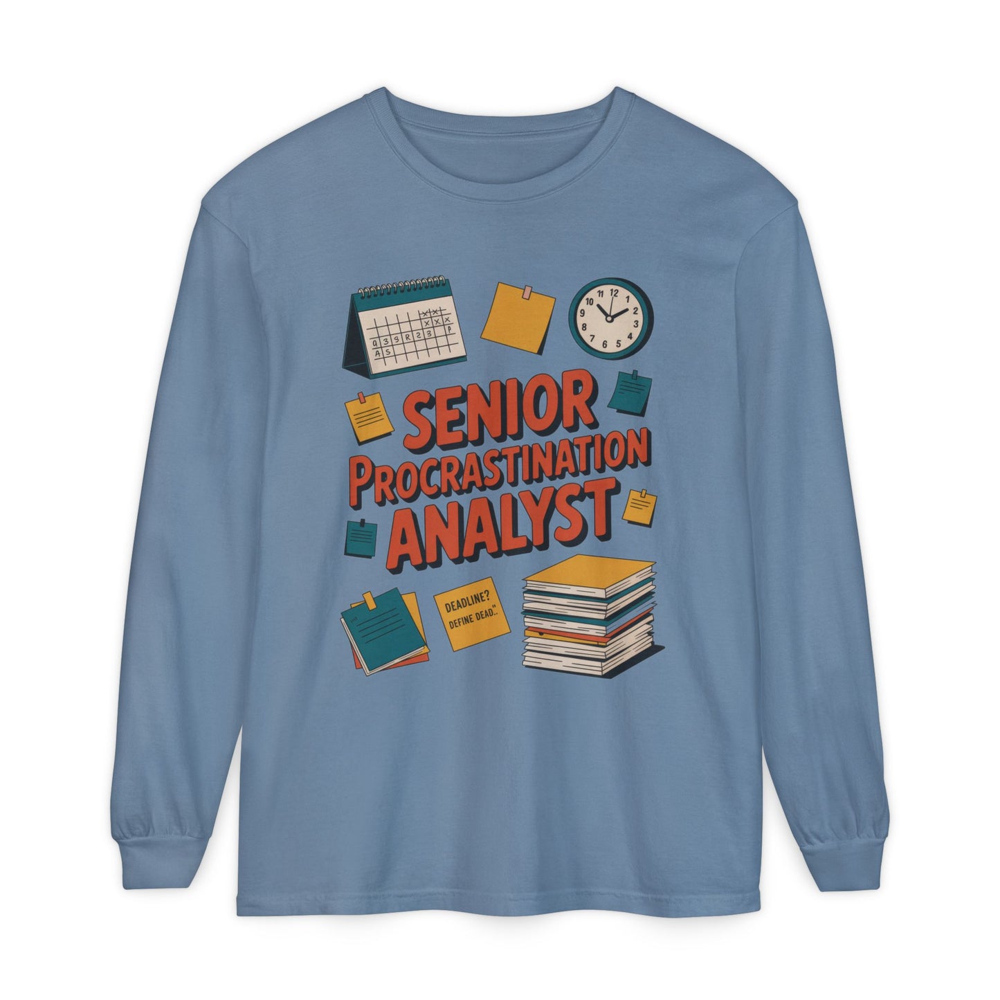 Senior Procrastination Analyst Long Sleeve Tee, Funny Work Shirt,Gift for Analysts, Office Humor, Meme Long Sleeve, Motivation Humor Apparel