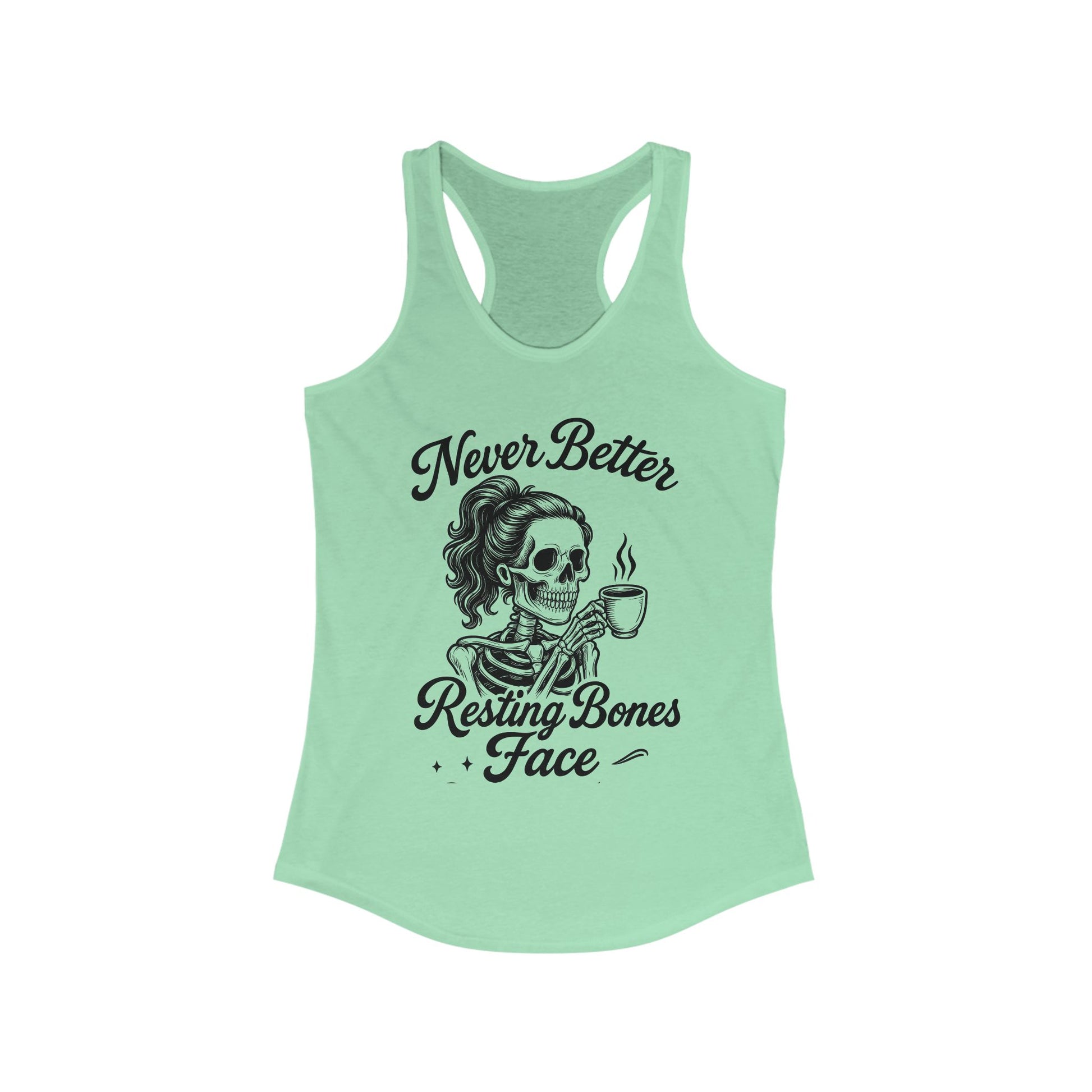 Skull Coffee Tank Top, Women's Racerback, Summer Workout Wear, Halloween Gift, Casual Graphic Tee, Self-Care Fashion