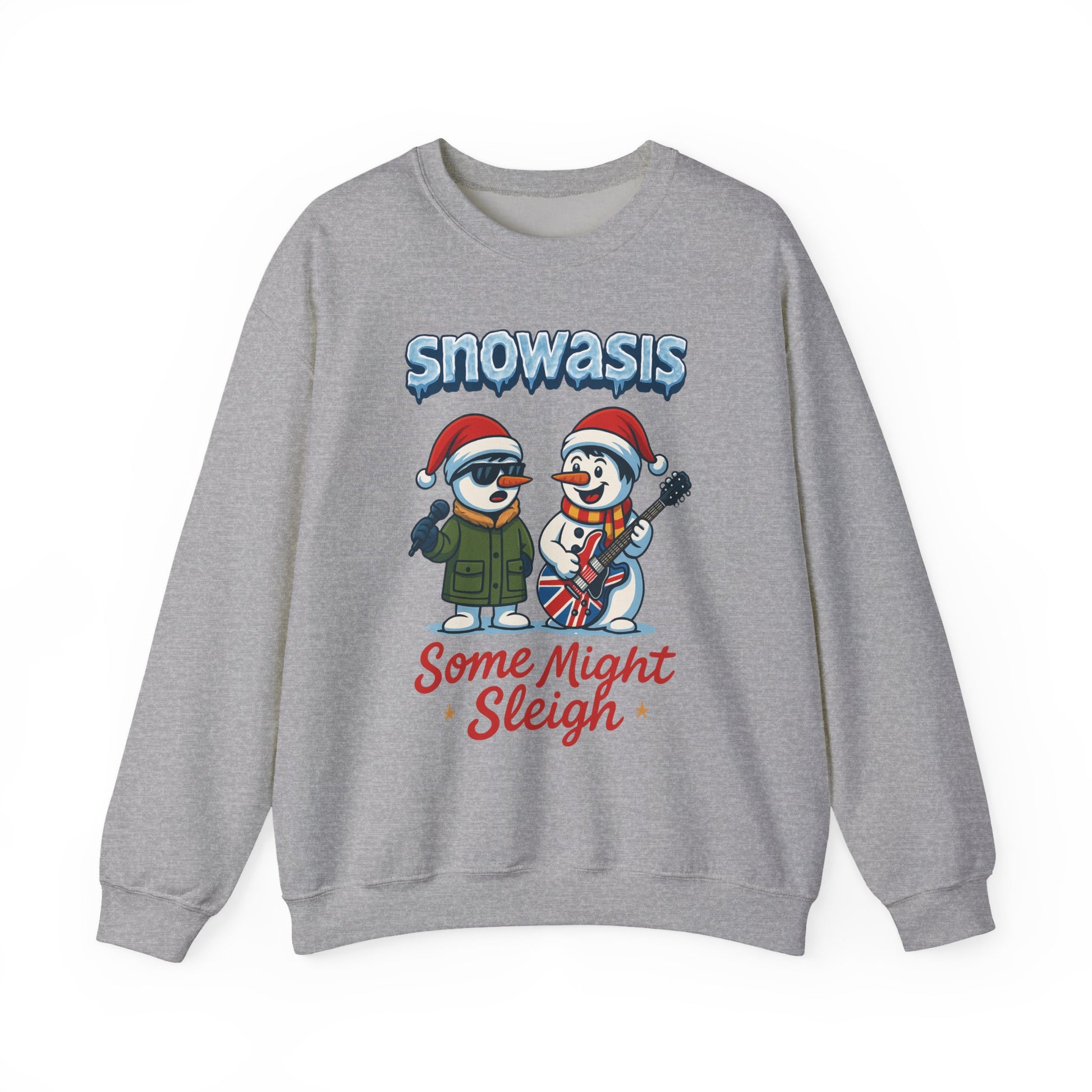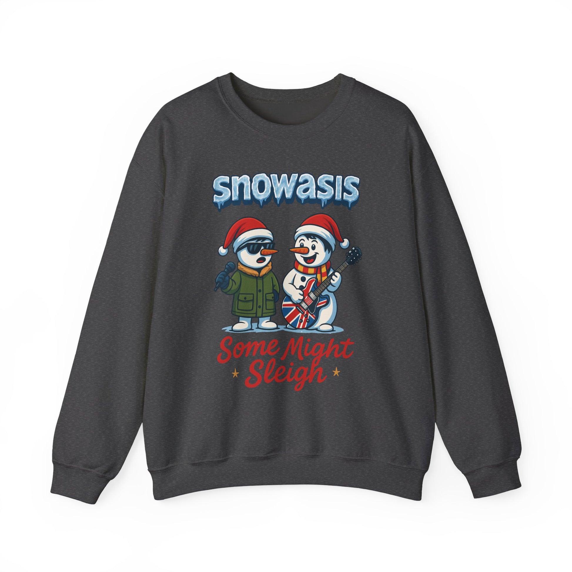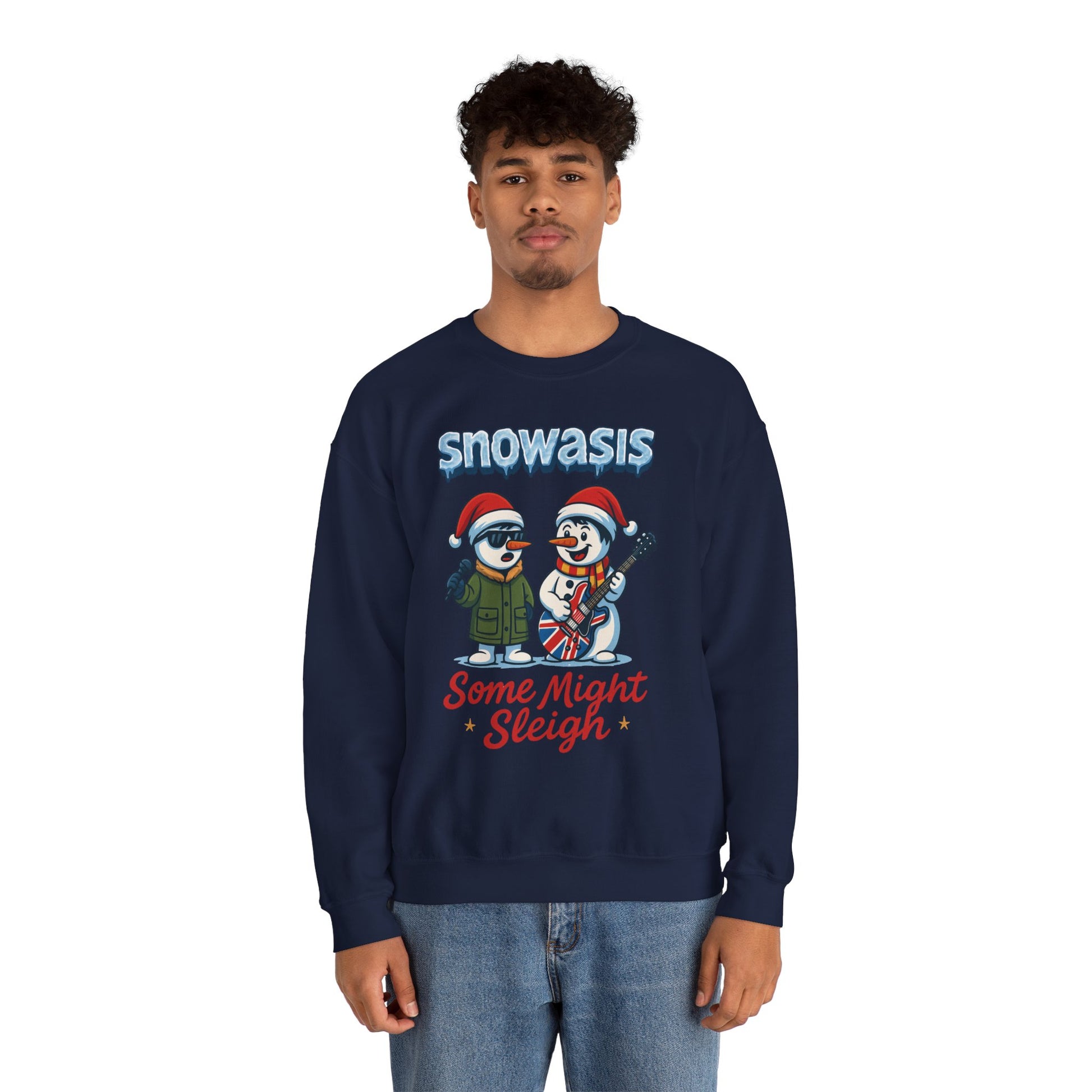Bring festive rock vibes with this men’s “Snowasis – Some Might Sleigh” sweatshirt! Cool snowmen, music spirit, and Christmas humor — perfect for winter parties, gifts, and fun-loving men. The Gildan 18000 sweatshirt is a unisex heavy blend crewneck made from a 50/50 cotton-polyester fabric, combining softness with lasting durability. Its smooth surface supports crisp, vibrant prints and embroidery, while the ribbed-knit collar and reinforced cuffs help it keep its shape over time. A seamless body design reduces irritation and adds to overall comfort. Practical, sturdy, and print-friendly, the Gildan 18000 sweatshirt remains a top choice for custom apparel. Disclaimers:- Due to the fabric properties, the White color variant may appear off-white rather than bright white. - Subtle orange hue shifts with lighting in the Orange color variant. .: The Gildan 18000 sweatshirt is built for comfort and durability, made from a medium-heavy (8.0 oz/yd² (271 g/m²)) 50/50 cotton-polyester blend. .: The classic fit along with the crew neckline deliver a comfy wearing experience with a clean-cut style. Meanwhile, the double-needle stitching at the shoulder, armhole, neck, waistband, and cuff seams add top-tier durability. .: Say goodbye to itchiness thanks to the gray, pearlized tear-away label. .: The Gildan 18000 sweatshirt is crafted from ethically grown US cotton and backed by the US Cotton Trust Protocol, with OEKO-TEX certified dyes that meet safety and environmental standards. .: Fabric blends: Heather Sport colors - 60% polyester, 40% cotton .: Embroidery decoration method available on either left chest, center chest, or large center chest, as well as right + left wrists