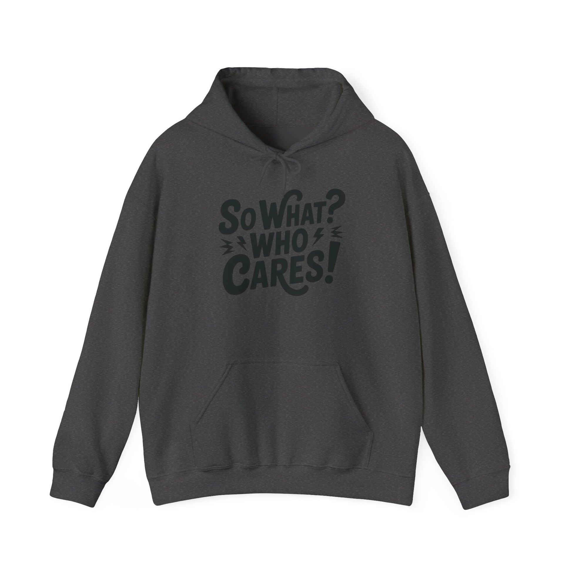 So What? Who Cares! Funny Mens Hoodie, Bold Statement Design, Lightning Graphic Pullover, Rebellious Urban Humor, Funny Streetwear