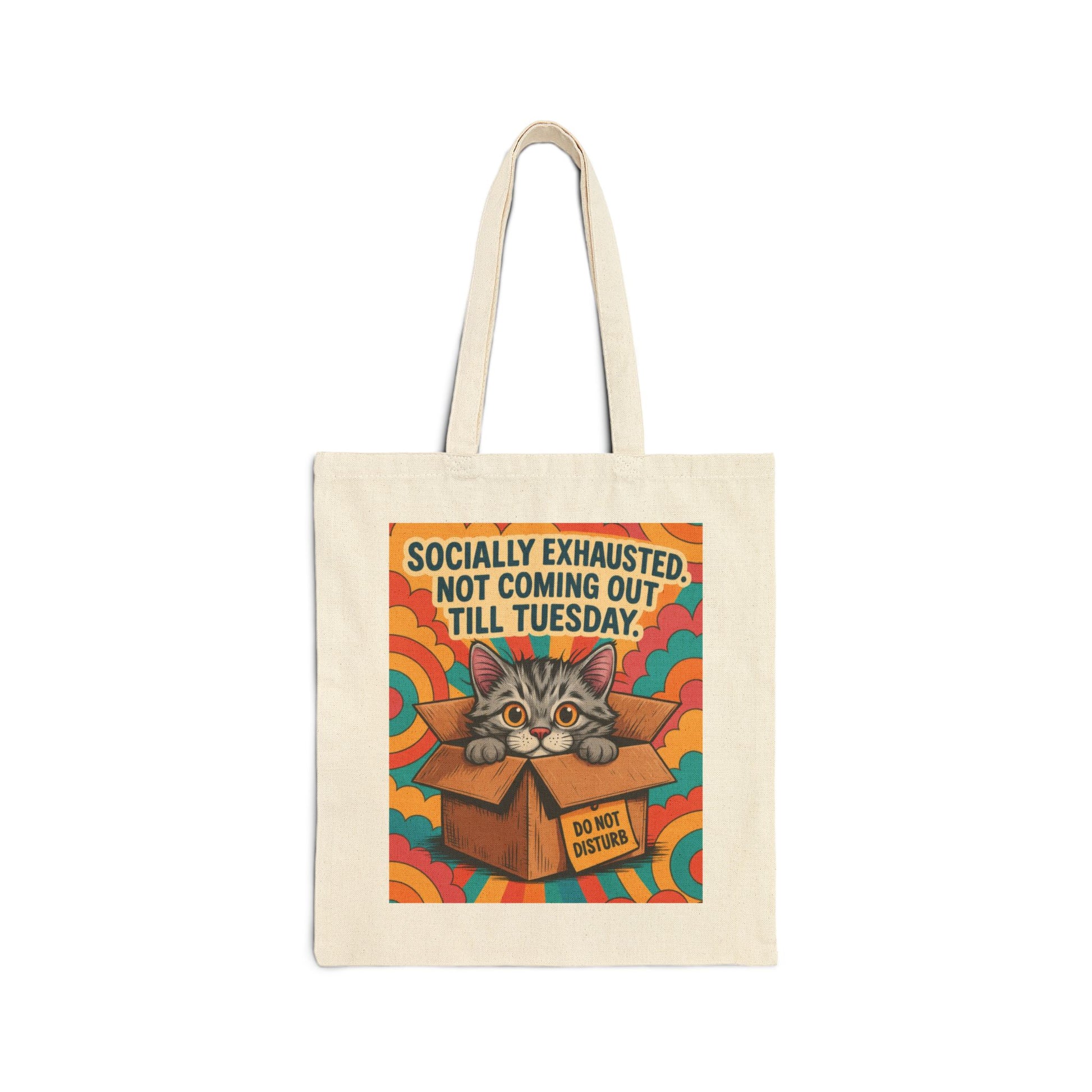 Socially Exhausted Cat Tote Bag, Funny Retro Cat in Box Canvas Bag, Do Not Disturb Comic Bag, Gift for Cat Lovers, Weekend Vibes