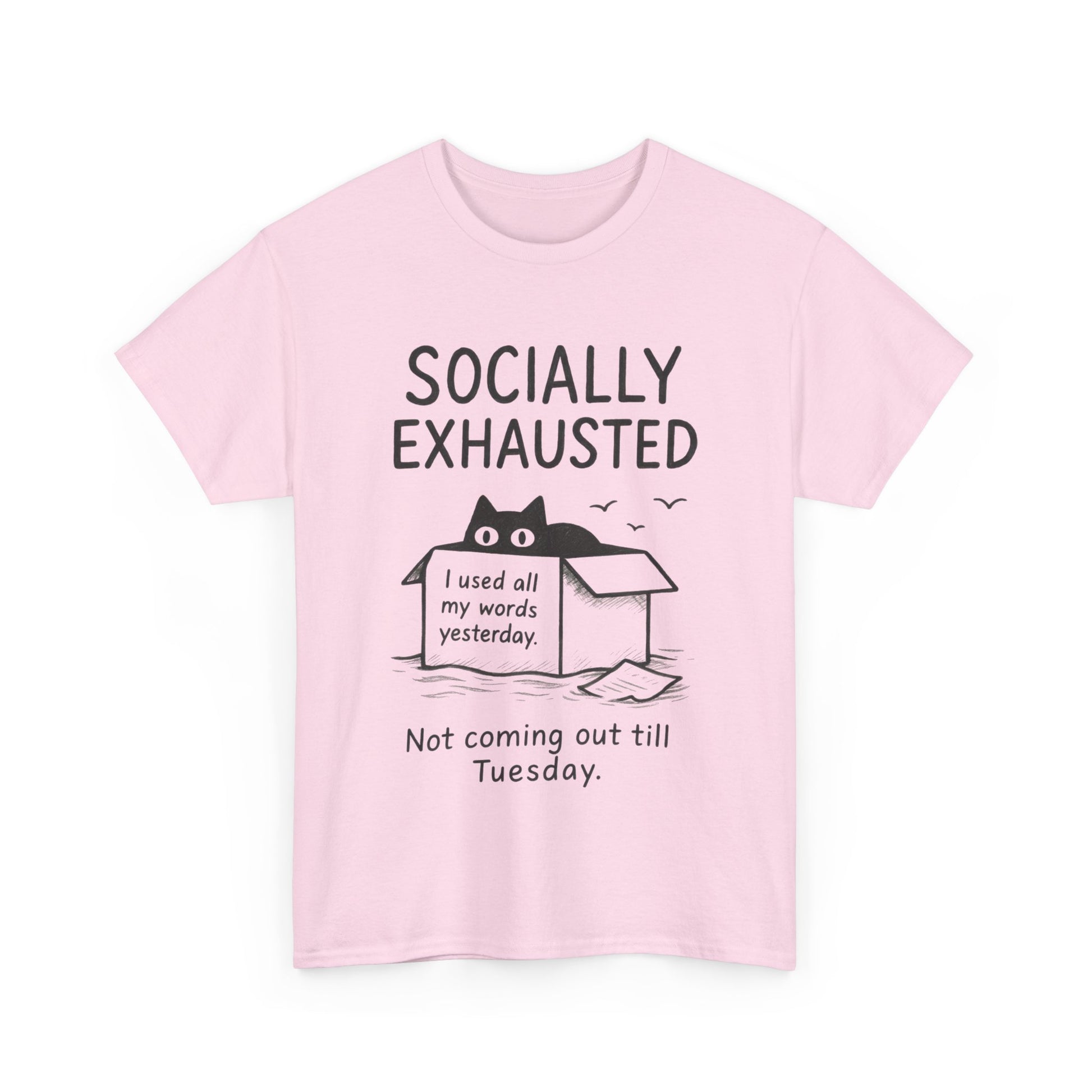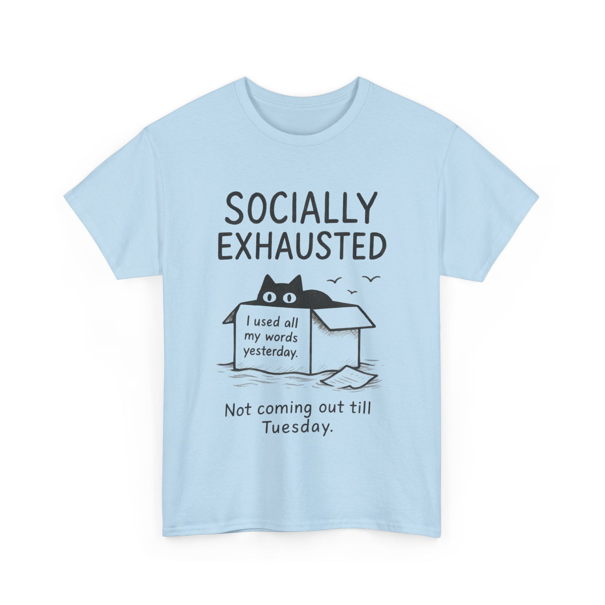 Socially Exhausted Tee, Perfect for Introverts, Gift for Shy Friends, Anxiety Relief Shirt, Funny Quote T-Shirt, Cat Lover Gift