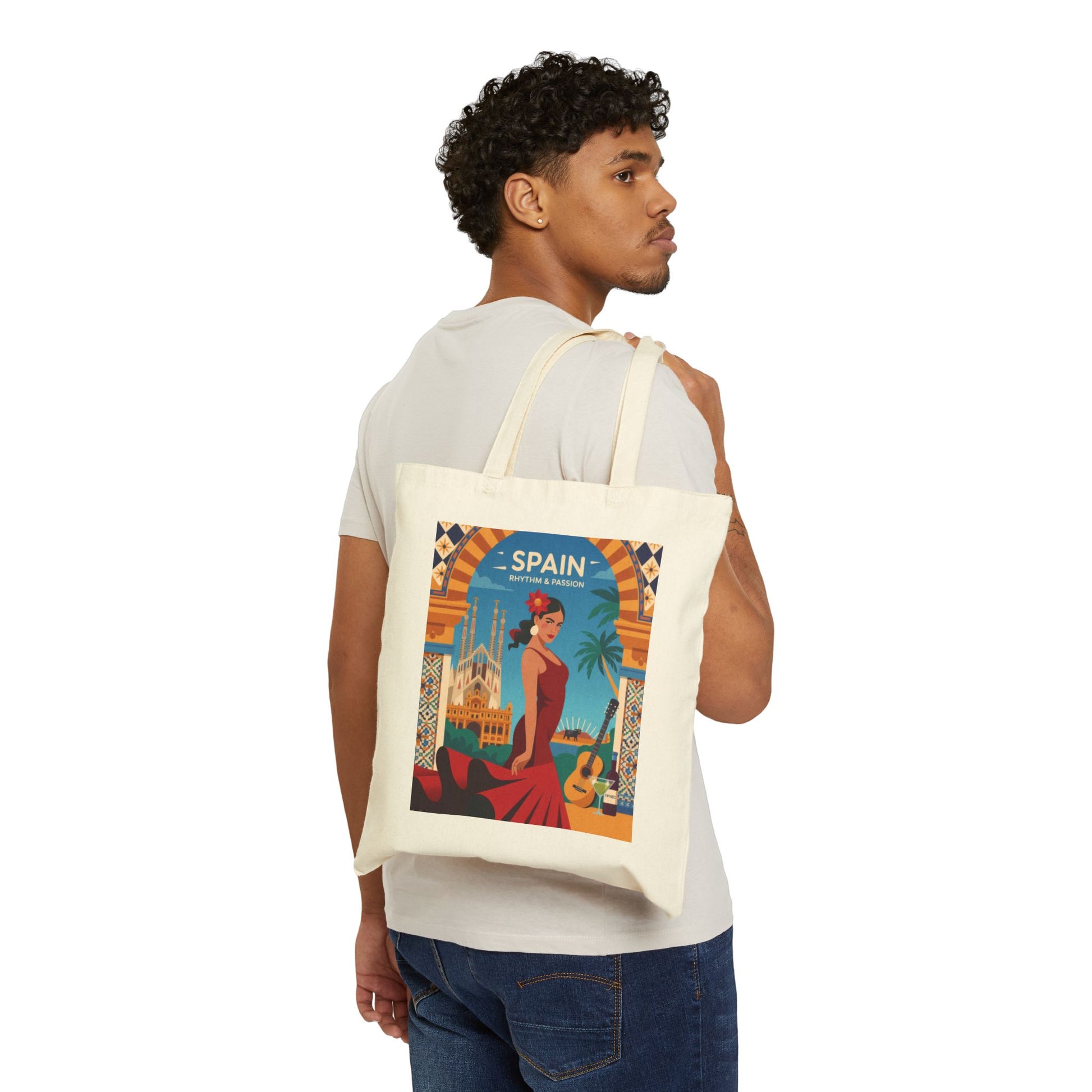 Spanish Rhythm Canvas Tote Bag, Eco-Friendly Shopper, Travel Essentials, Gift for Travelers, Sustainable Fashion