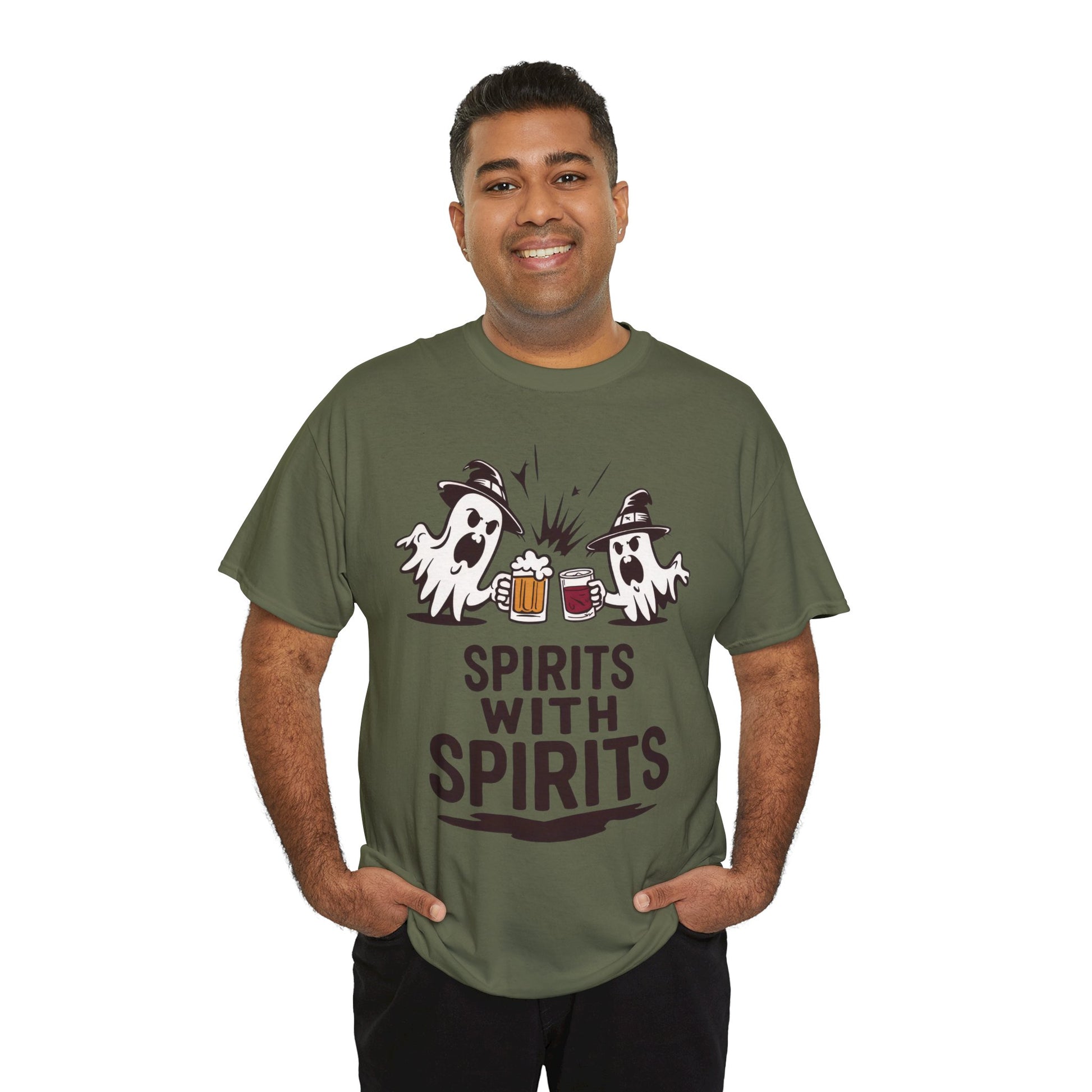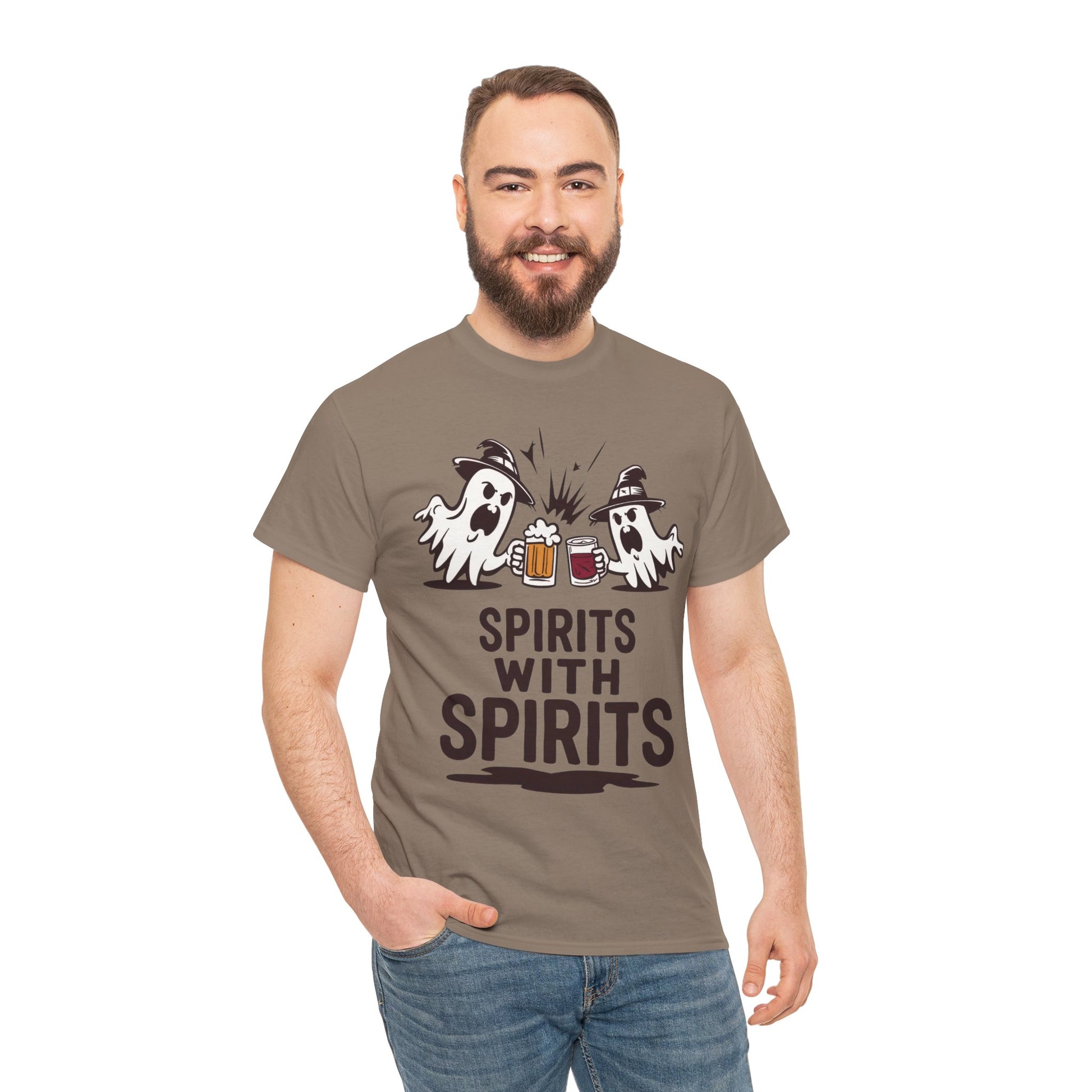 Spirits With Spirits Men's T-Shirt, Funny Ghost Drinking Halloween Party Graphic Tee