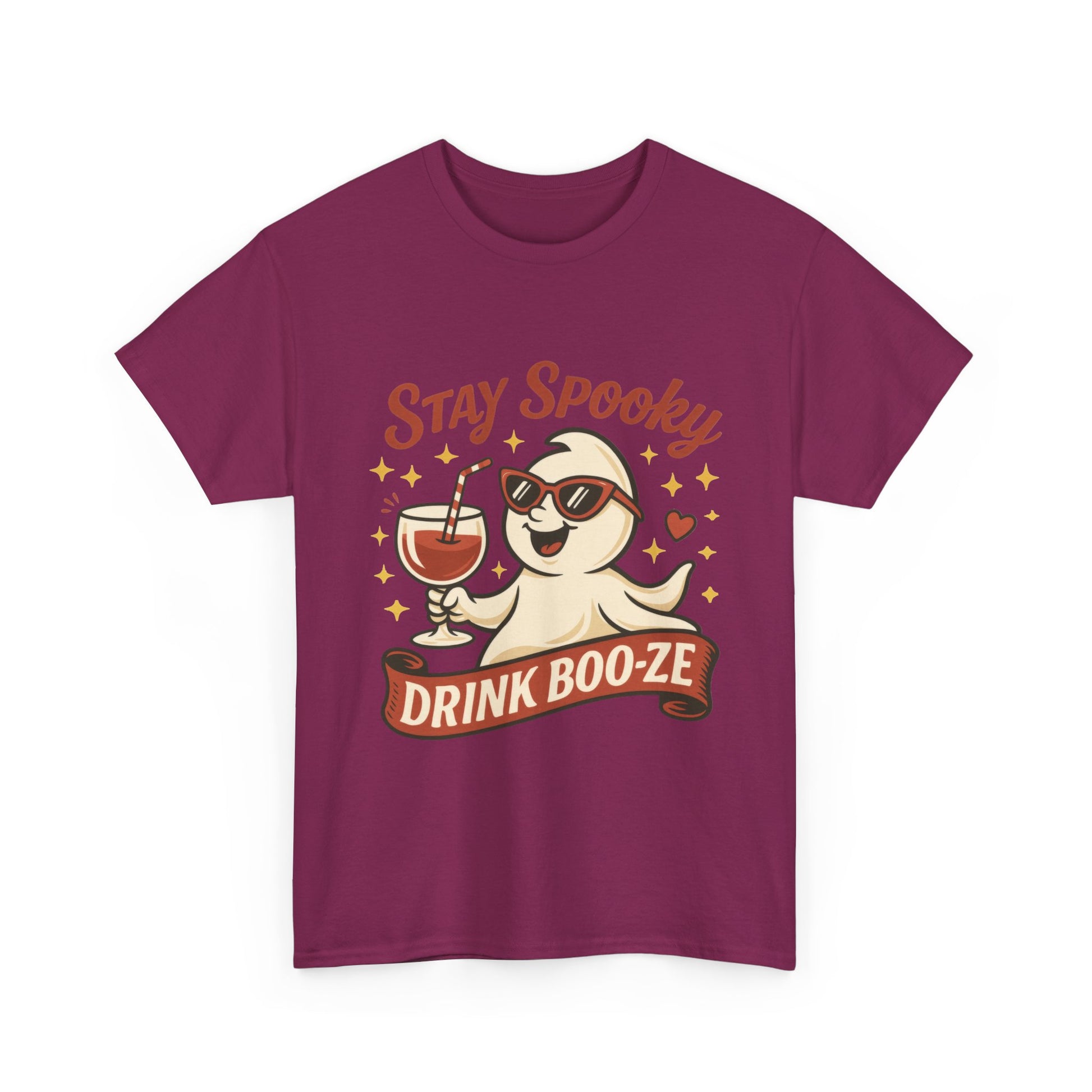 Stay Spooky Drink Boo-ze Women's T-Shirt, Funny Ghost Wine Halloween Party Graphic Tee
