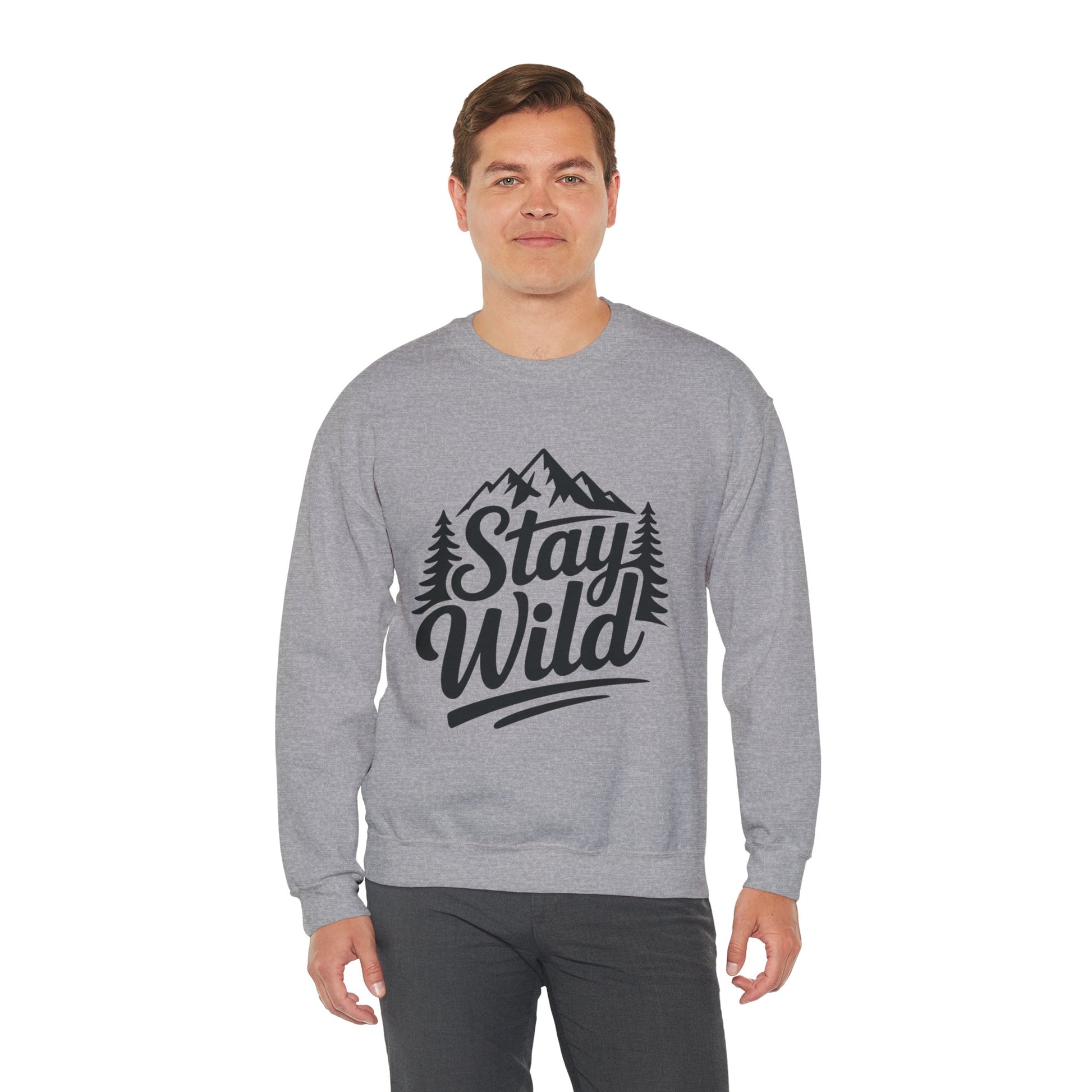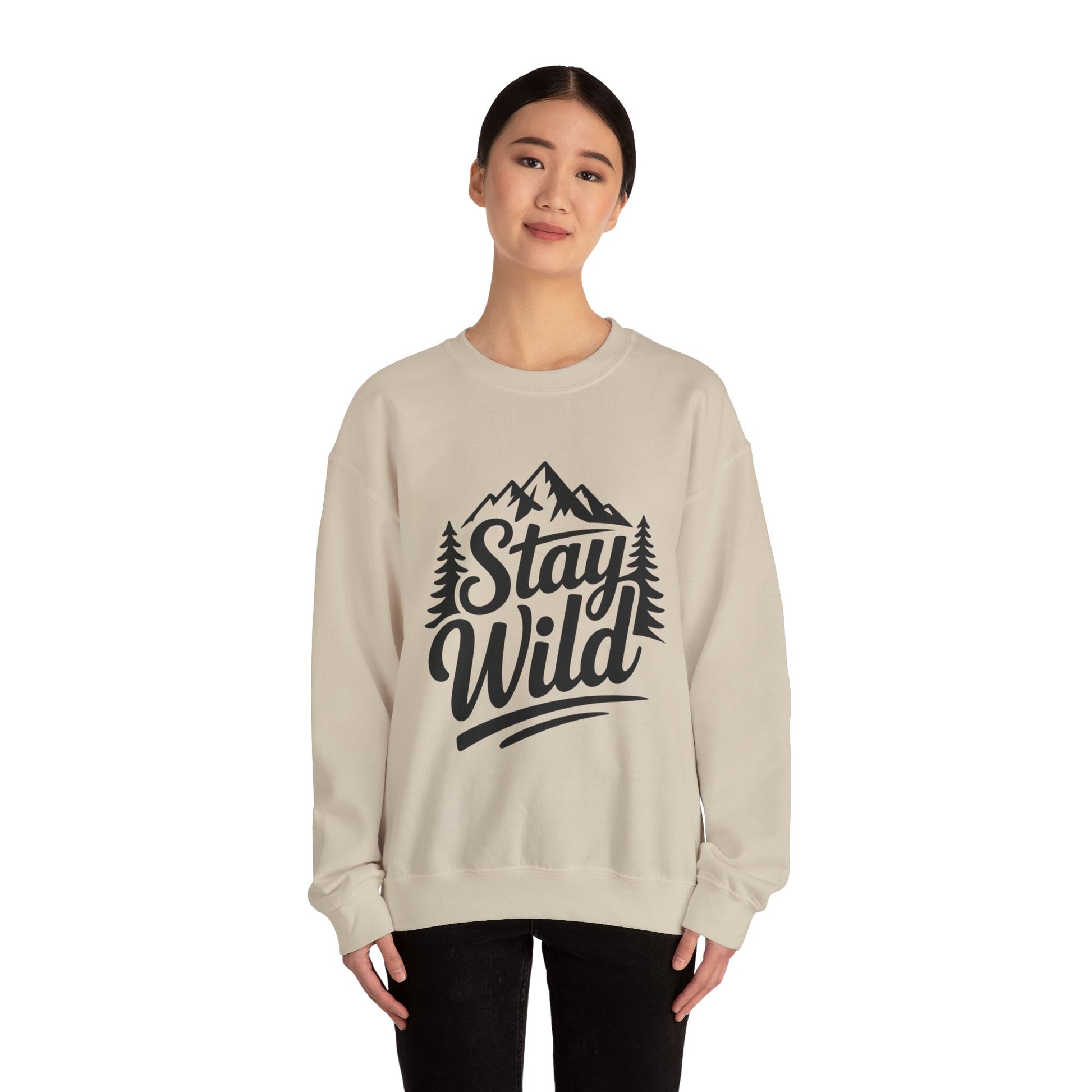 Stay Wild Unisex Crewneck Sweatshirt, Cozy Casual Wear for Adventurers, for Nature Lovers, Mountain Nature Unisex Crewneck Sweatshirt