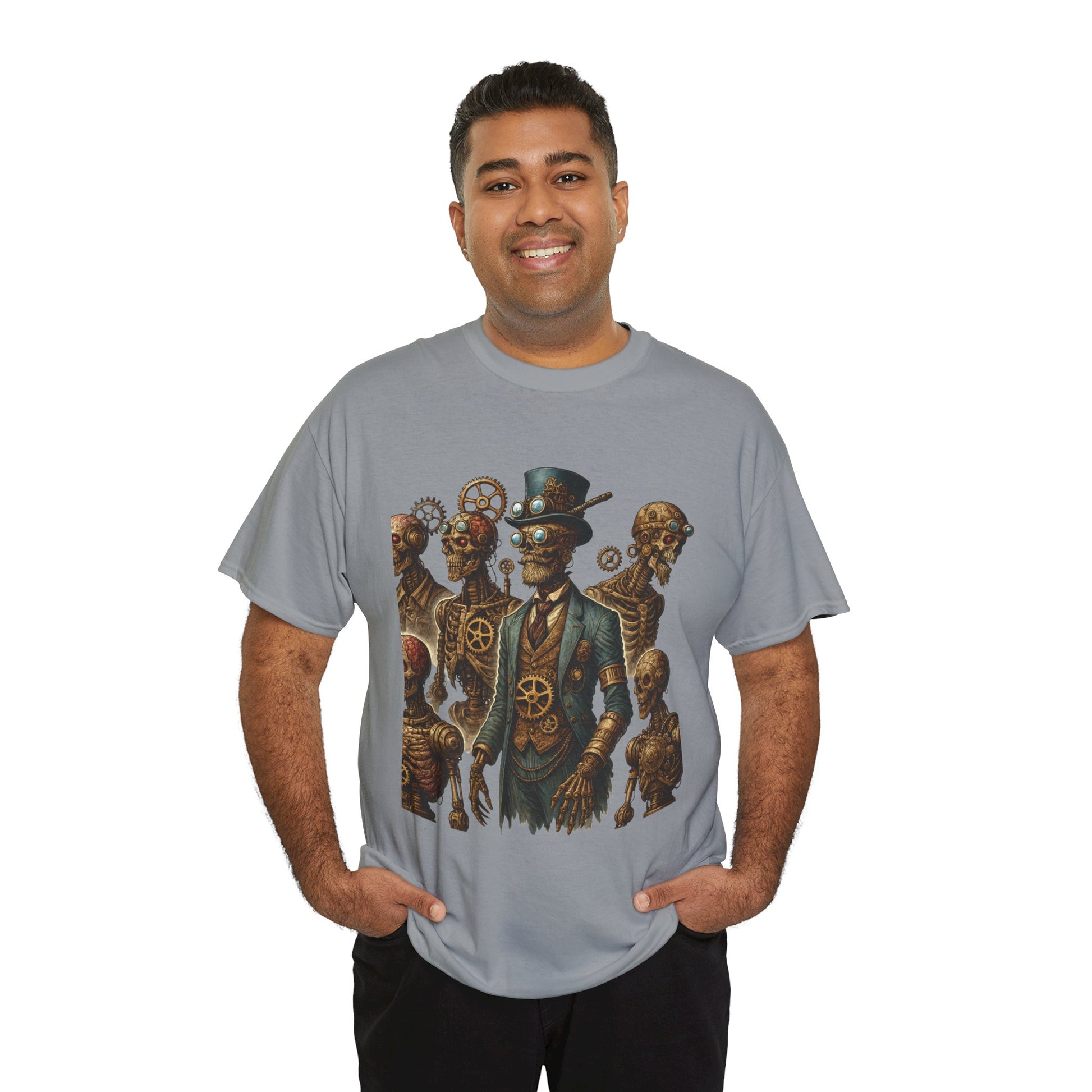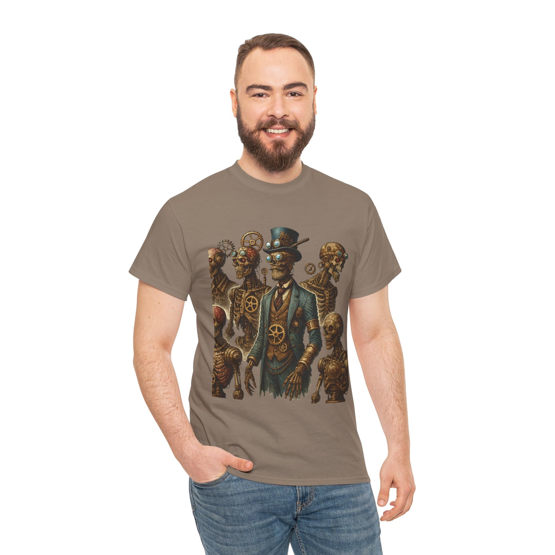 Steampunk Skeleton Gentleman T-Shirt, Vintage Mechanical Robot Skull Design, Gothic Industrial Cyberpunk Tee for Men