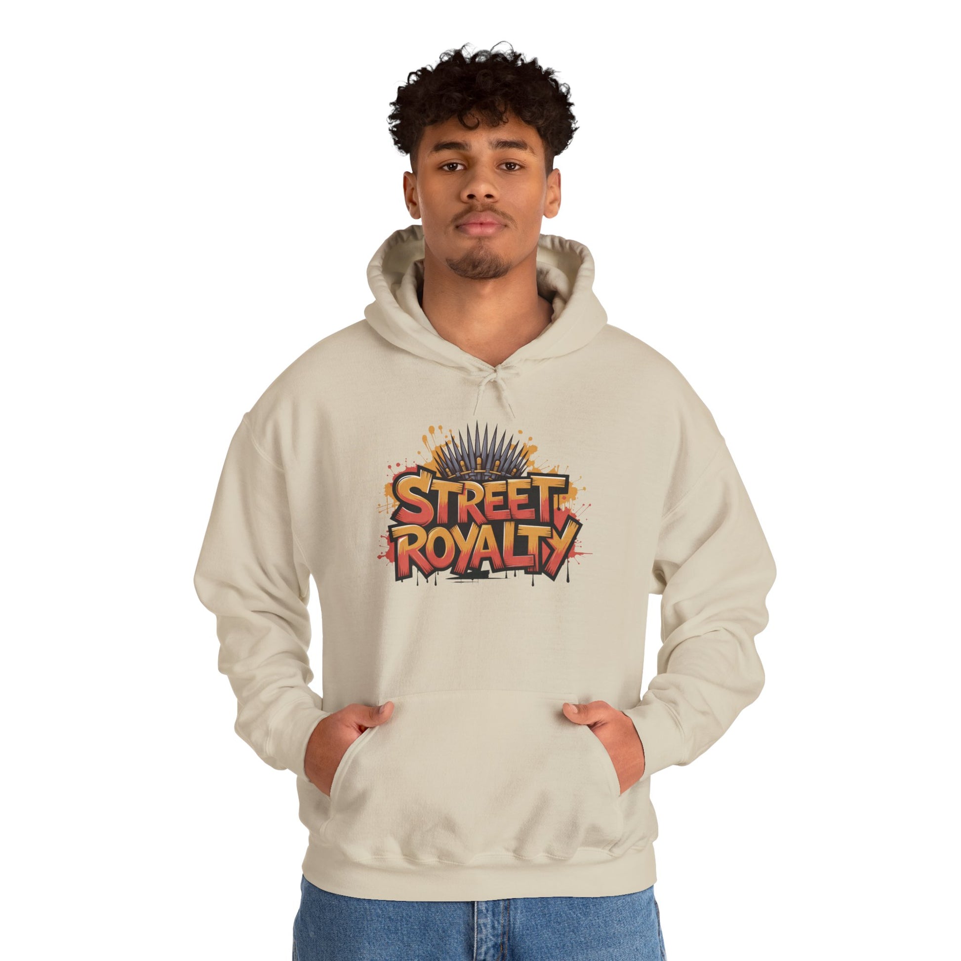 Street Royalty Men's Hoodie, Graffiti Crown Graphic Sweatshirt, Urban Streetwear Pullover with Throne Design