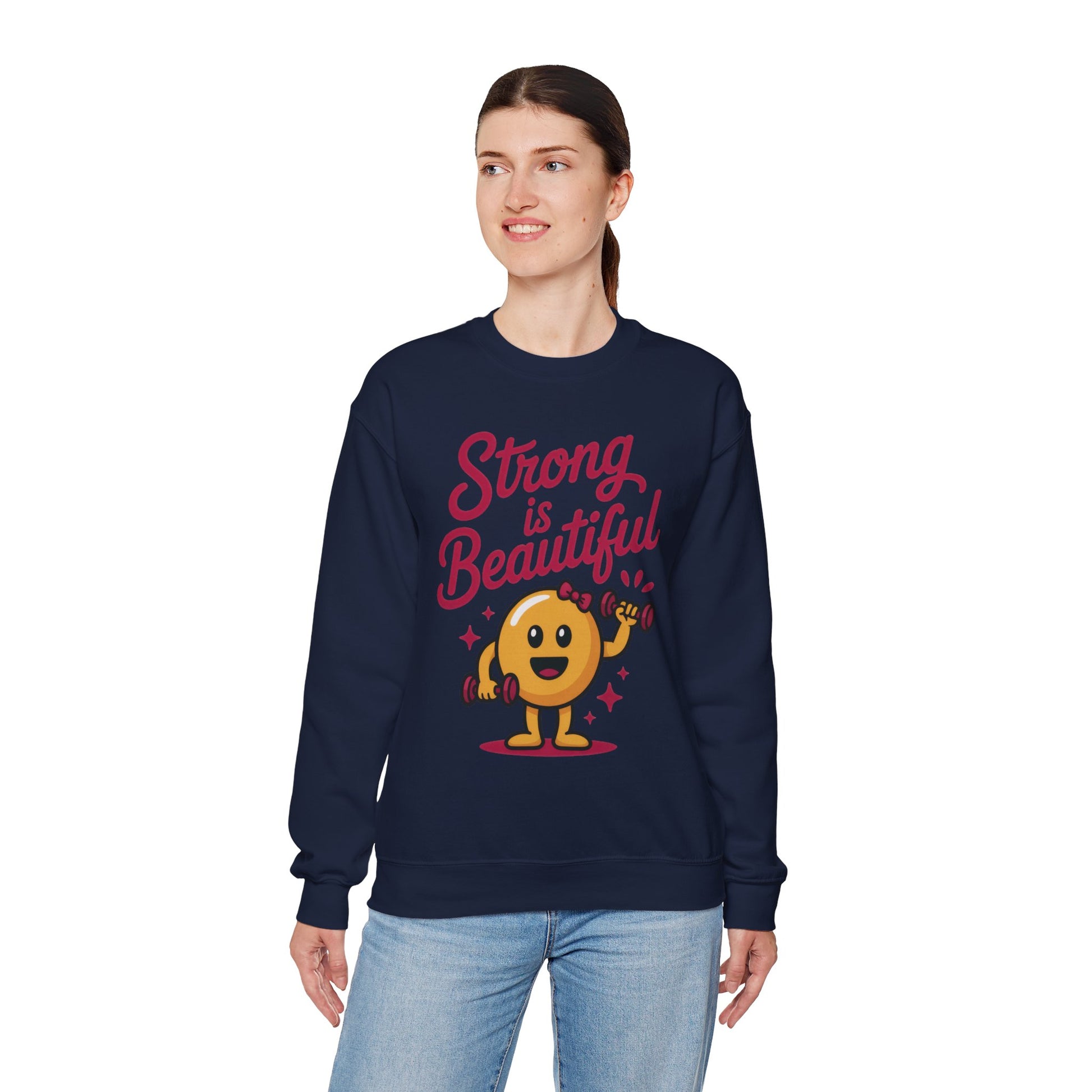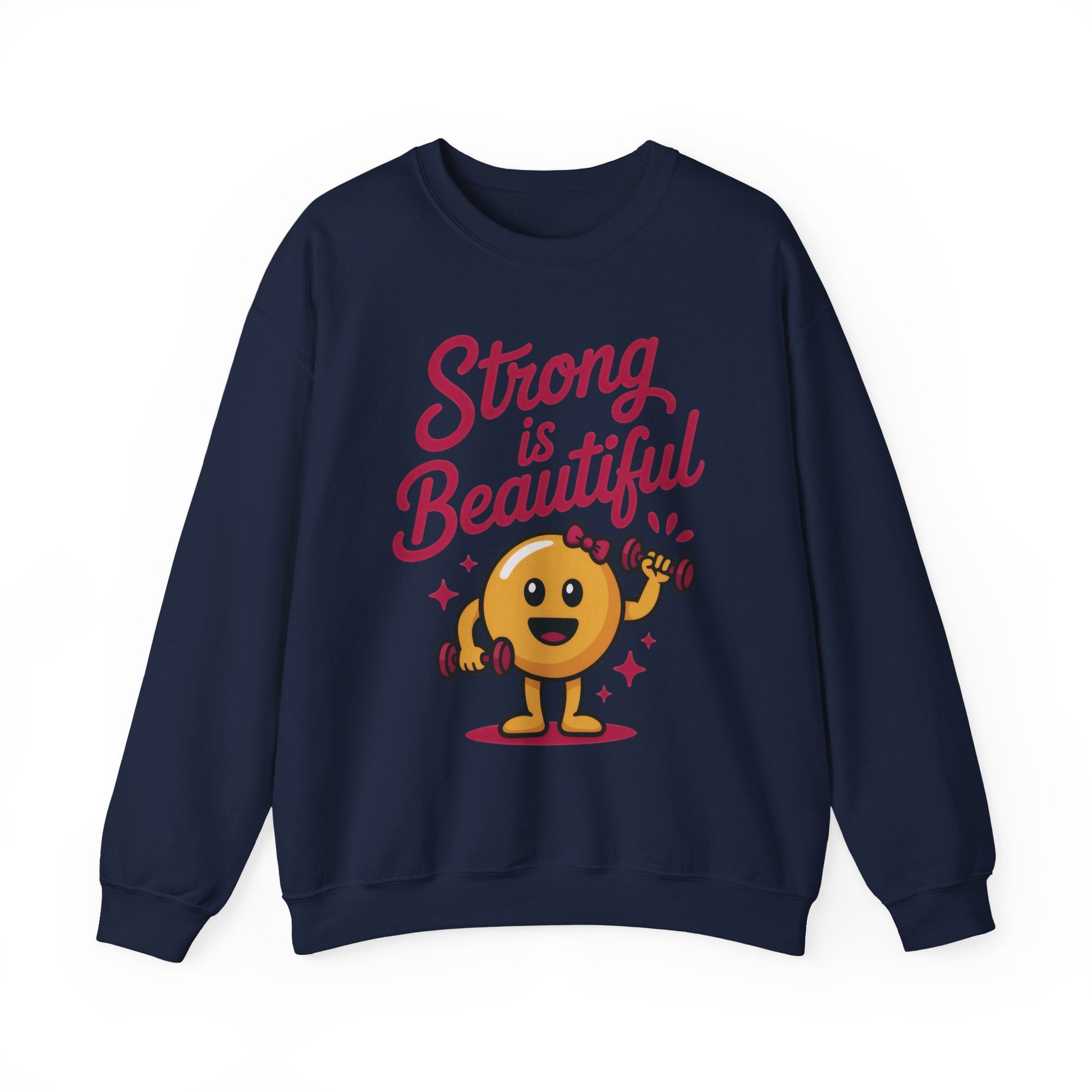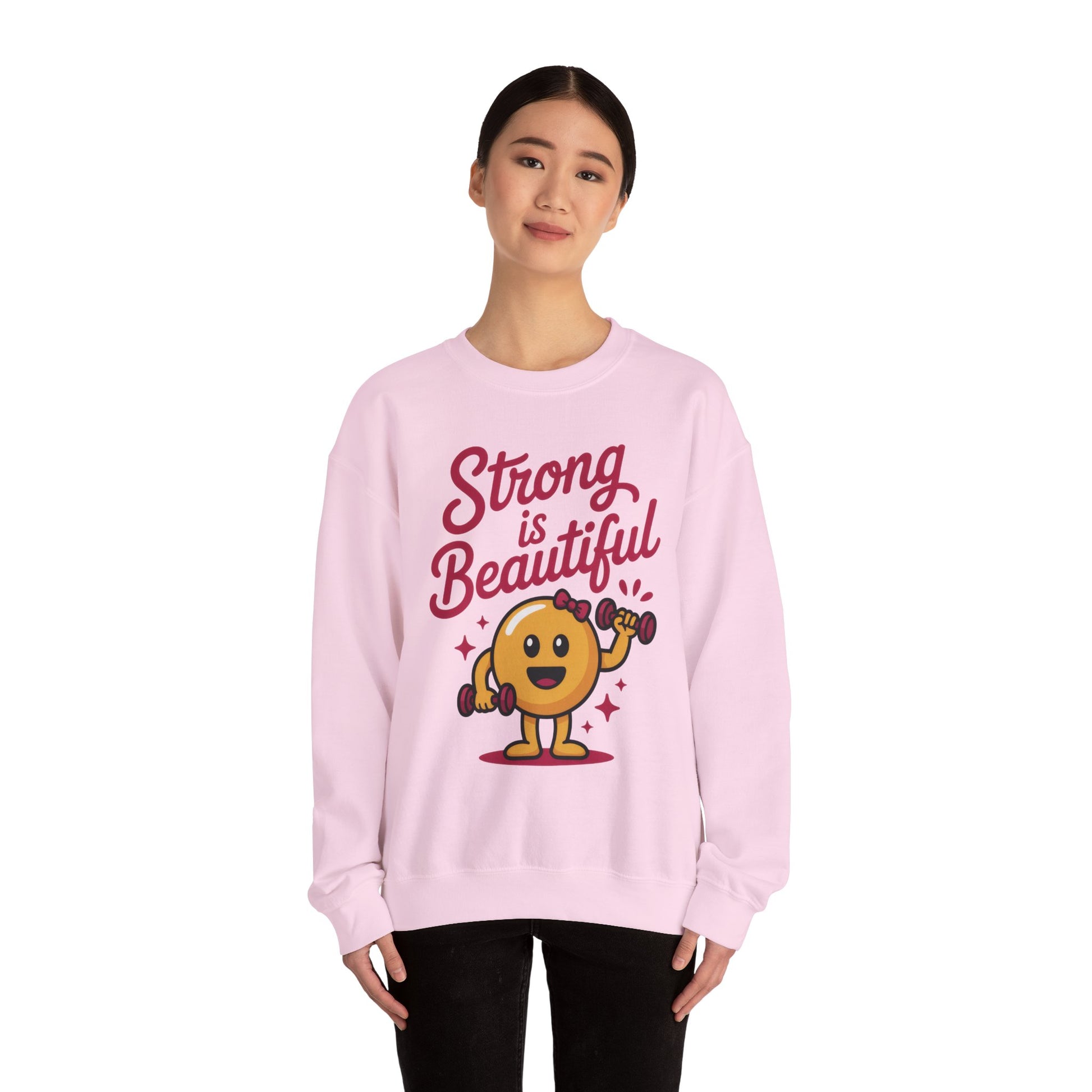 Strong is Beautiful Womens Crewneck Sweatshirt, Cute Fitness Graphic Pullover, Gym and Workout Motivation Sweater, Gift for Fitness Lovers