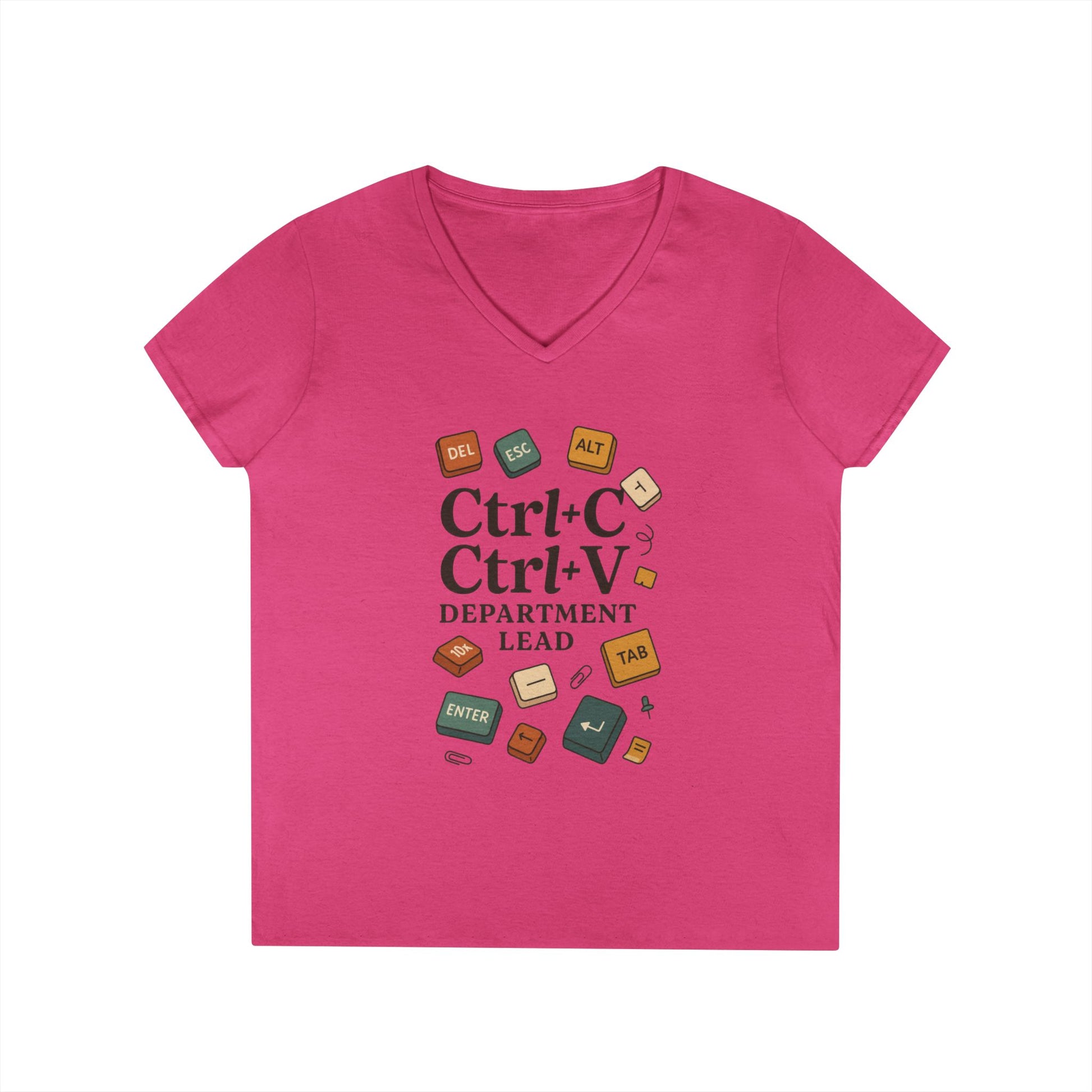 Tech Savvy Ladies' V-Neck T-Shirt, Funny Coding Tee, Programmer Gift, Office Humor Top, CTRL C V Shirt, Work From Home Clothes