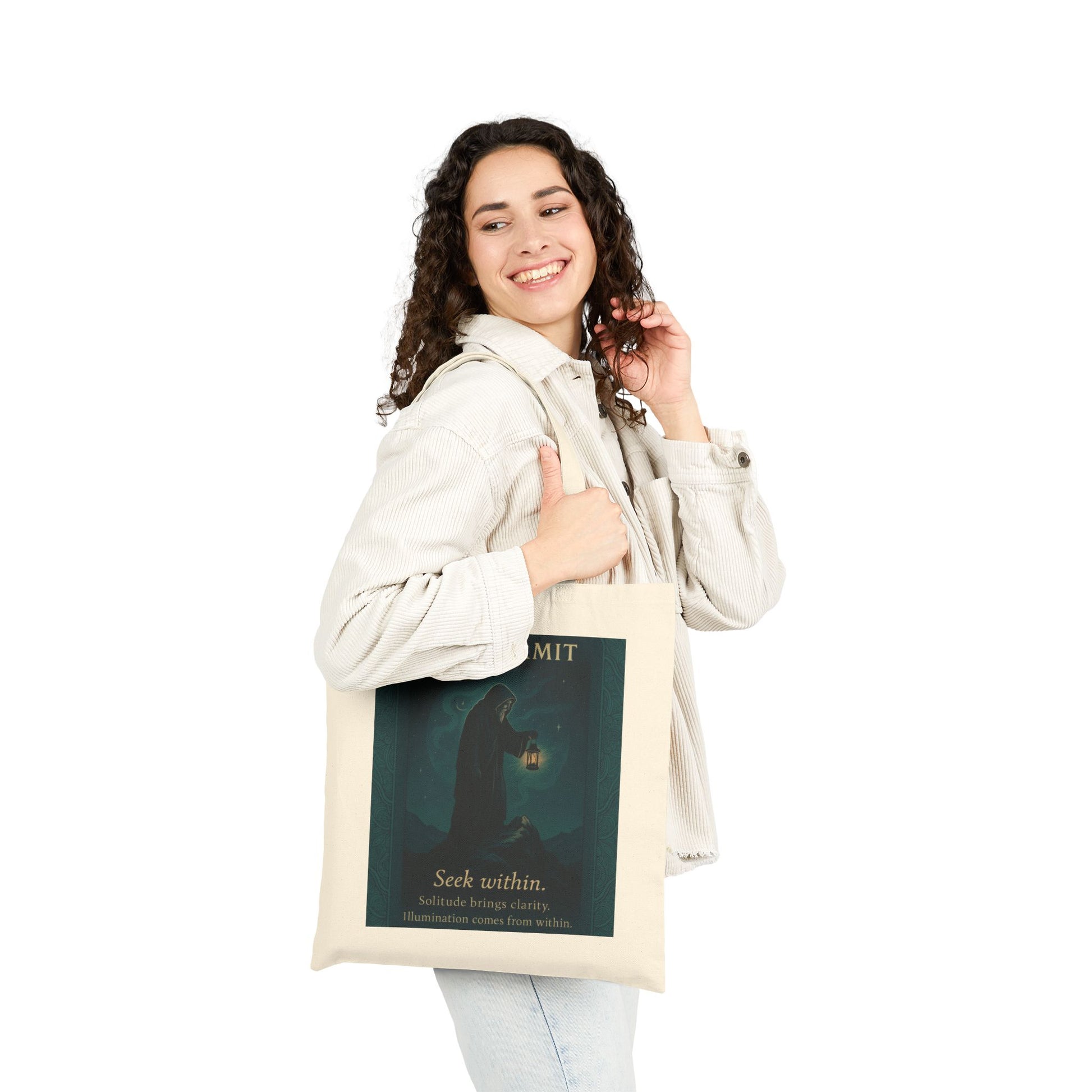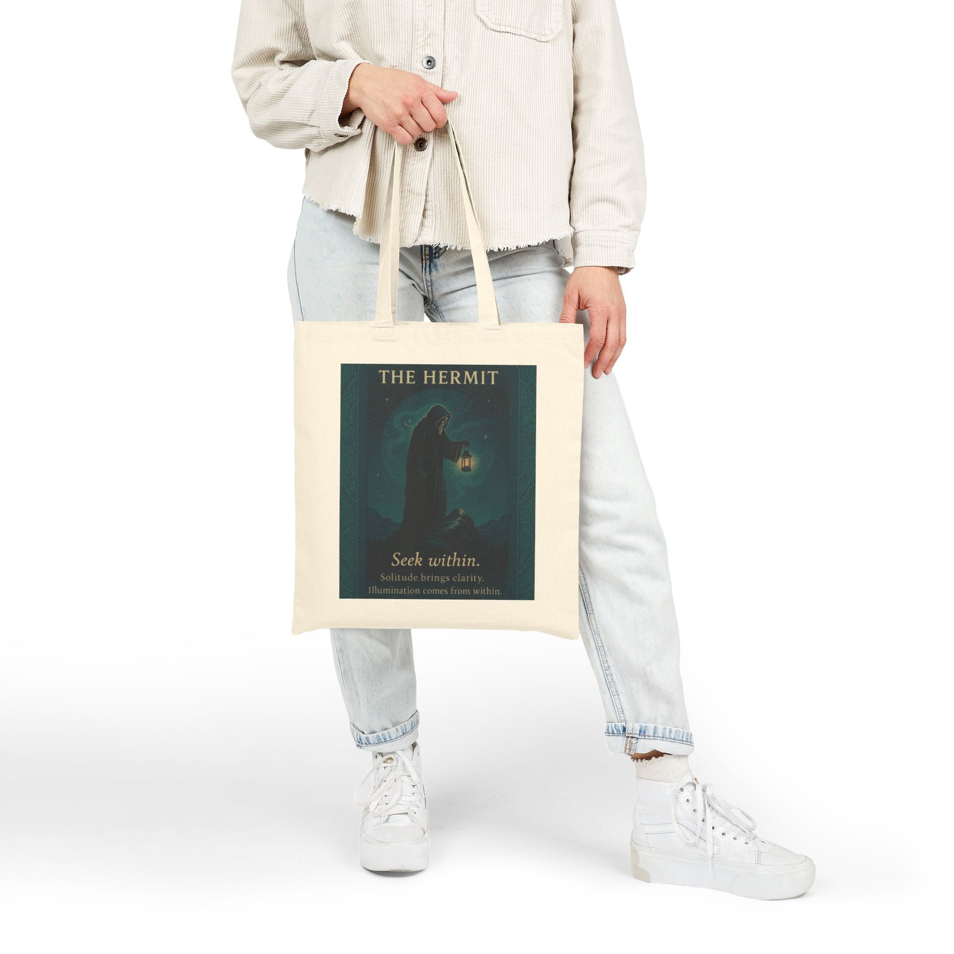 The Hermit Tarot Art Print, Mystical Solitude Illustration, Spiritual Art with Lantern, Seek Within Inspirational Bag, Spiritual Gifts