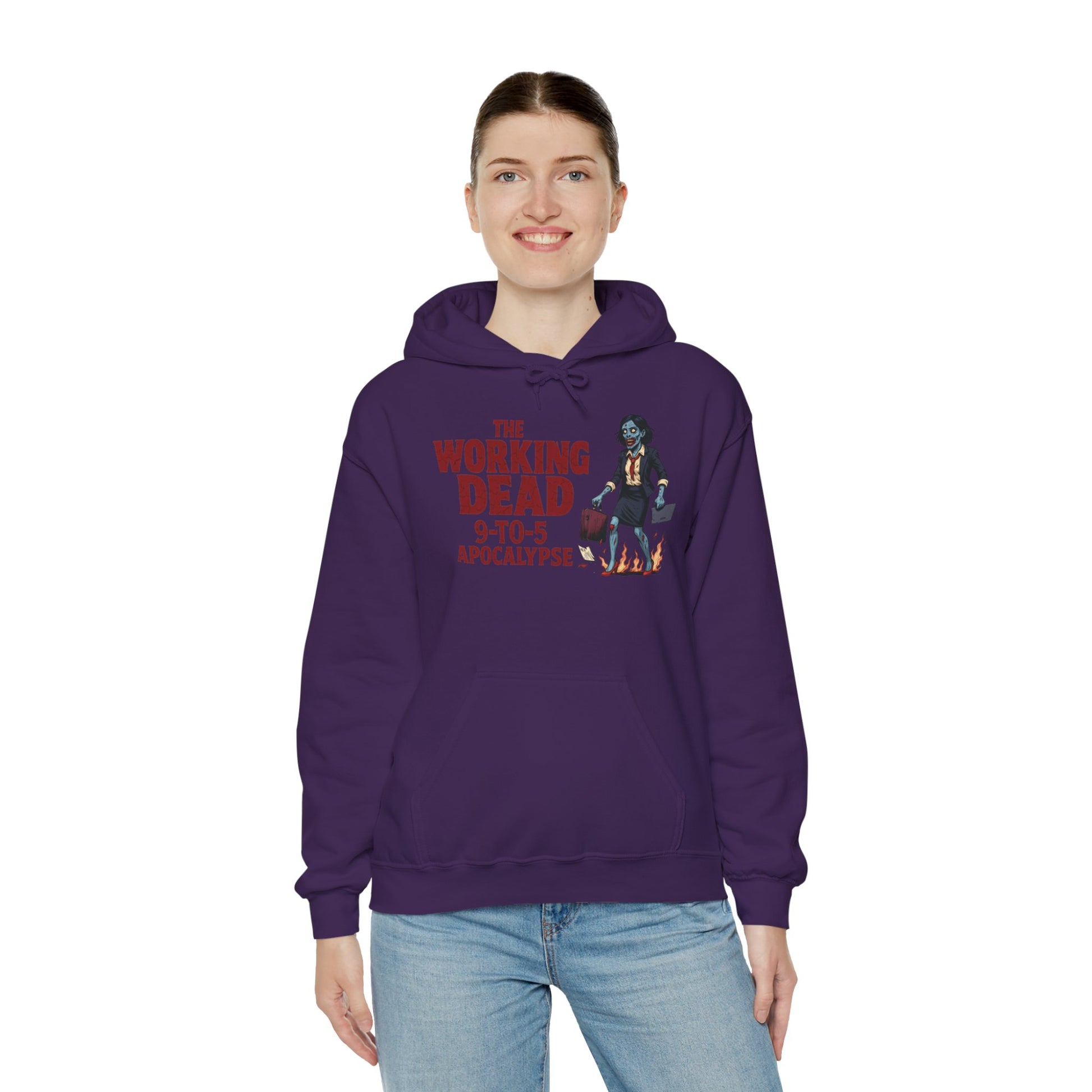 The Working Dead 9-to-5 Apocalypse Hoodie, Women's Horror Office Zombie Sweatshirt, Halloween Zombie Top, Halloween Work Top