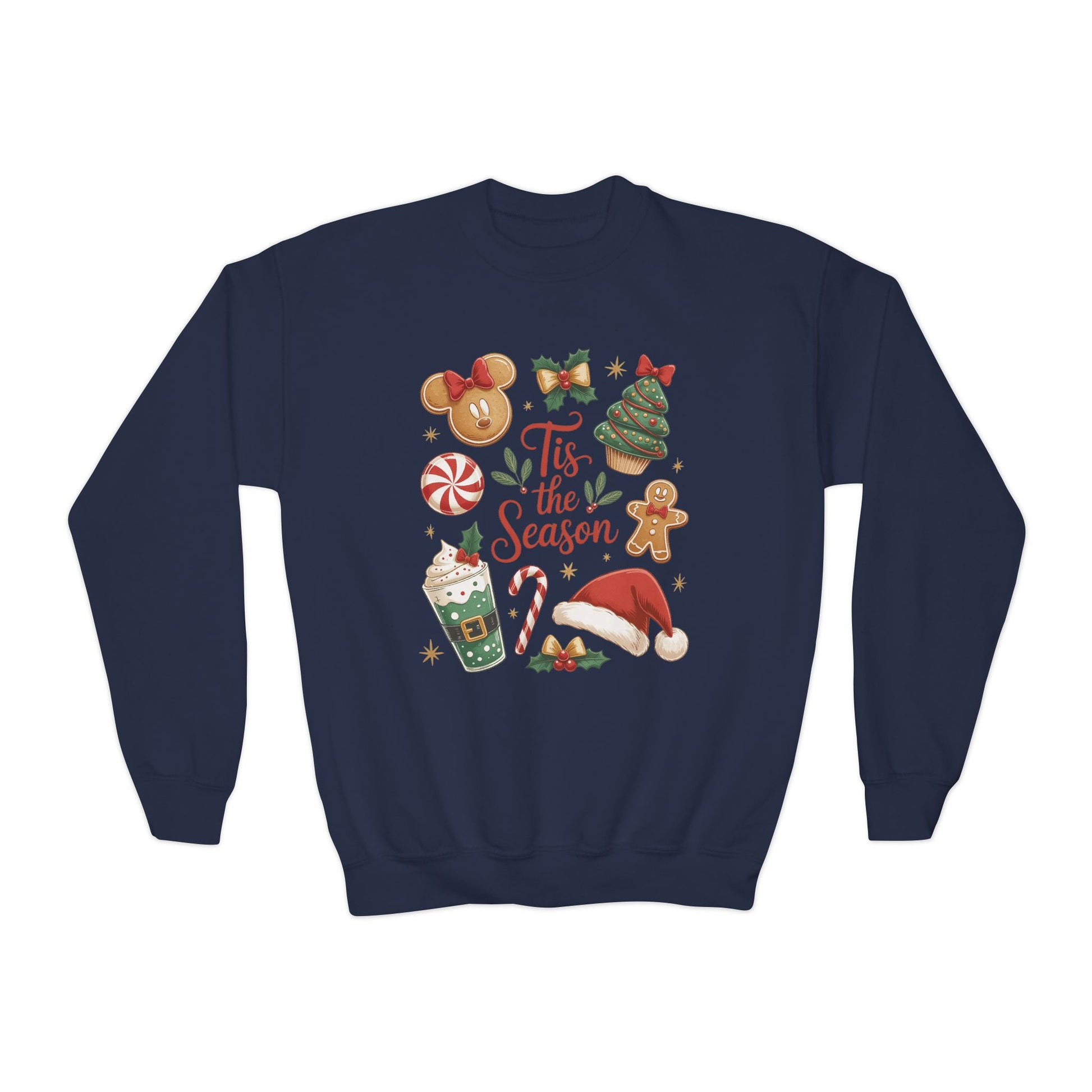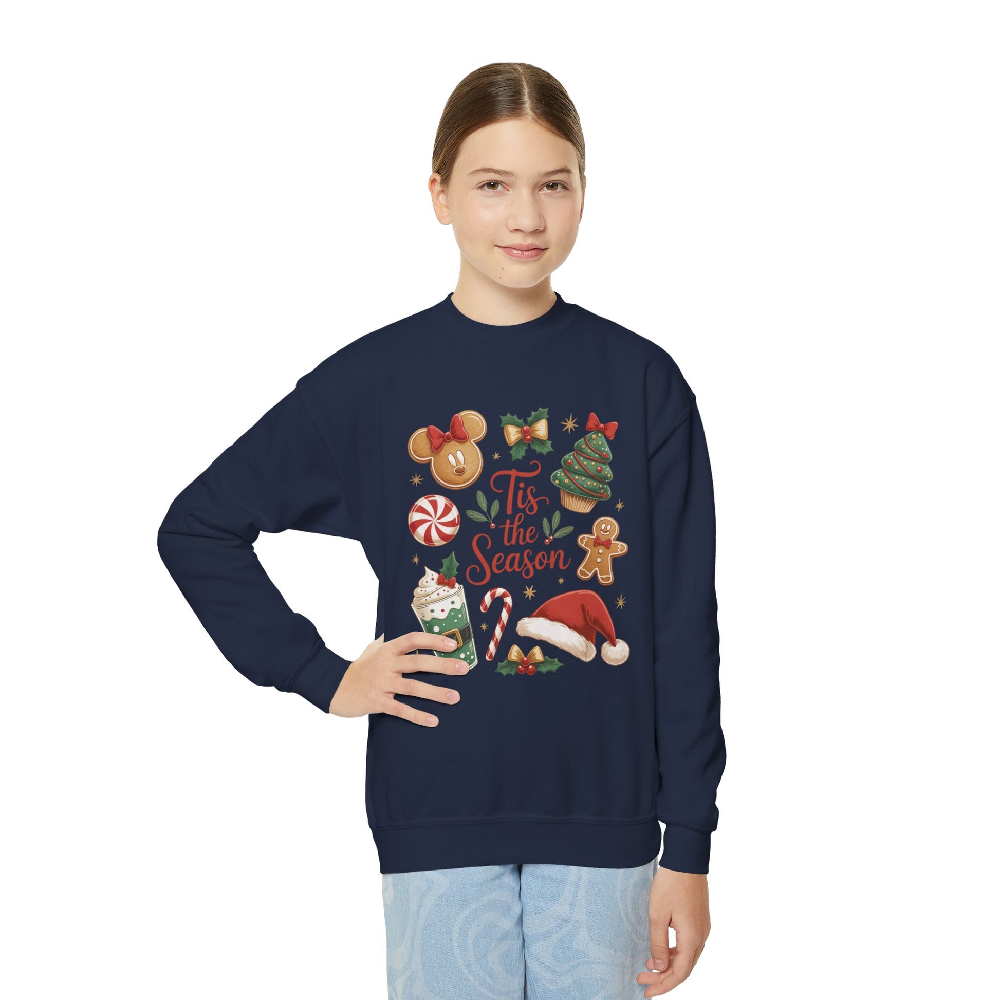Tis the Season Christmas Sweatshirt for Girls, Cozy Holiday Cookie Jumper, Youth Crewneck Sweatshirt