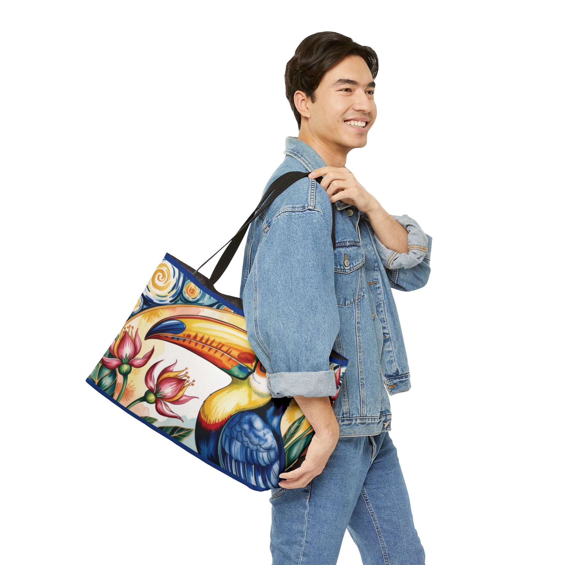 Tropical Toucan Weekender Tote Bag, Vibrant Tropical Weekend Tote with Flowers, Summer Vacation Bag, Large Canvas Bag for Pool & Beach