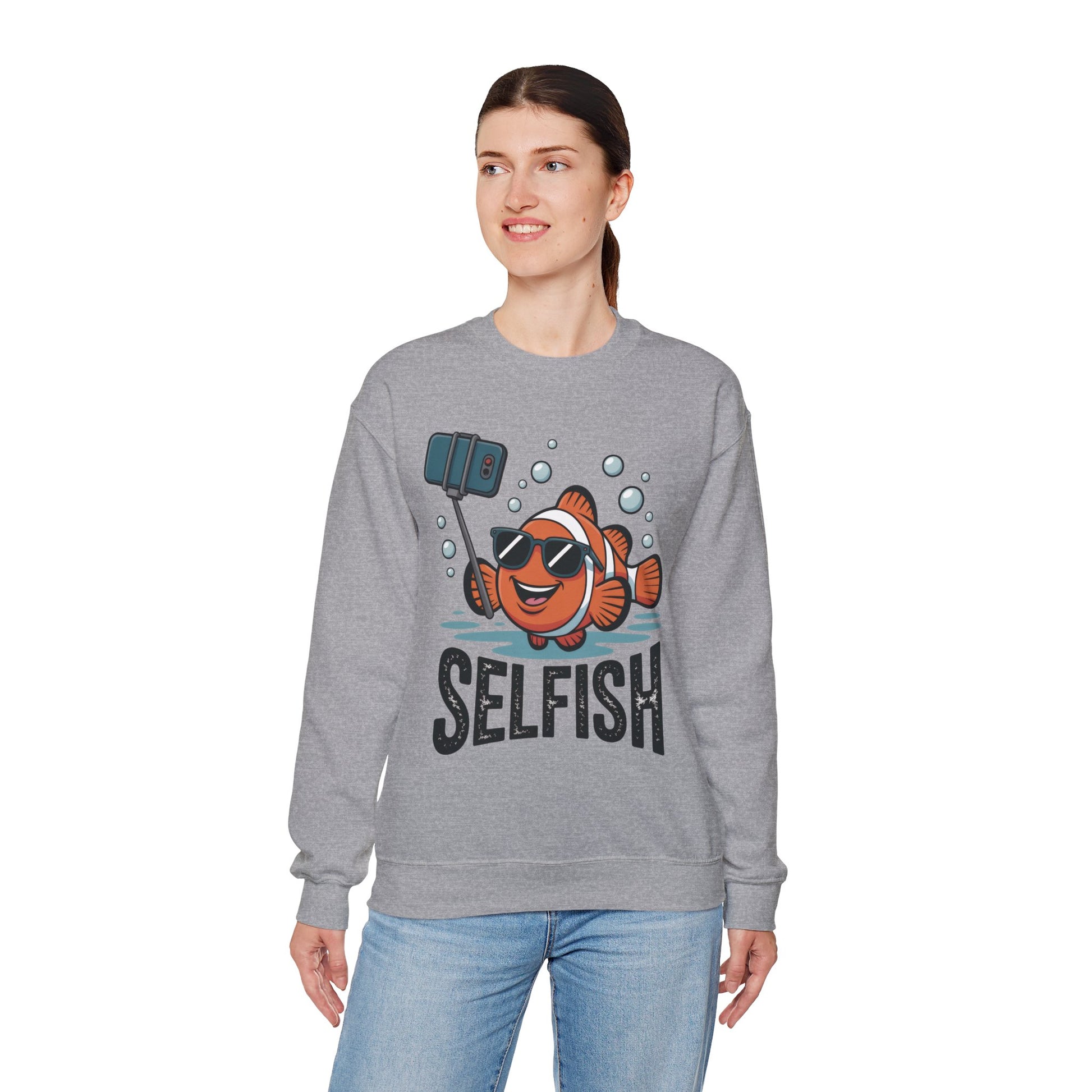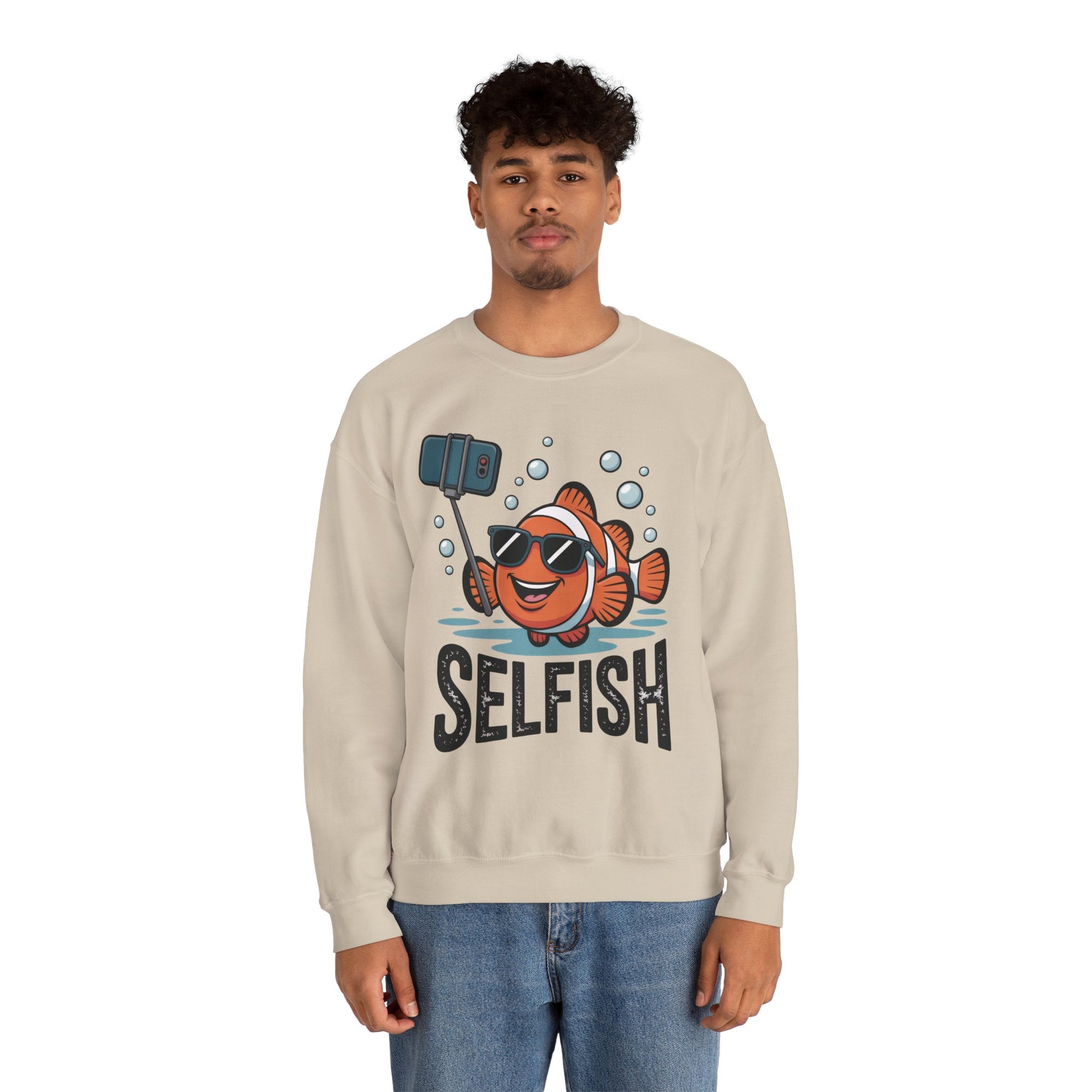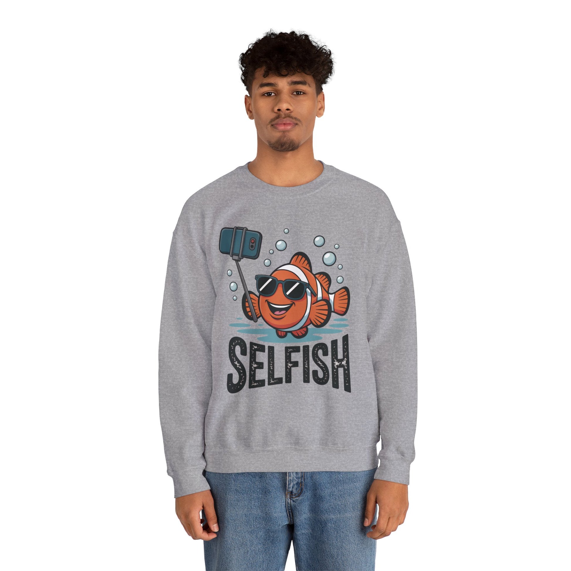 Unisex Heavy Blend™ Crewneck Sweatshirt, Mens Selfish Funny Fish Sweatshirt, Cute Selfie Pullover, Ocean Humor Top
