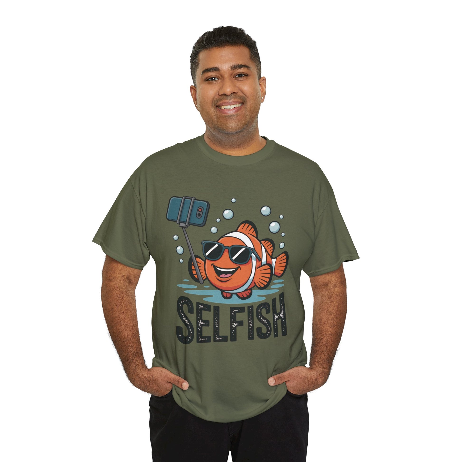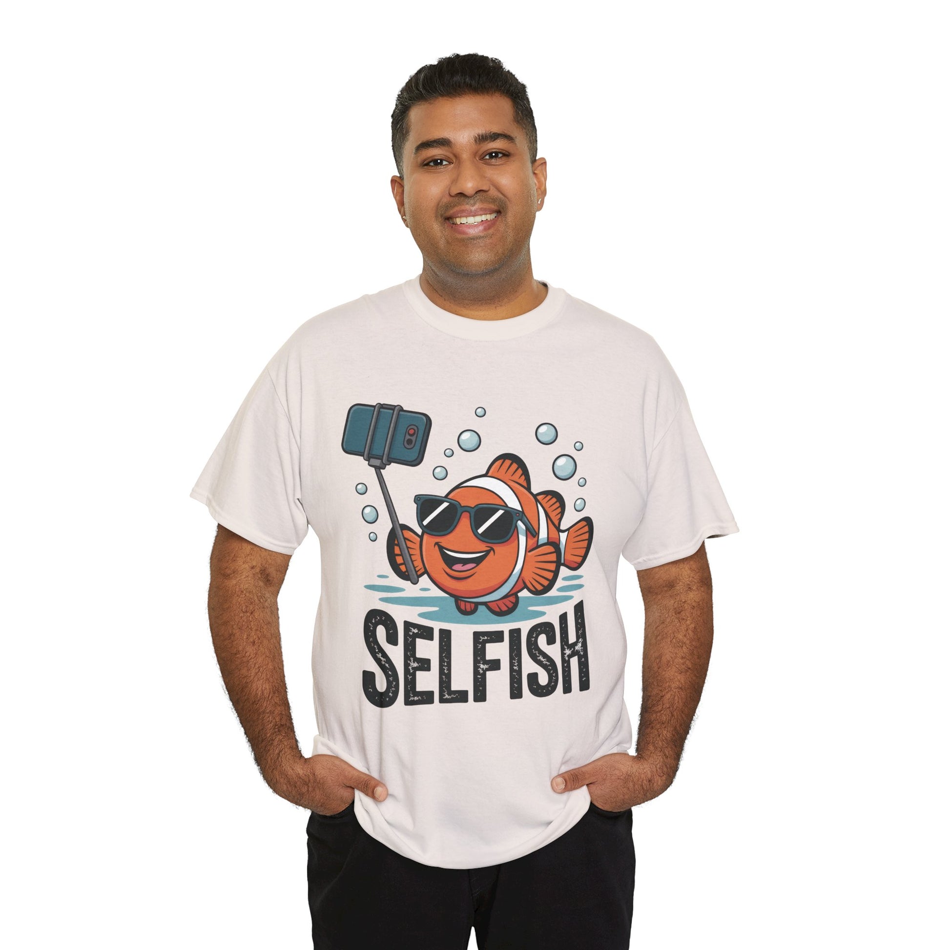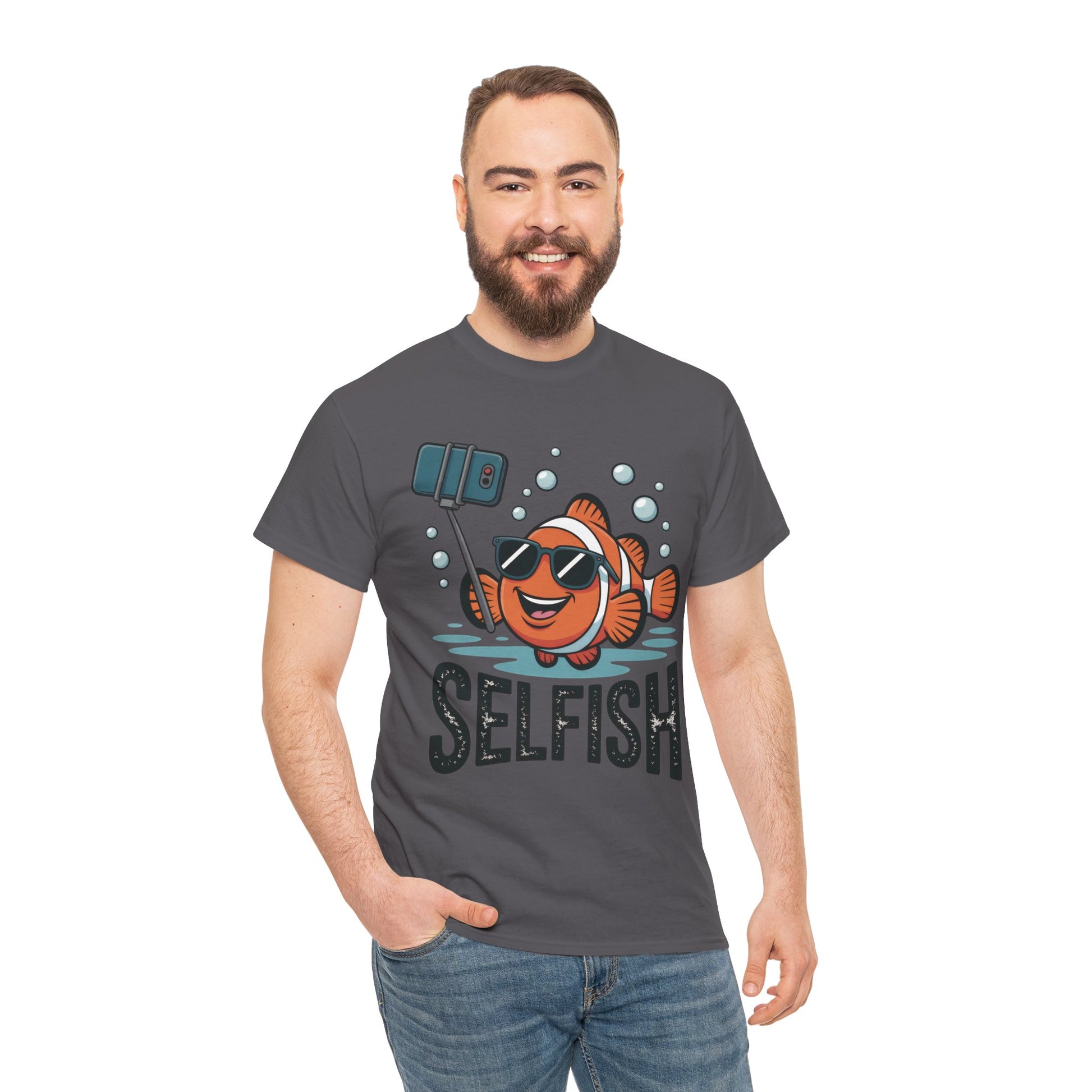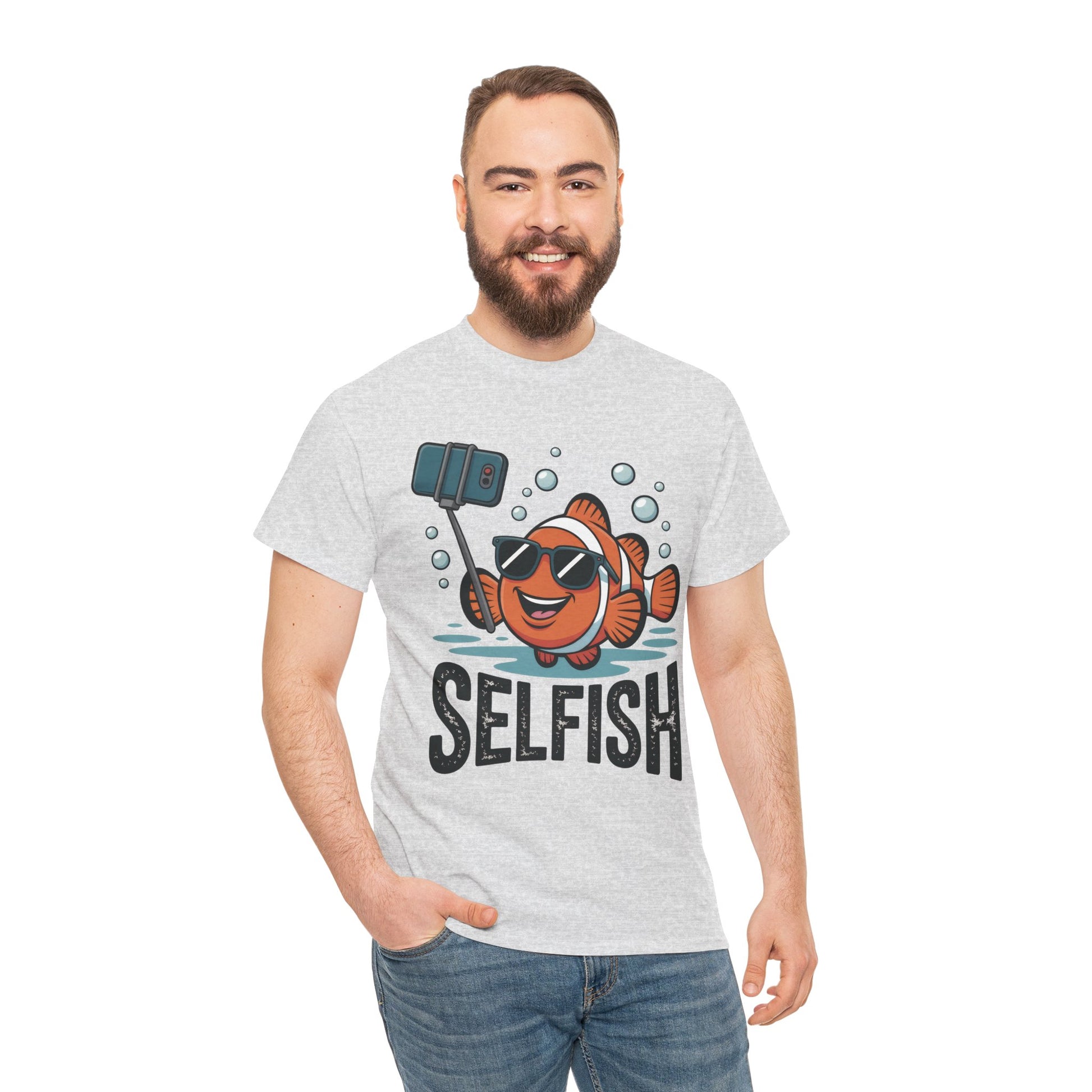 Unisex Heavy Cotton Tee, Mens Selfish Funny Fish T-Shirt, Cute Selfie Graphic Tee, Ocean Humor Shirt