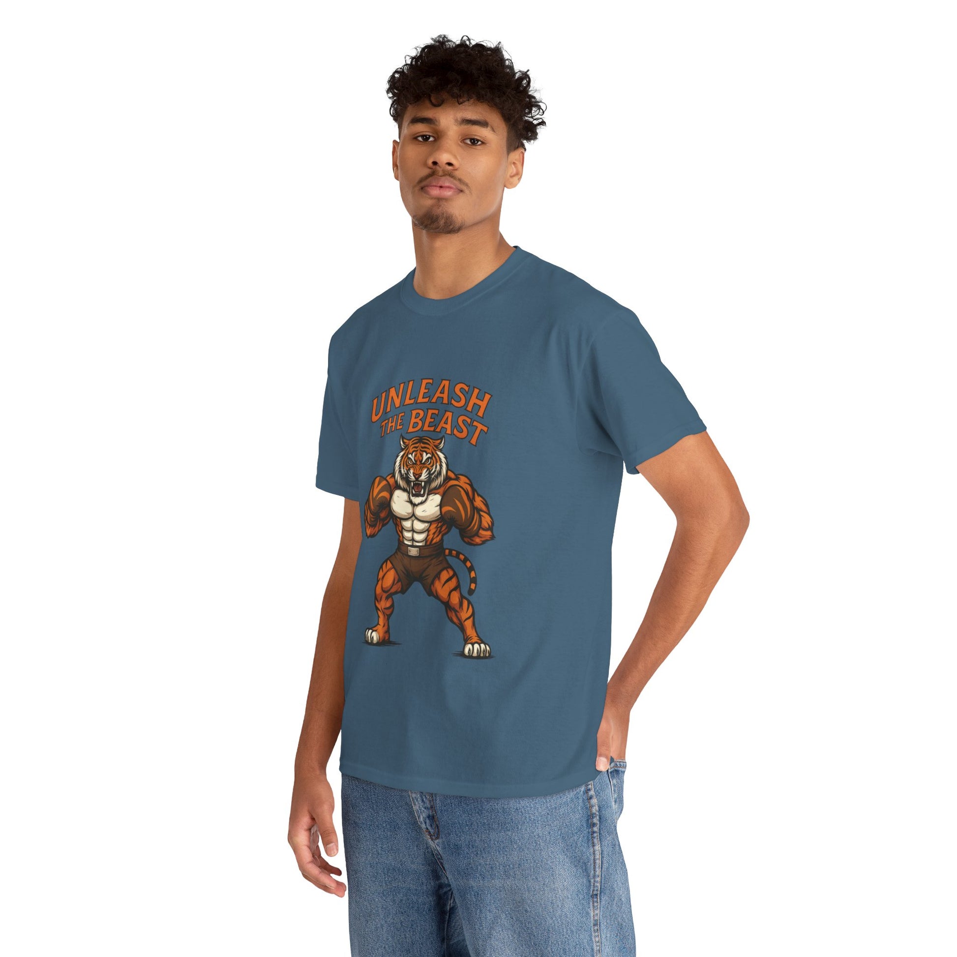 Unleash your inner strength with our Unisex Heavy Cotton Tee, designed for those who dare to stand out. This comfy tee exudes a powerful vibe with its bold design, making it perfect for gym enthusiasts, athletes, or anyone with a fierce spirit. Whether you're at the gym, running errands, or lounging at home, this shirt effortlessly fits into your daily wardrobe, allowing you to showcase your personality and passions. It's ideal for occasions like fitness events, casual hangouts, or just to express your unique style. Treat yourself or gift it to a friend who loves to embrace their wild side! Product features - Shoulder tape for enhanced stability, preventing stretching. - Seamless design reduces waste; creates a sleek aesthetic. - Elastic ribbed collar retains shape for lasting wear. - Made from strong, smooth fabric ideal for vibrant prints. - Ethically sourced cotton ensures quality and sustainability. Care instructions - Non-chlorine: bleach as needed - Do not iron - Do not dryclean - Machine wash: cold (max 30C or 90F) - Tumble dry: low heat