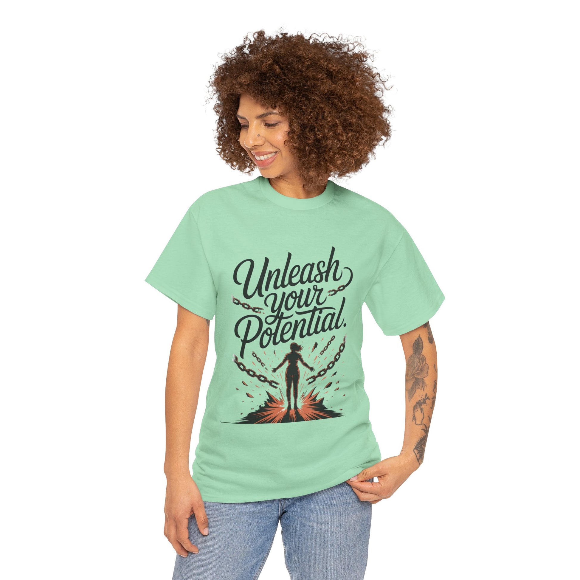 Unleash Your Potential Women's Tee, Motivational T-Shirt, Inspirational Cotton Tee, Gift for Gym Lovers, Positive Energy Top