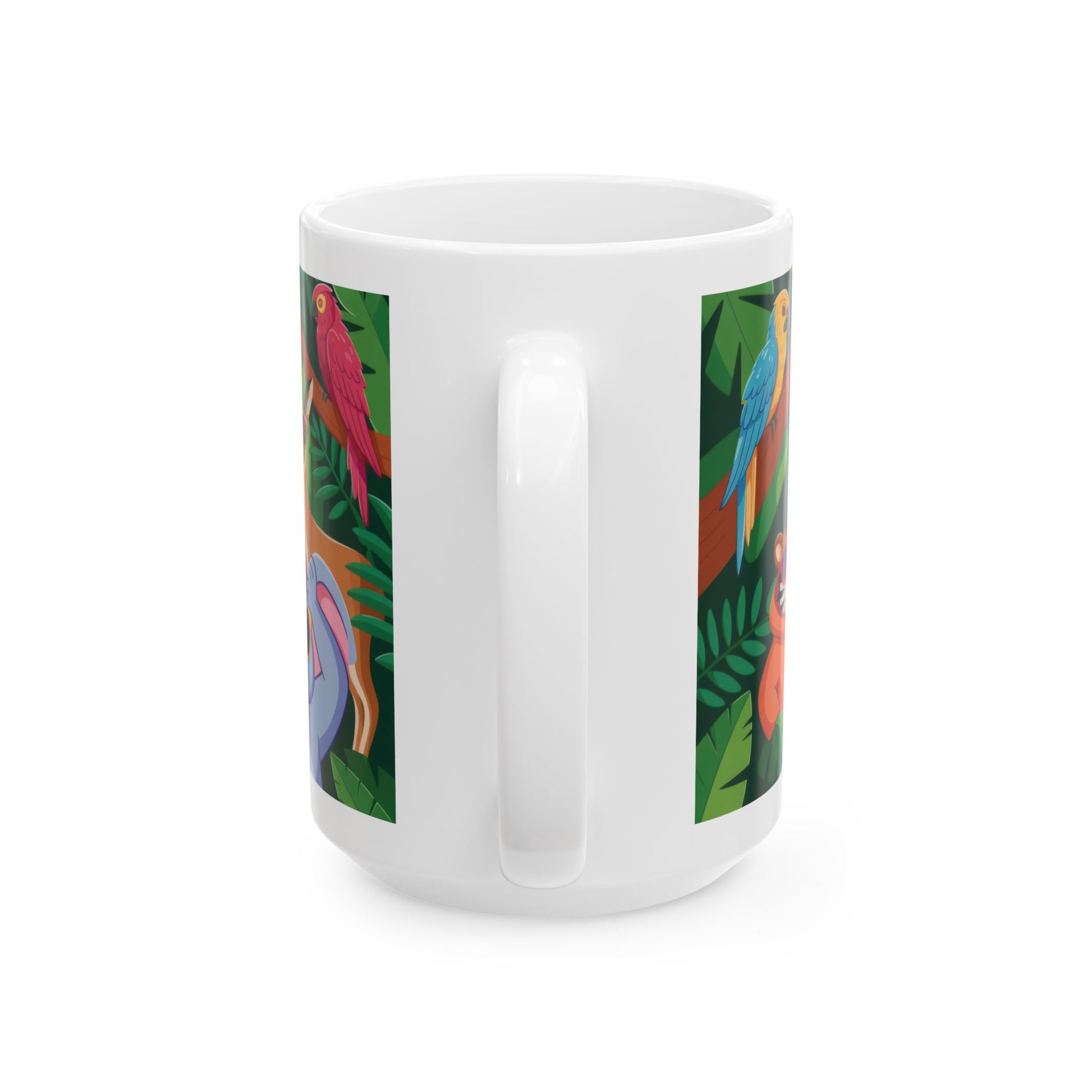 Vibrant Jungle Friends Mug - Fun Drinkware for Animal Lovers, Coffee Tea Mug, Gift for Kids, Birthday Party Favor, Nature Decor