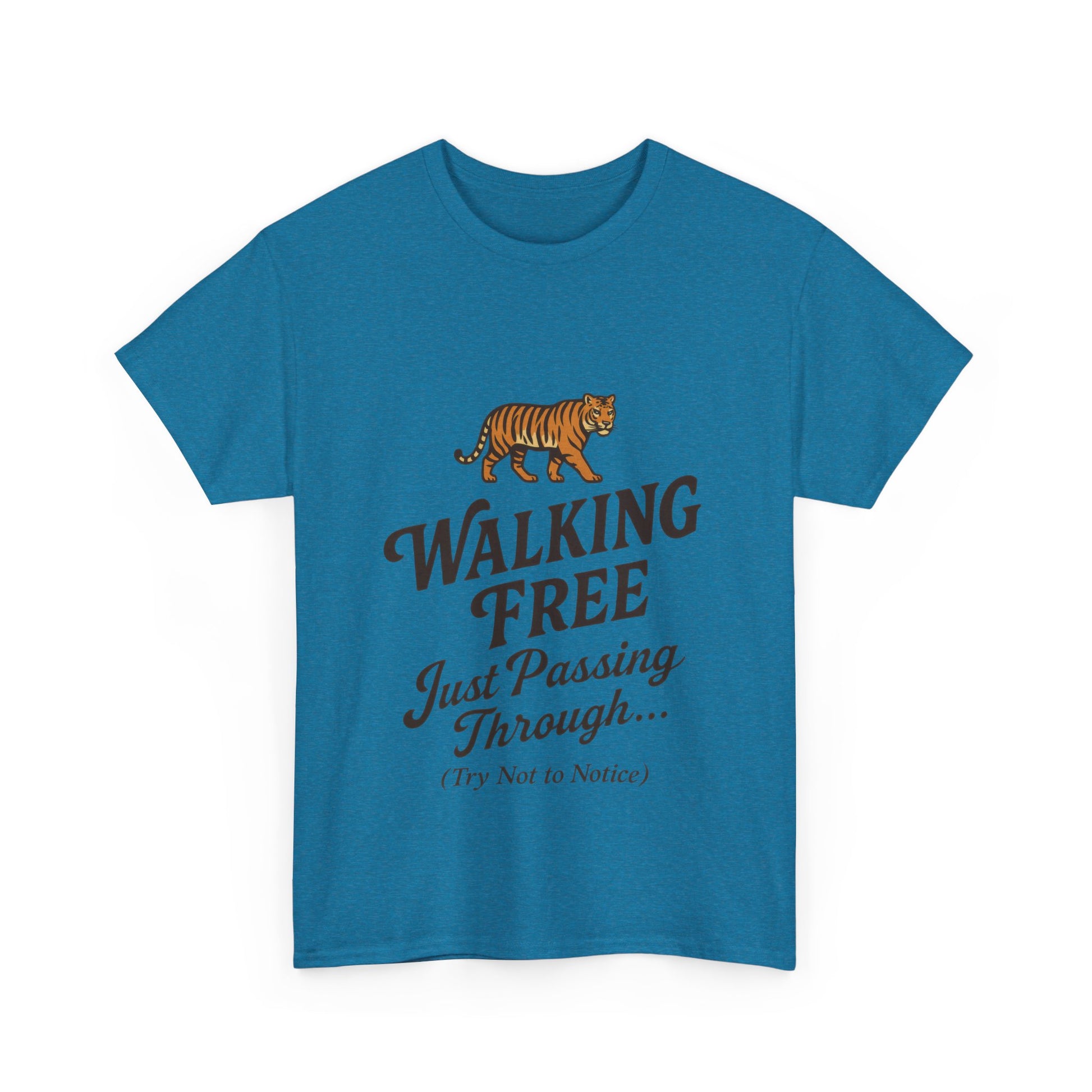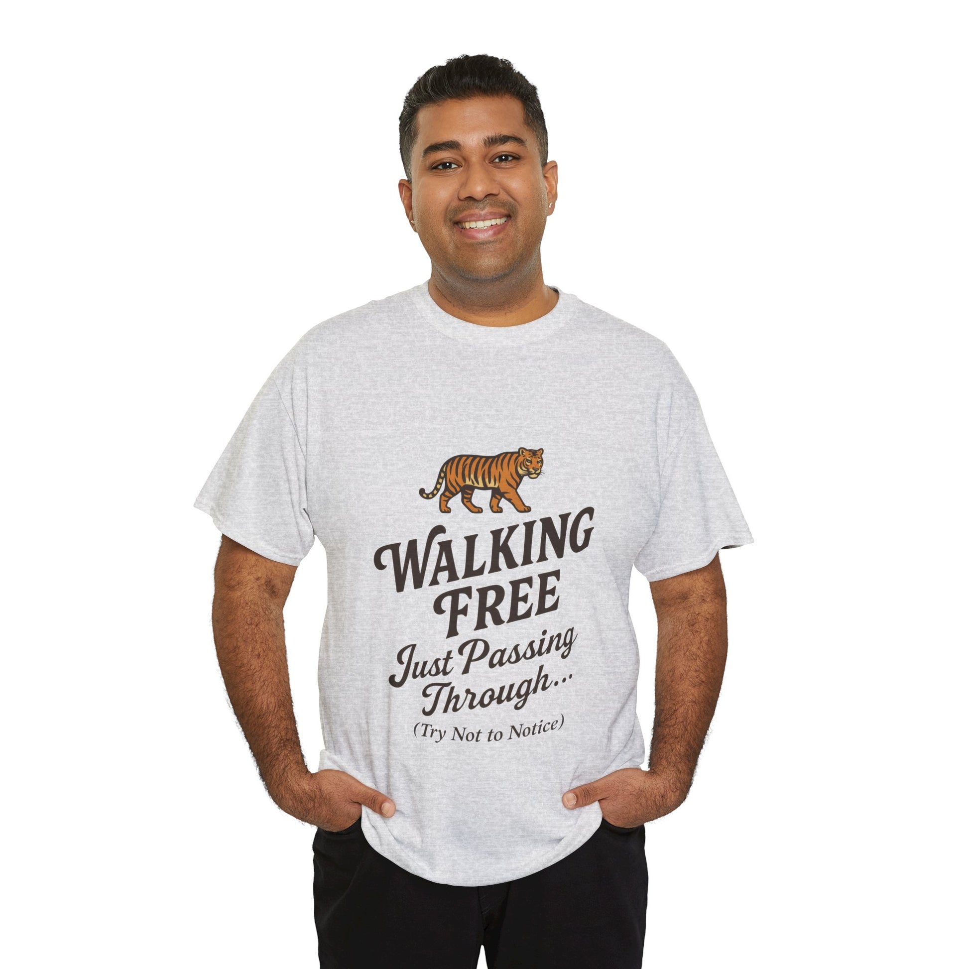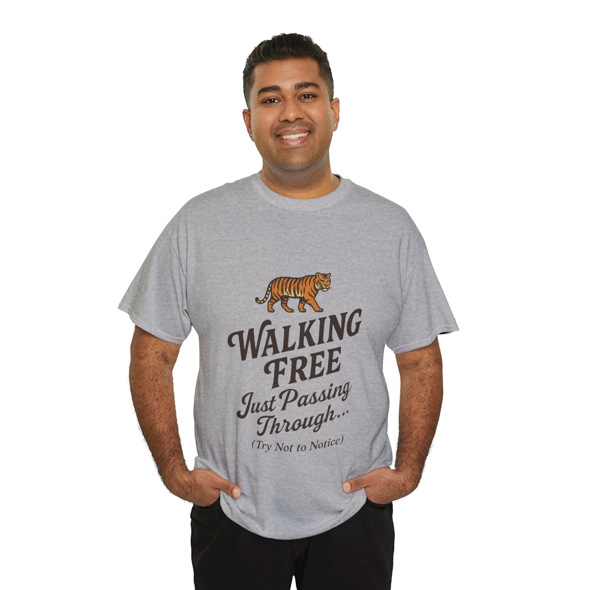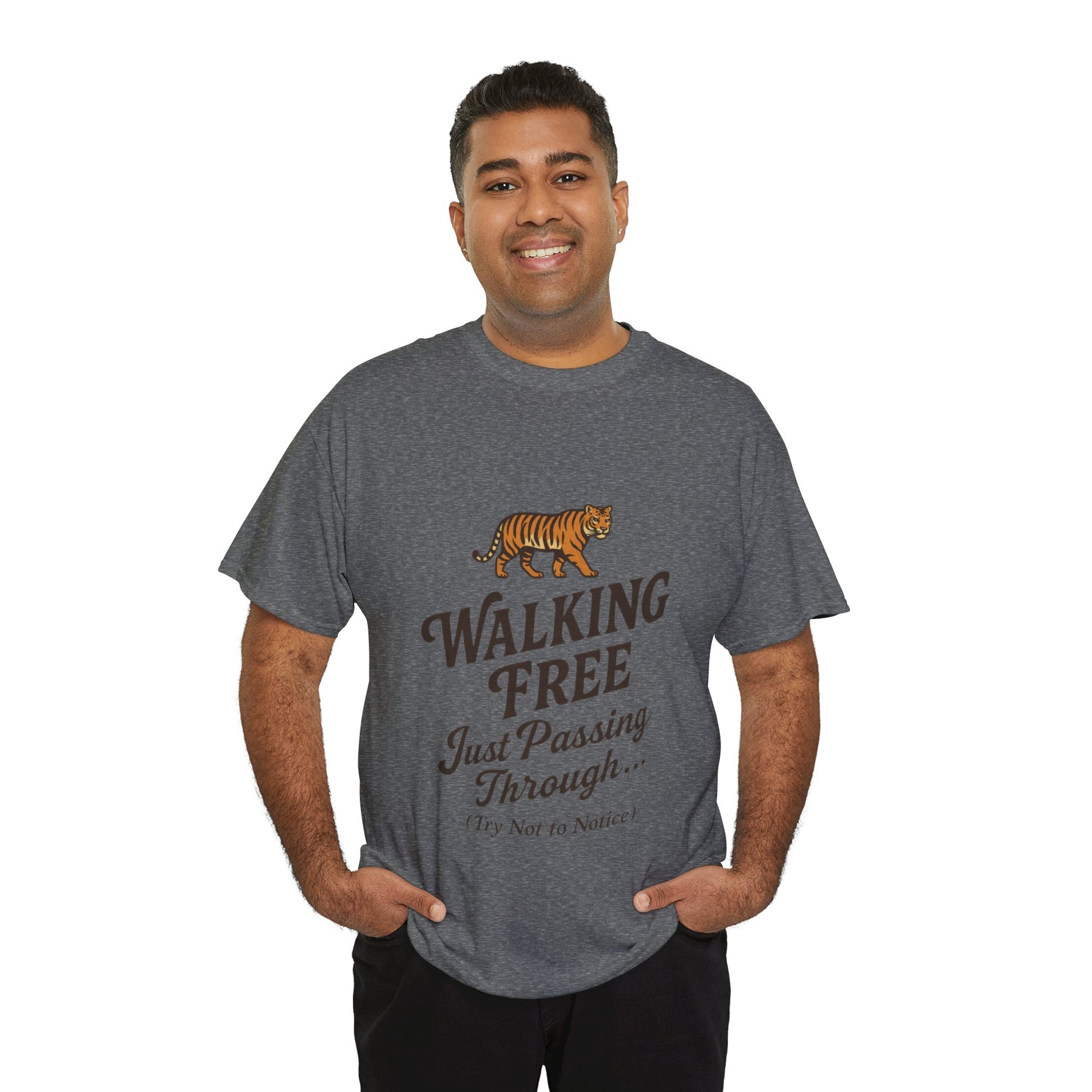 Walking Free Tiger Shirt for Men - Just Passing Through Funny Graphic Tee - Wild Animal Casual Top, Gift Nature Lovers