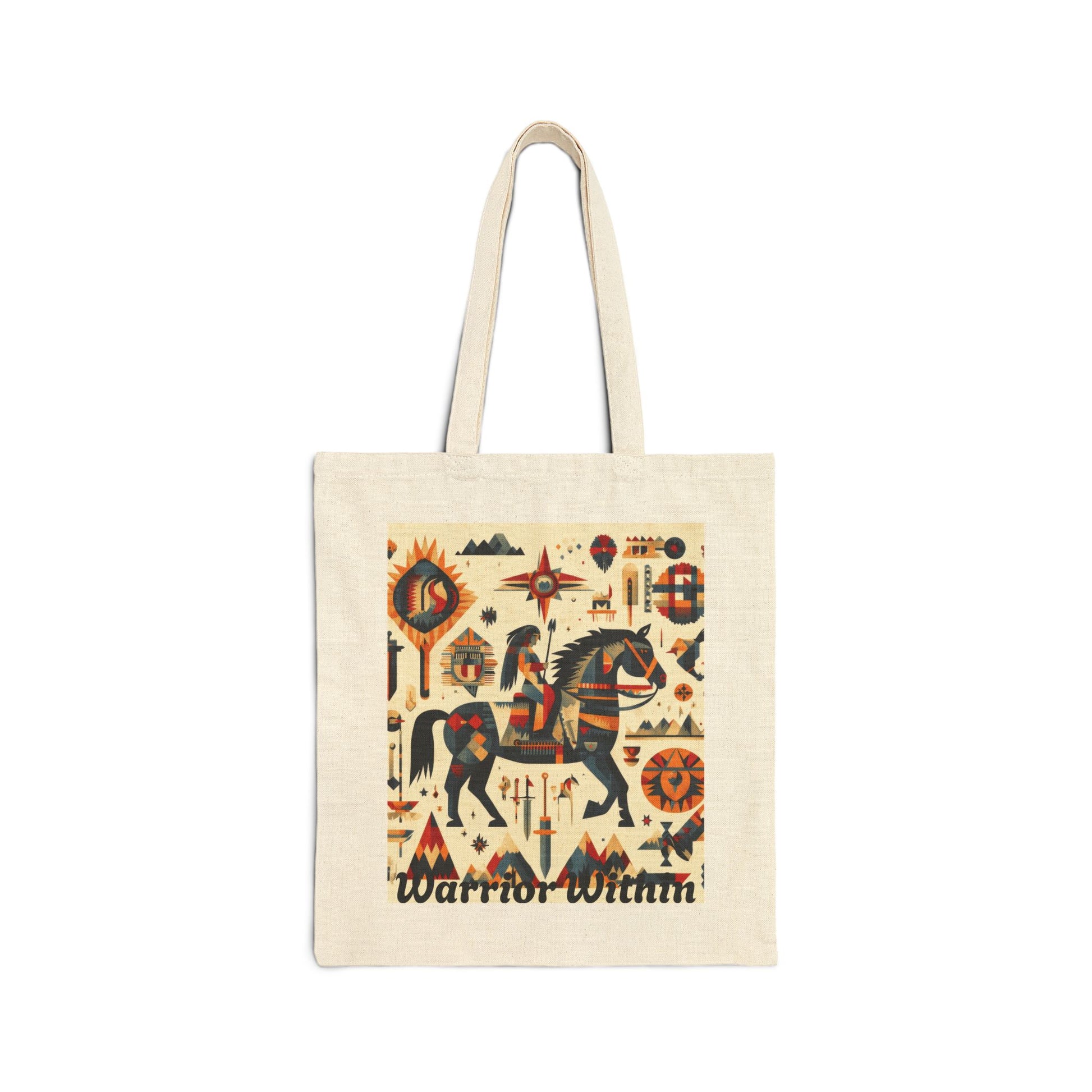 Warrior Within Cotton Canvas Tote Bag, Boho Tote, Eco-Friendly Bag, Gift for Her, Travel Accessory, Art Print Bag