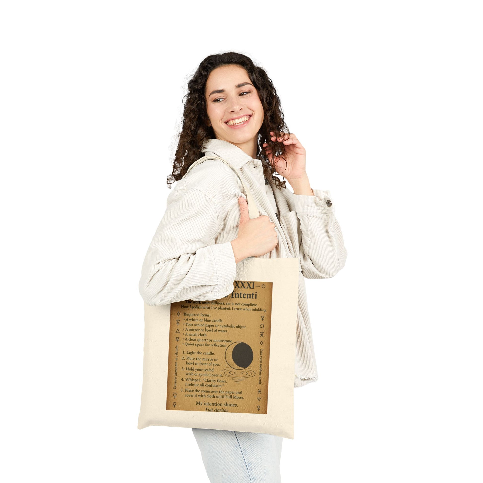 Waxing Gibbous Moon Ritual, Refinement Spell Page Design, Lunar Magic Tote Bag, Spiritual Purity Cotton Canvas Tote Bag