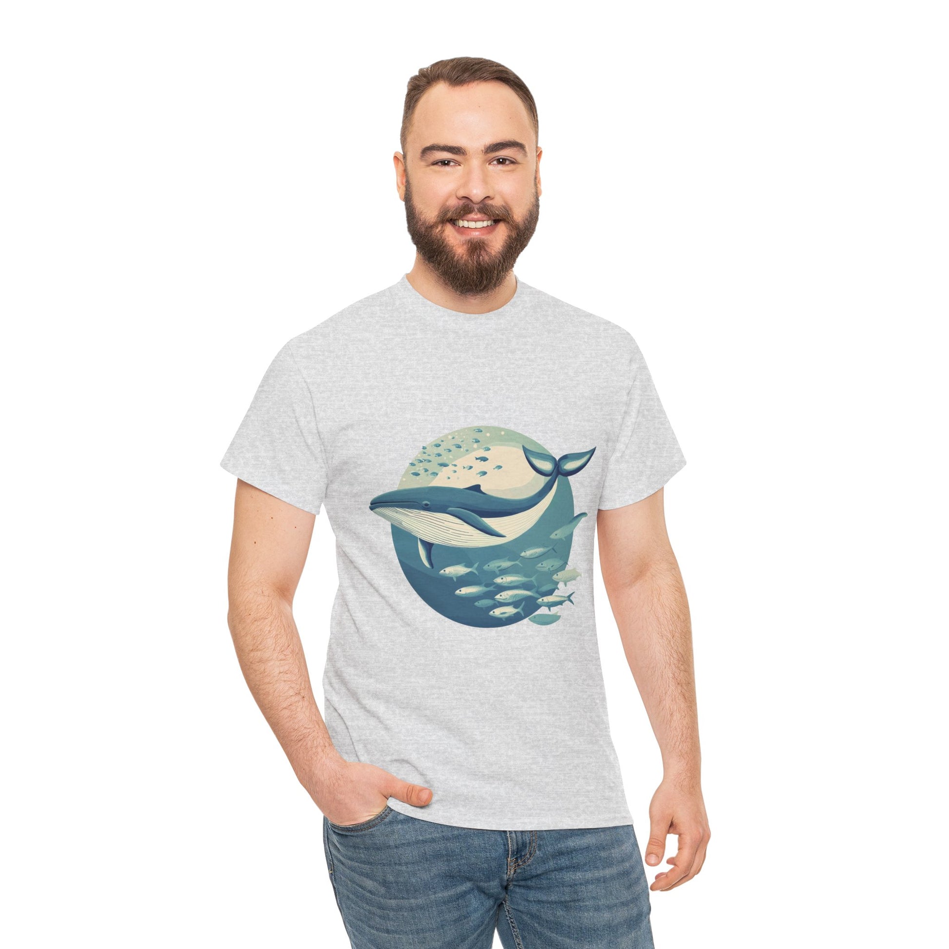 Whale and Fish Unisex Heavy Cotton Tee, Ocean Lover Shirt, Nature Tee, Sea Creature Gift, Casual Summer Top, Ocean Whale Graphic Tee