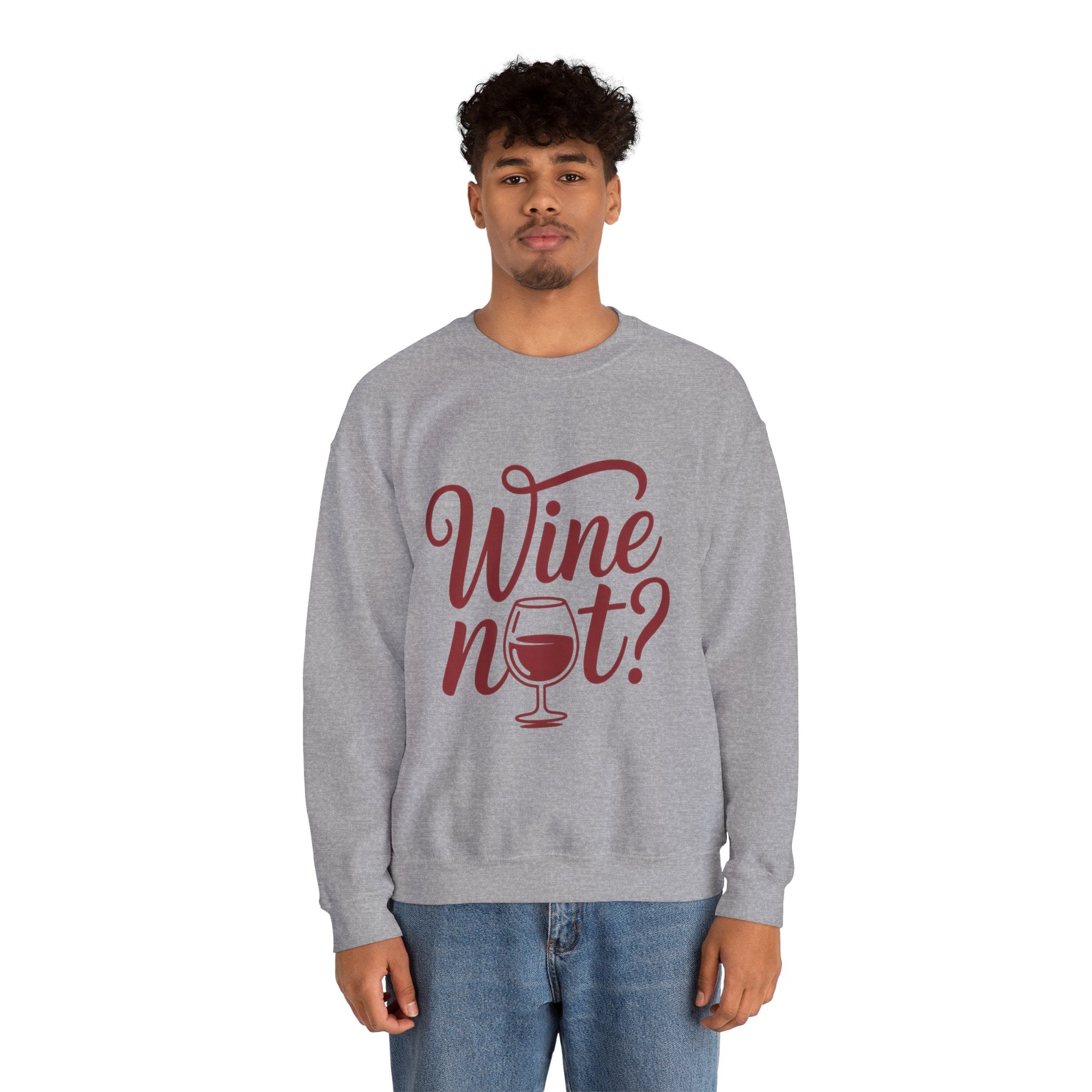 Introducing our cozy Unisex Heavy Blend™ Crewneck Sweatshirt, perfect for wine lovers who want to showcase their personality in style. The playful "Wine Not?" design adds a fun vibe, making it an ideal choice for casual outings or cozy nights in. This sweatshirt fits seamlessly into your wardrobe, ensuring you stay warm and stylish during colder months. It's perfect for gatherings with friends, cozy date nights, or simply lounging at home. Great for adults who appreciate a touch of humor in their attire, this sweatshirt makes for a thoughtful gift during holidays, birthdays, or housewarming celebrations. Enjoy the comfort and ease of this versatile piece, whether you’re at a wine tasting event or simply relaxing with a glass at home. Product features - Made from a medium-heavy blend of 50% cotton and 50% polyester, ensuring warmth and comfort. - Ribbed knit collar retains shape and provides a snug fit. - Embroidery options for personalization on left or center chest. - Durable double-needle stitching for long-lasting wear. - Ethically produced with 100% US-grown cotton and low environmental impact dyes. Care instructions - Machine wash: cold (max 30C or 90F) - Non-chlorine: bleach as needed - Tumble dry: low heat - Do not iron - Do not dryclean