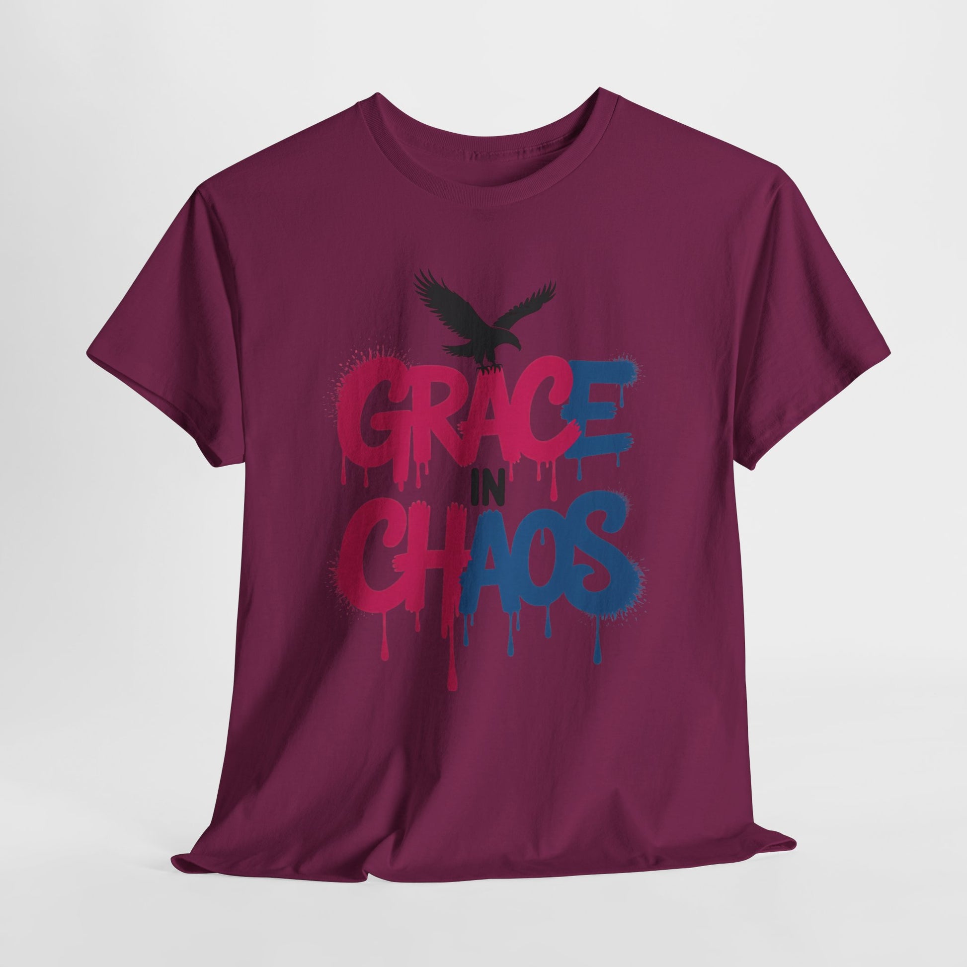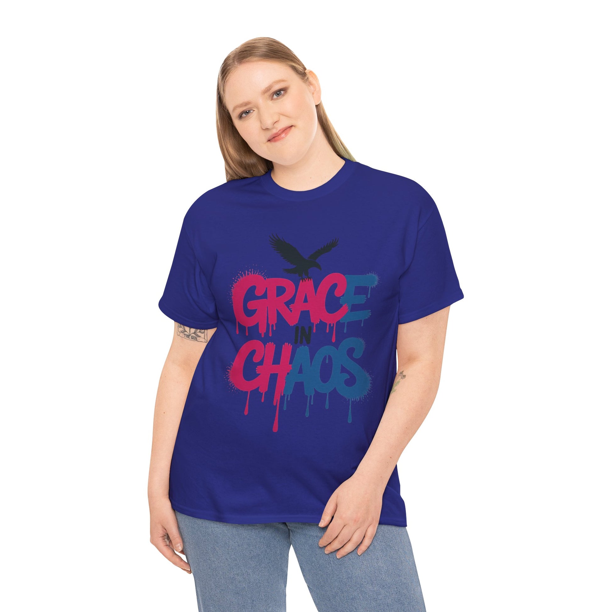 Womens Graffiti T-Shirt, Grace in Chaos Dripping Street Art Tee, Bold Urban Graphic Shirt