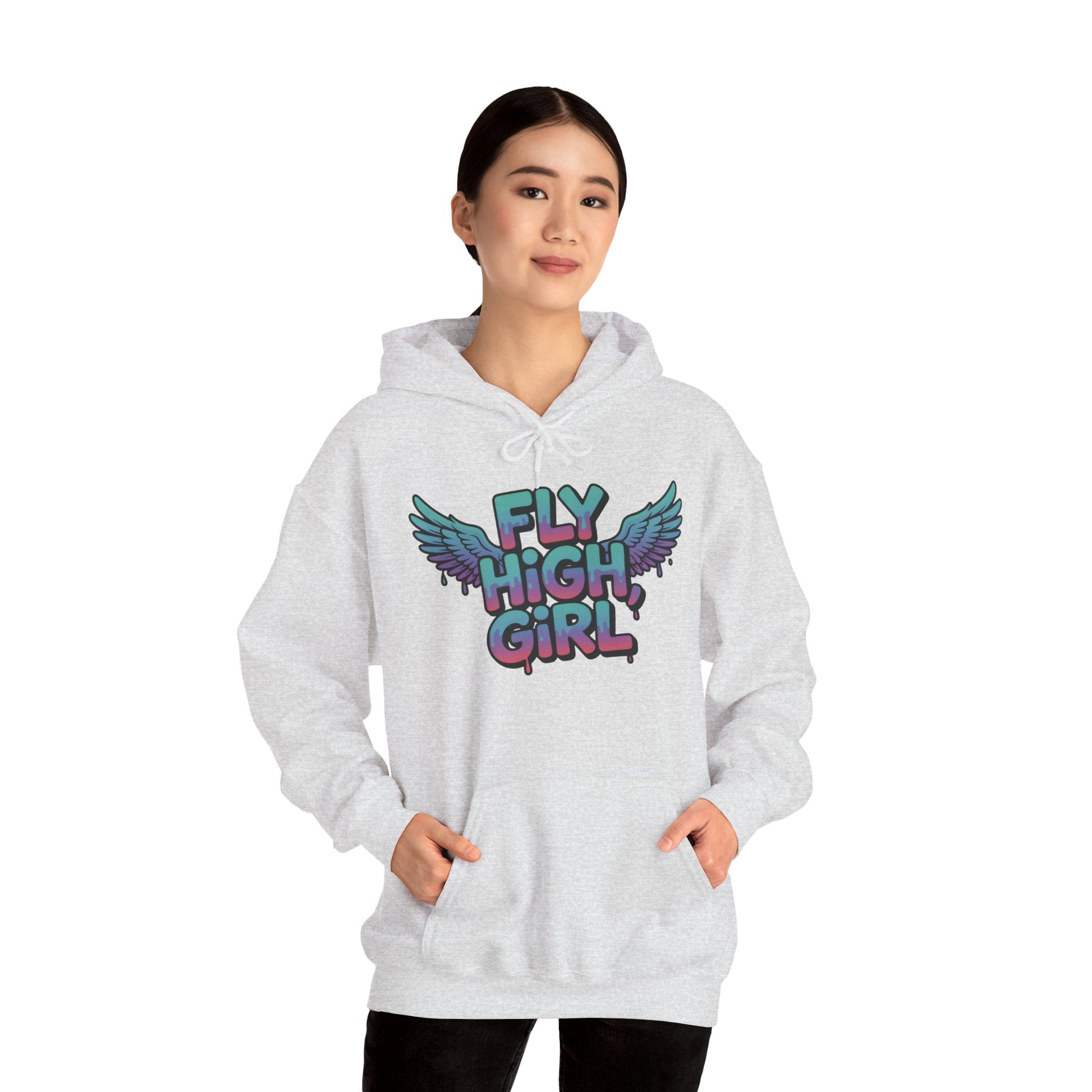 Women's Hoodie Fly High Girl, Angel Wings Graffiti Drip Graphic Pullover, Streetwear Hoodie