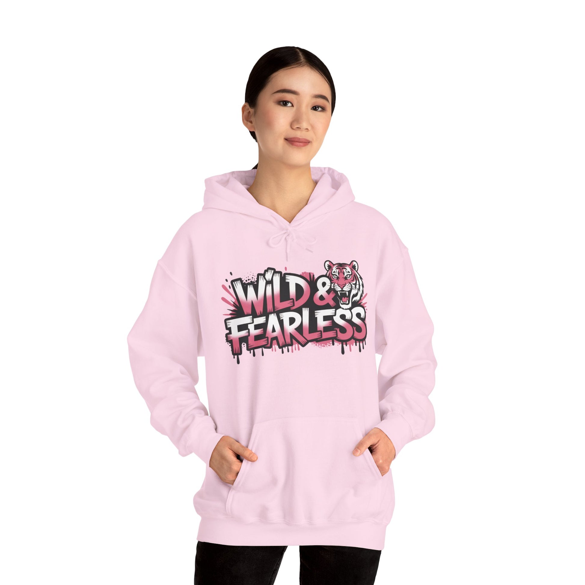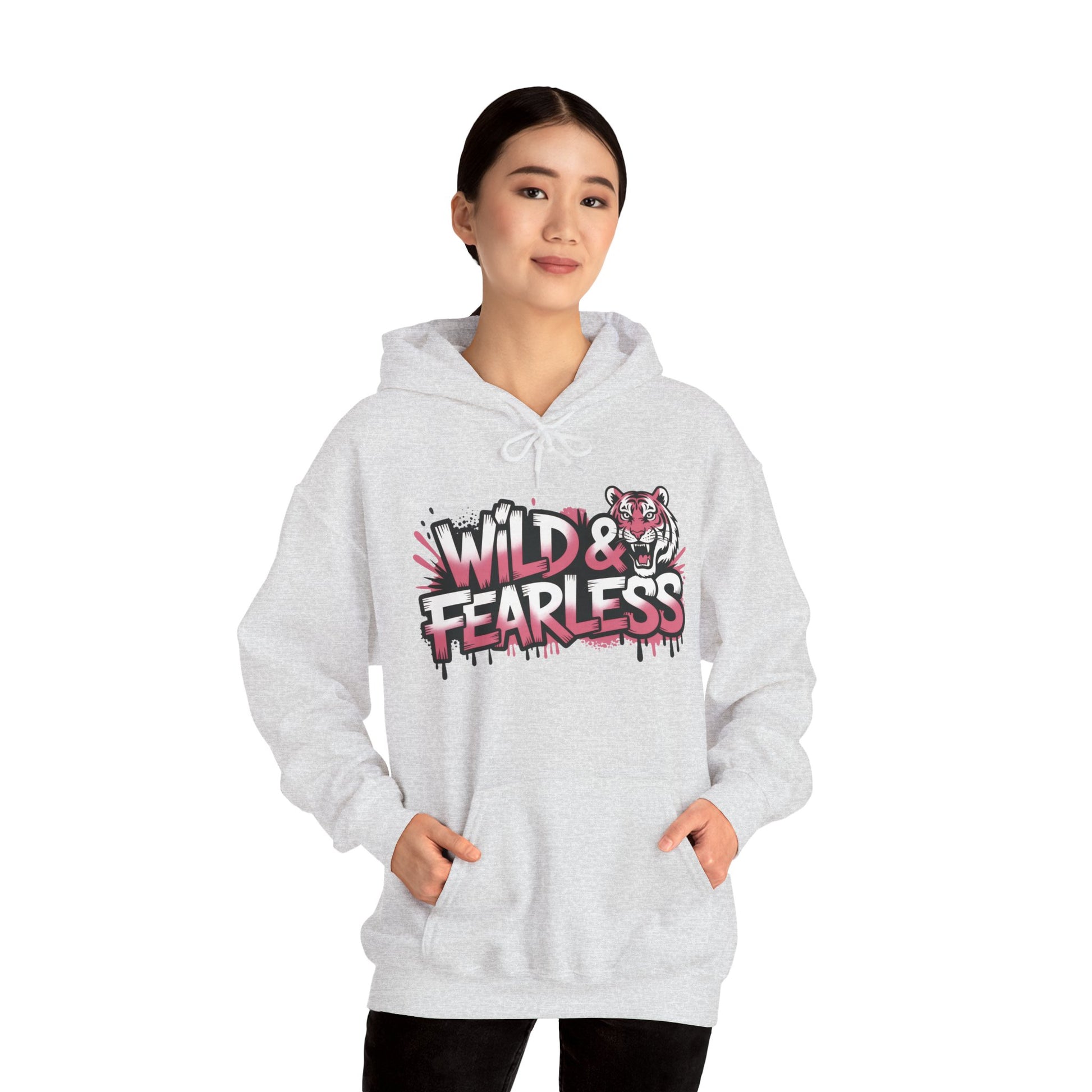 Women's Hoodie Wild & Fearless, Tiger Graffiti Graphic Pullover, Bold Urban Streetwear Hoodie