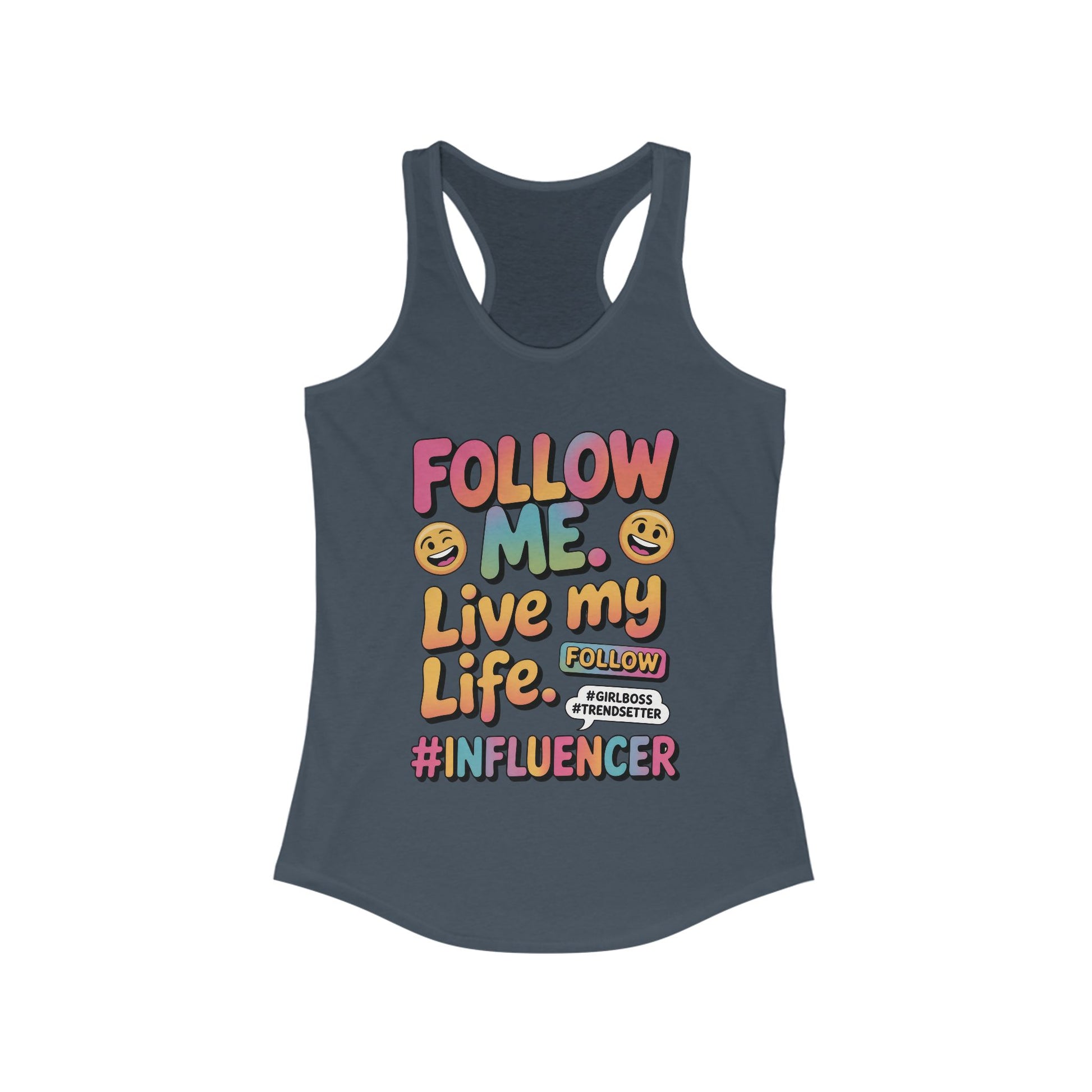 Womens Ideal Racerback Tank, Funny Influencer Tank Top, Follow Me Live My Life Graphic Top, Trendsetter Summer Wear, GirlBoss Tank