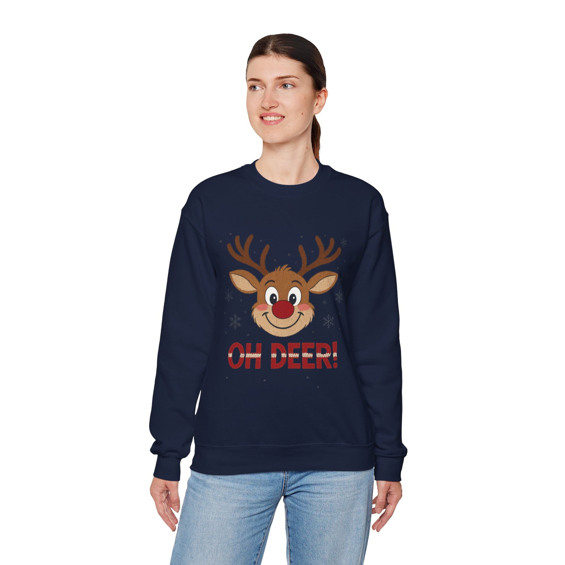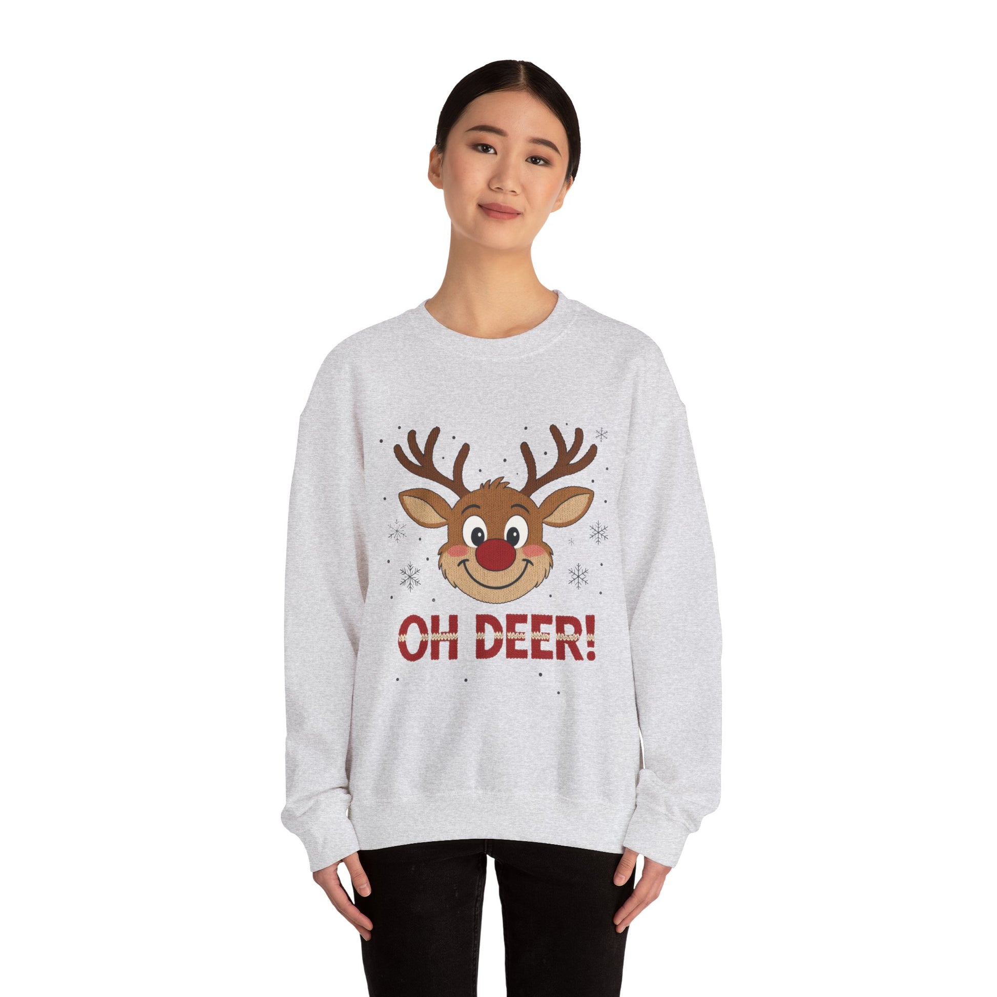 Womens Oh Deer Christmas Sweatshirt, Cute Reindeer Holiday Pullover, Women's Crewneck Sweatshirt