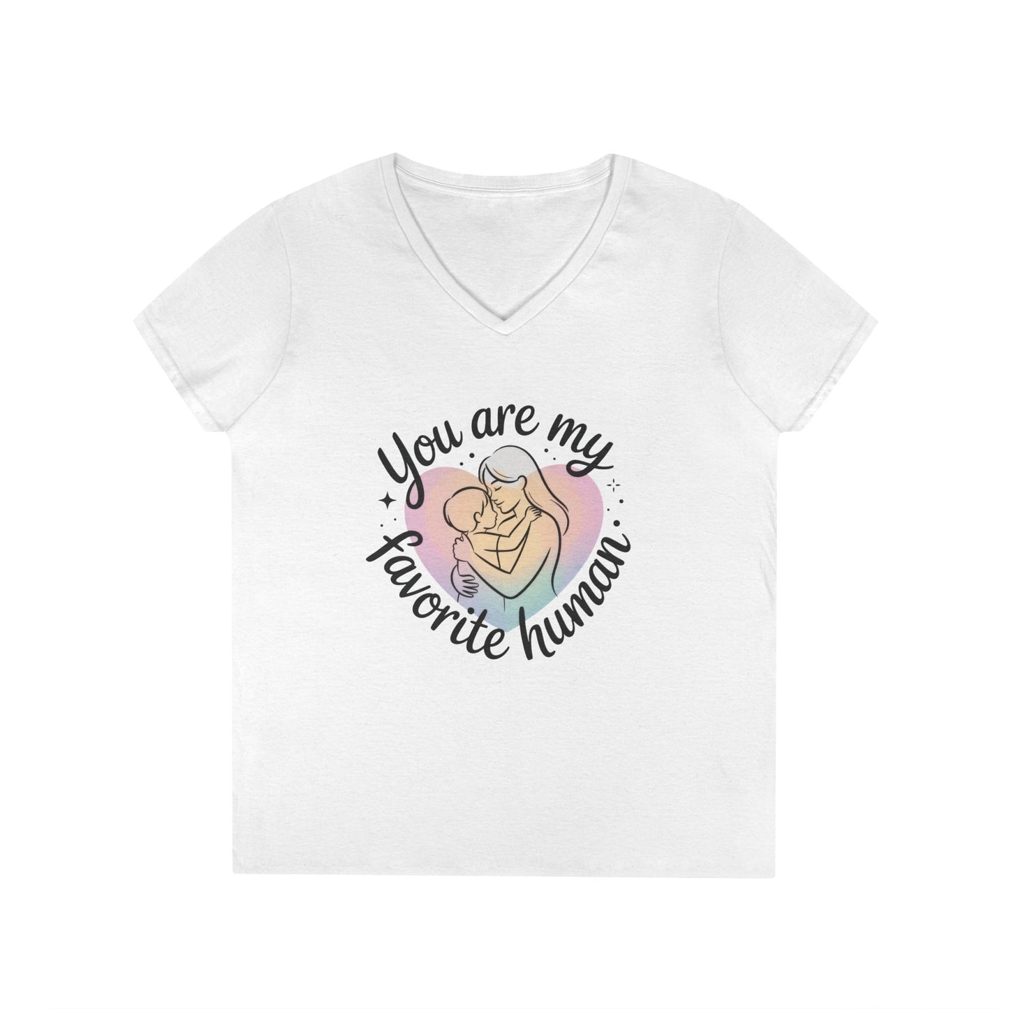 You Are My Favorite Human Mom Baby Tee, Mothers Day Gift, Pastel Heart Ladies V-Neck T-Shirt, Sentimental Mom Shirt