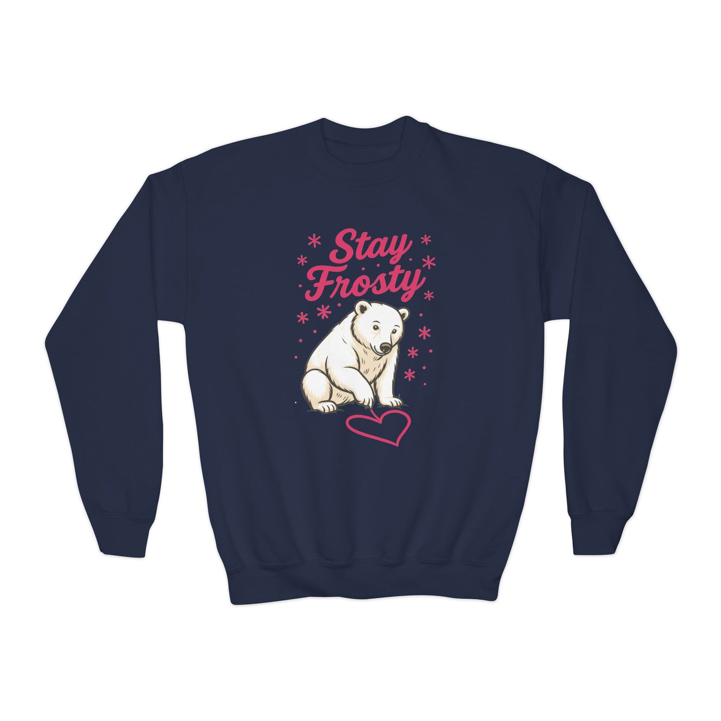 Youth Crewneck Sweatshirt, Kids Stay Frosty Polar Bear Sweatshirt, Cute Winter Animal Pullover for Children