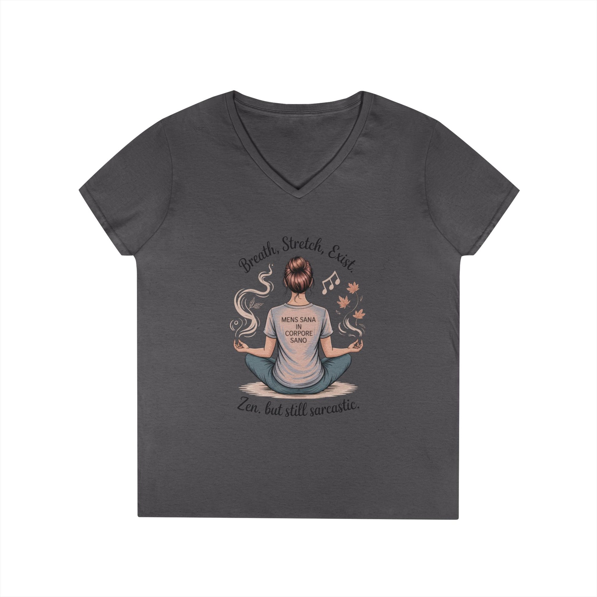 Zen but Still Sarcastic Ladies' V-Neck T-Shirt, Perfect for Yoga, Casual Wear, Mindfulness, Gift Yoga Lovers, Funny Meditation Top